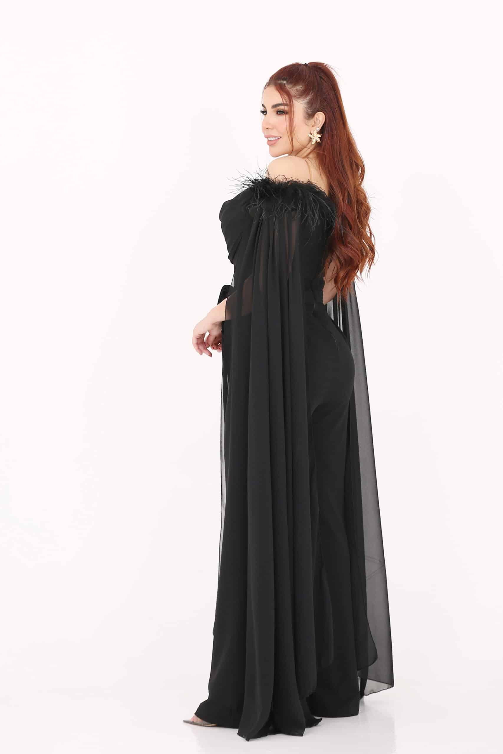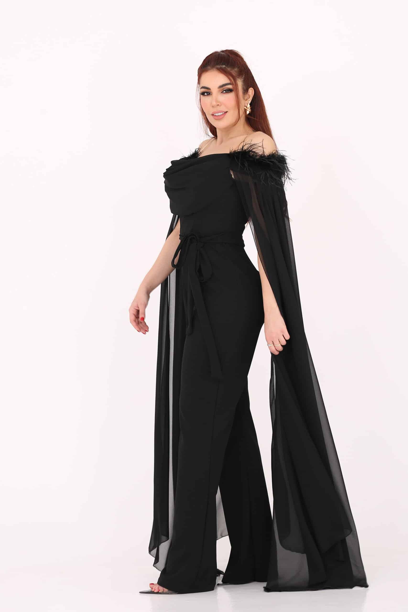 جبسوت انيق بأكمام شيفون بتطريز بأعلى الصدر ومزين بريش بالأكتاف أنيق مخصر وبحزام لضبط المقاس بنطول طويل وواسع من خامة الكريب مع مع تدخلات الاكمام شيفون ليعطي مظهرك جمالا وأناقة وتميزا مريح وخفيف …