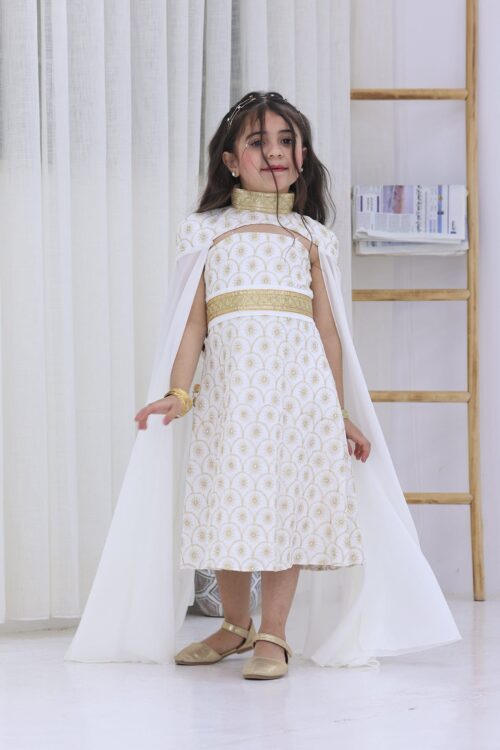 جلابية أطفال عسيري مصممة بعناية لتضفي لمسة تراثية ساحرة على إطلالة صغيرتك في المناسبات الرمضانية والغبقات. مصنوعة من خامة الشيفون الناعمة التي تمنحها راحة وأناقة، وتتميز بتفاصيل رائعة مثل الشال الأنيق والحزام التراثي المزين بنقوش مستوحاة من التراث العسيري الأصيل. هذه الجلابية تجمع بين الأصالة والحداثة لتكون الخيار المثالي لأناقة الأطفال في المناسبات الخاصة. مثالية للاحتفالات الرمضانية والظهور بإطلالة أنيقة ومميزة تعبّر عن الفخر بالتراث. احصلي على جلابية أطفال عسيري التي تبحثين عنها واجعلي طفلتك تتألق بأسلوب أنيق يعكس جمال التراث السعودي .