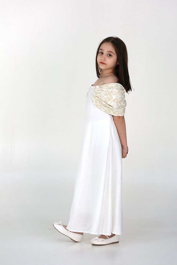 جلابية بناتي بأكمام أوف شولدر المطرزة هي اختيار رائع لأي فتاة ترغب في إضافة لمسة من الأناقة إلى إطلالتها. تتميز هذه الجلابية بقماشها الناعم والمريح الذي يشعر الفتاة بالراحة طوال الوقت، فهو يتناغم مع بشرتها بلطف ويمنحها شعورًا بالانتعاش. أما الأكمام الأوف شولدر، فهي تضفي على التصميم لمسة من الجمال والأنوثة، إذ تكشف عن منطقة الكتفين بطريقة رقيقة ومميزة.