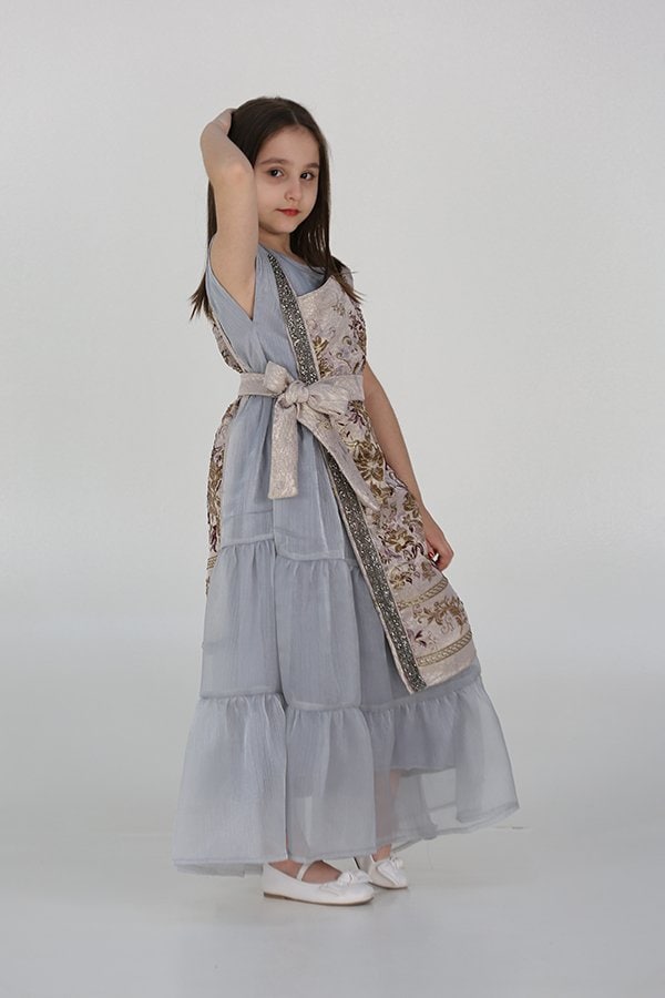 جلابية بناتي بكلفة راقي وحزام قماش باللون الرصاصي هي قطعة ملابس فاخرة وأنيقة تتميز بتفاصيل ذات جودة عالية وتصميم أنثوي راقٍ وتتميز الجلابية البنات بتفاصيل تطريز راقية ومتقنة مما يضفي لمسة من الفخامة والجمال على القطعة.
