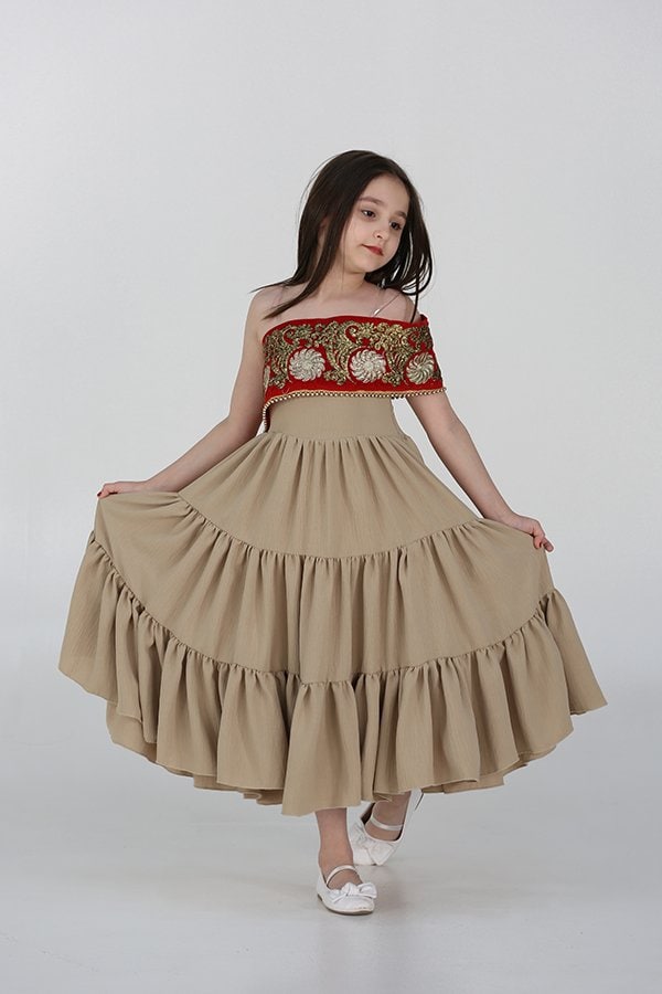 الخامة : يتم استخدام قماش عالي الجودة وناعم على البشرة لصنع هذه الجلابية الراقي. يوفر القماش الناعم الراحة والحركة السهلة للطفلة أثناء ارتدائه.