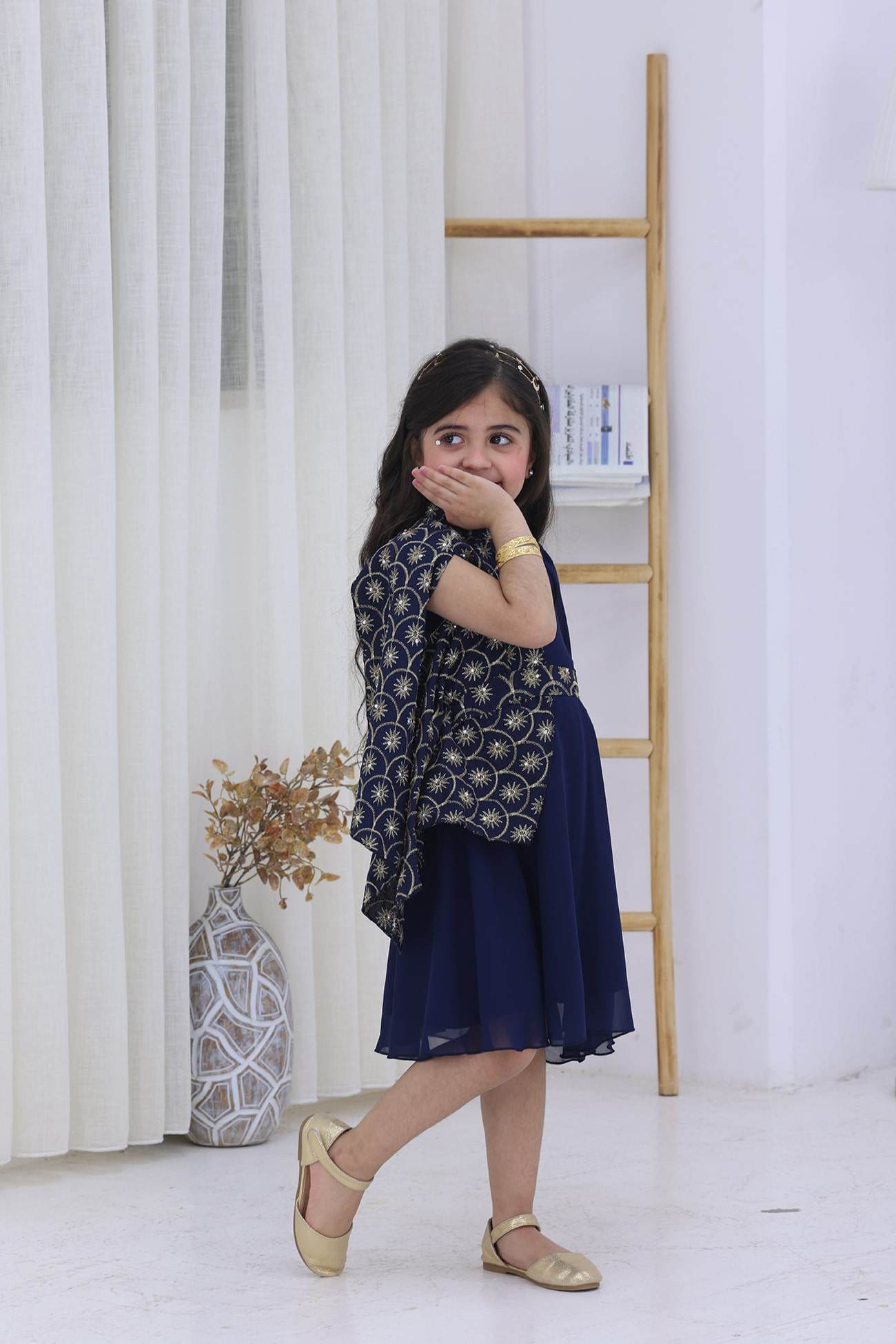 جلابية بناتي كحلي انيقة من خامة الشيفون يتميز الجلابية بشال جانبي انيق بتصميم حديث حيت يتم تطريز الشال بشكل تشجيرات انيقة بياقة عالية مع حزام انيق تجمع جلابية العيد الكحلي الأنيقة البناتي من خامة الشيفون بين الأناقة والحداثة والتفاصيل المميزة مثل التشجيرات الأنيقة والياقة العالية والحزام الأنيق. تعتبر قطعة مثالية للاحتفال بعيد الفطر وتبرز أناقة وجمال الإطلالة في هذه المناسبة الخاصة.
