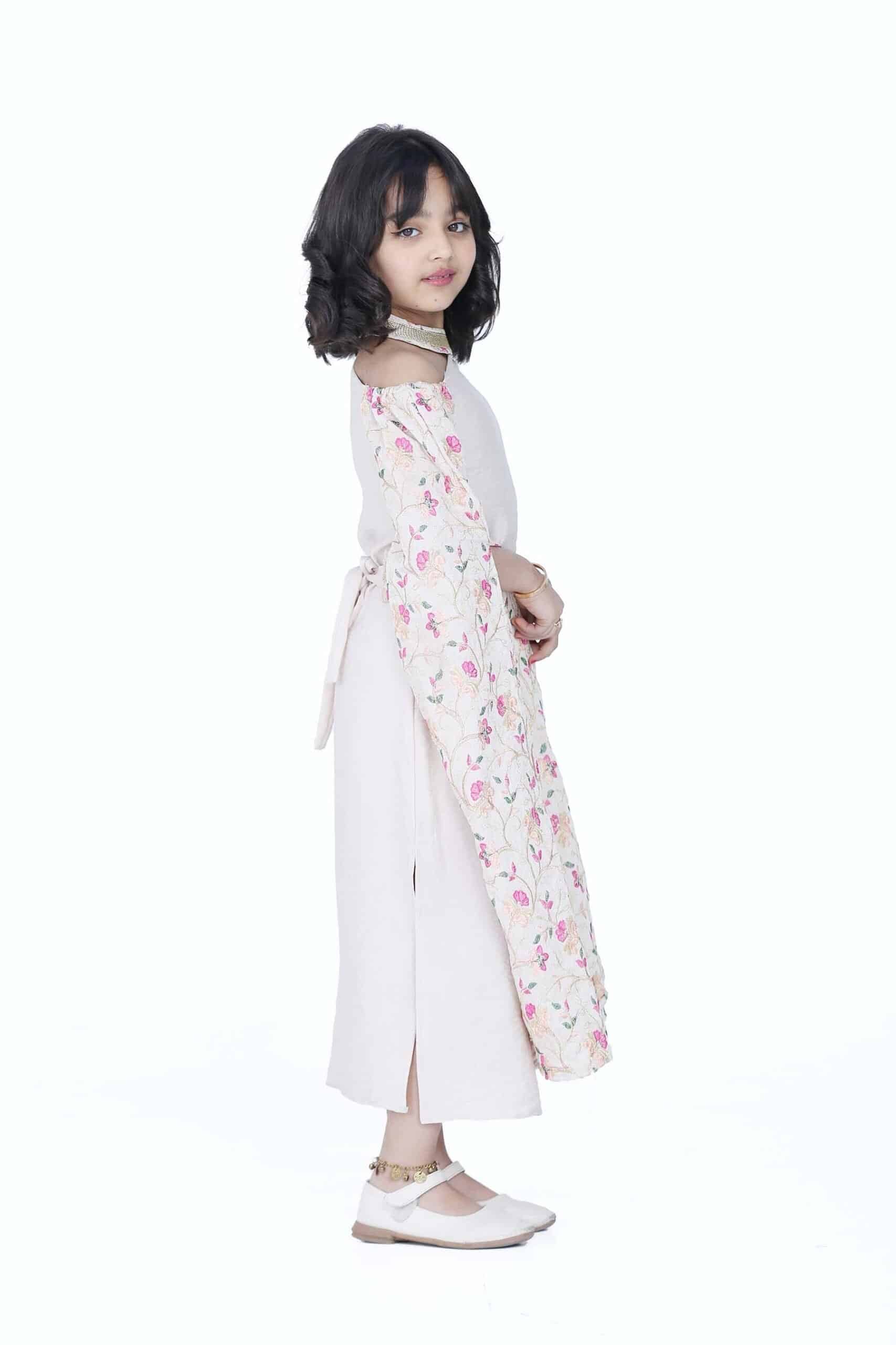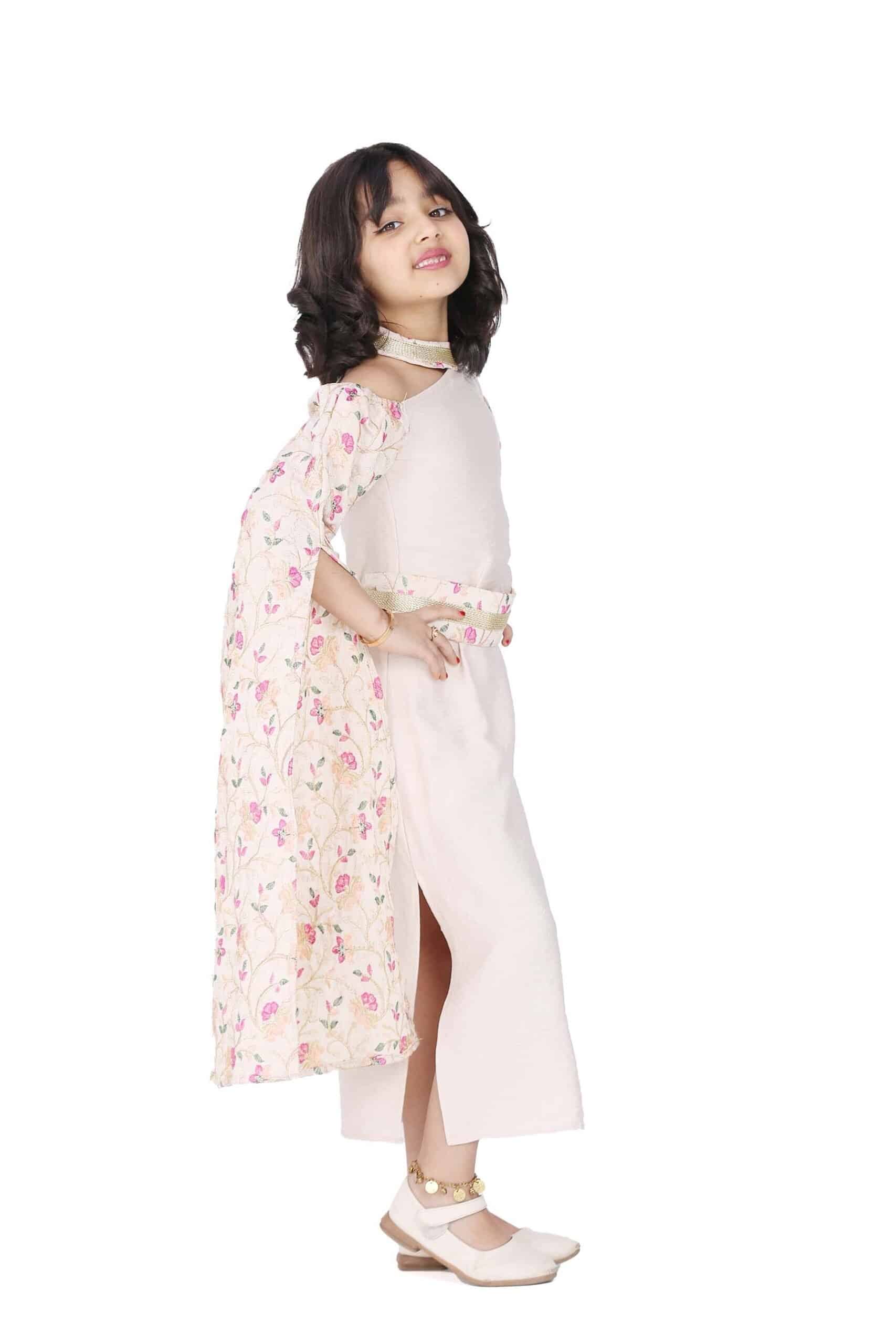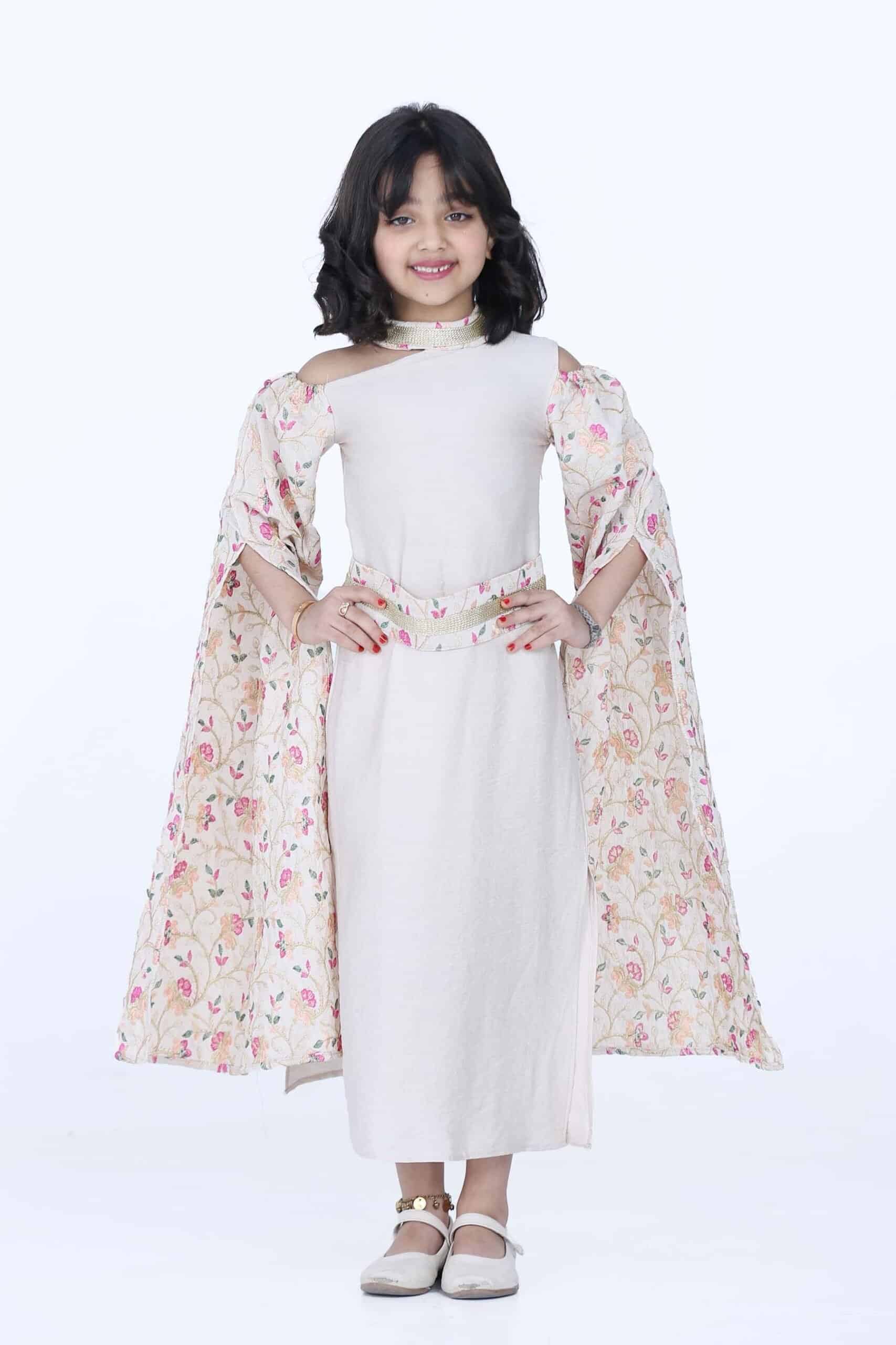 جلابية رمضان بناتي كم طويل مفتوح مشجر بتصميم مميز ومتناغم يتميز برقبة خناق هي قطعة ملابس أنيقة وفخمة تتميز بتصميمها الرائع وخامتها العالية الجودة. الجلابية مصنوعة من قماش ناعم وخفيف الوزن ومريح للارتداء. وتتكون من لونين اللون السكري واللون البيج ومزينة بنقشة على الاكمام مشجرة رائعة تجعله تبدو أكثر أناقة. الجلابية تتميز برقبة خناق، مما يبرز جمال الفتاة ويجعلها تبدو أكثر أناقة.