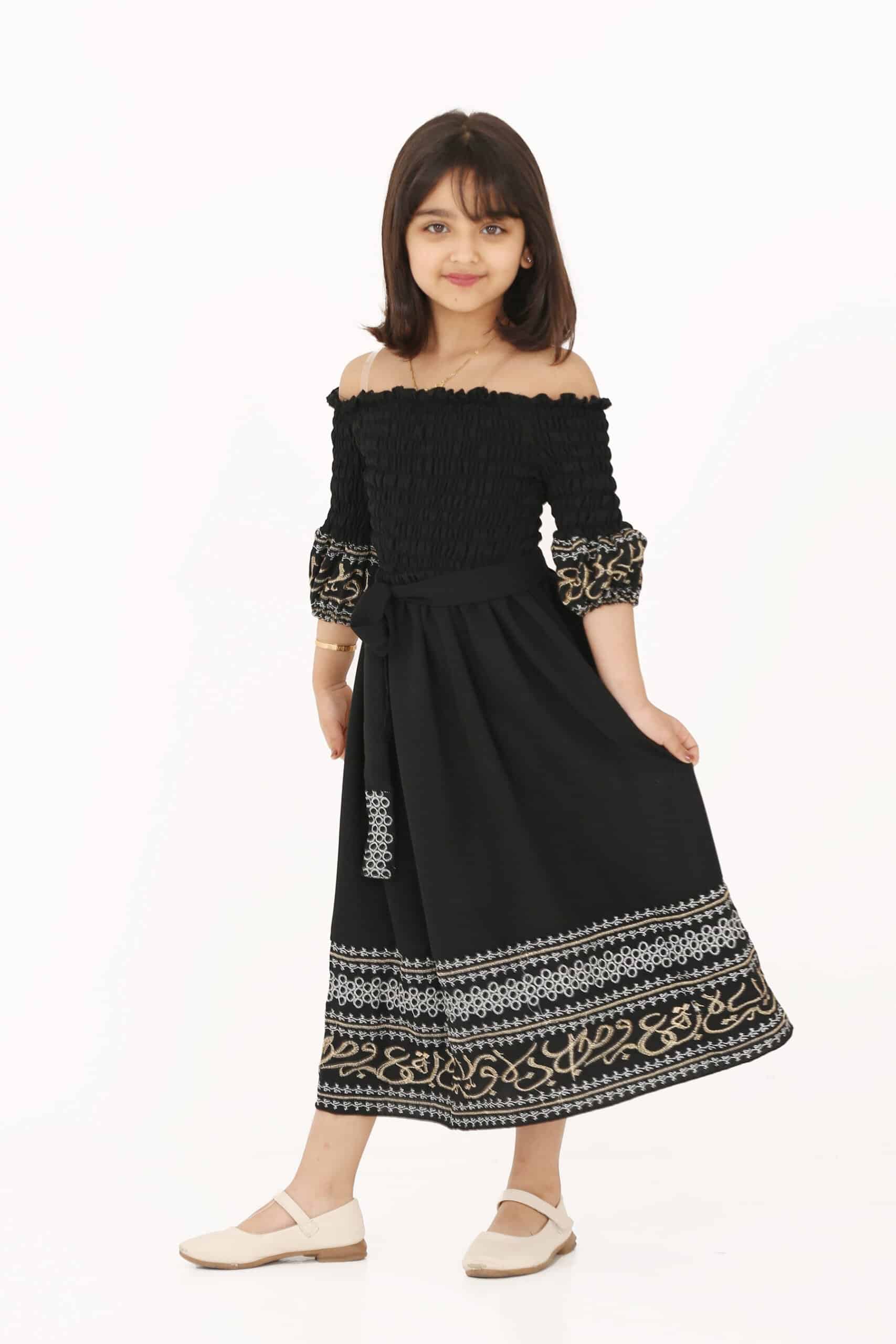 جلابية رمضاني بناتي مغربي مطرز بحروف بكسرات في الصدر انيقة بأكمام طويلة اختاري هذي الجلابية اللون الأسود لتعززي من جمال إطلالة صغيرتك . صممت من اقمشة ذات جودة عالية ،كما نتفرد بالقصات والموديلات الملفتة والجذابة من المصمم الحديث التي تتميز بالتفاصيل الراقية والحديثة