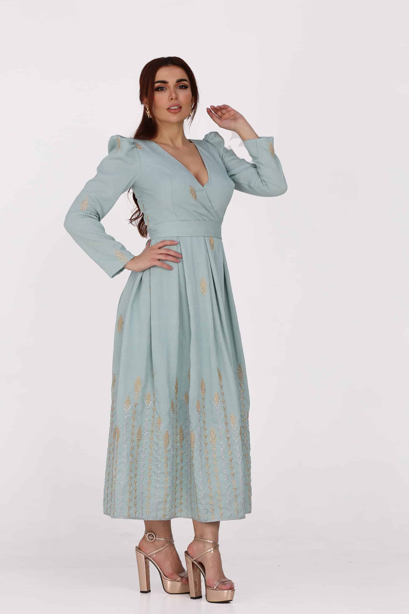 من خلال اختياري لفستان تيفني مشجر بأكمام طويلة استطيع إعطاء المتجر 5 ستار للدقة في اختيار الموديل والقماش والنعومة في التصميم والجودة في الخياط والإنتاج .