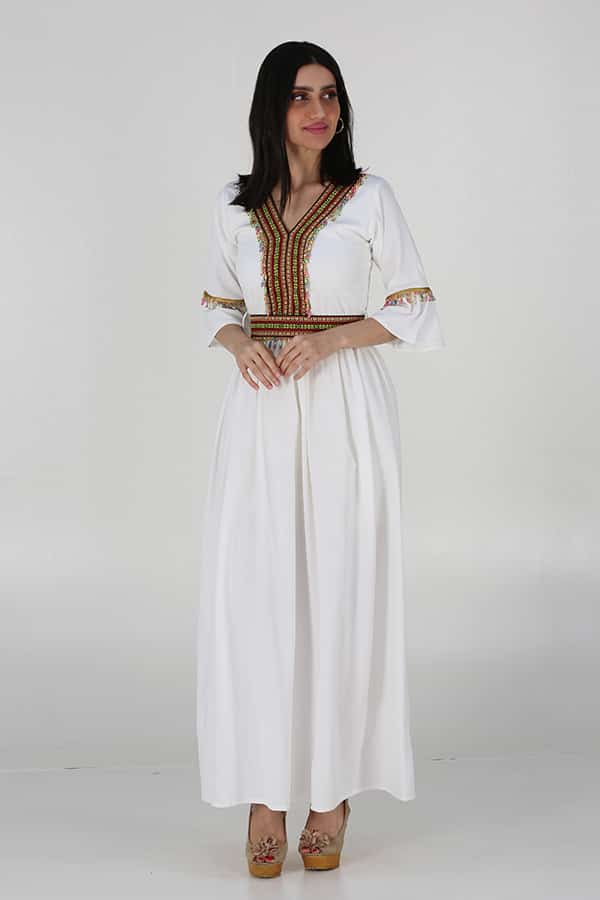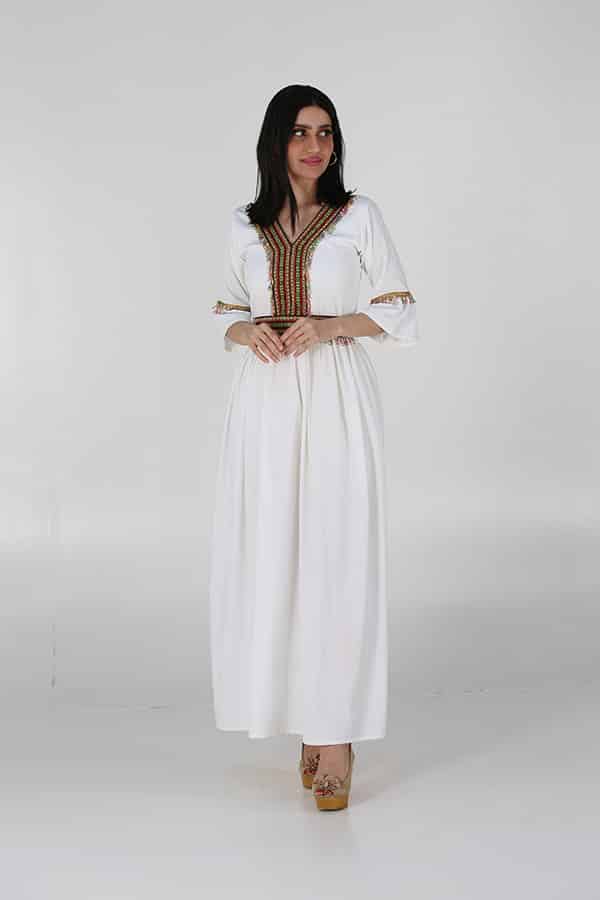 جلابية رمضانيه مغربي راقي مزينة بكلف هندي ومصحوبة بحزام أنيق وتطريز يدوي مزخرف بالصدر والأكمام من خامة الكريب متوفر باللونين الأبيض واللون الأسود هي قطعة فاخرة وجميلة تجمع بين التراث المغربي واللمسات الهندية الفخمة
