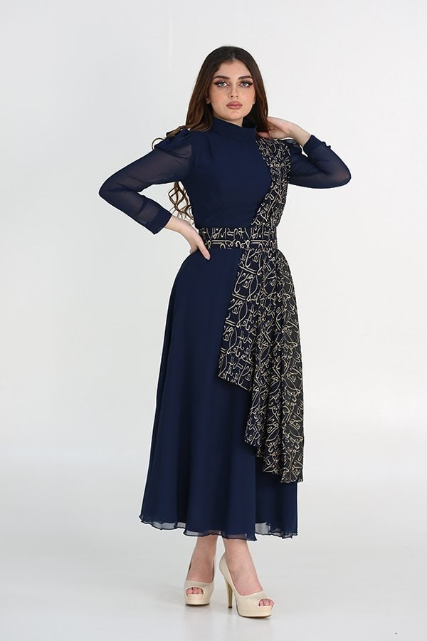 جلابية نسائي ميدي بشال جانبي مطرز راقية من خامة الشيفون مزينة بشال جانبي مطرز وحزام أنيق في الخصر هي قطعة ملابس فاخرة تجمع بين الأناقة والراحة.