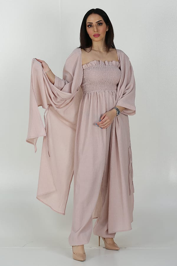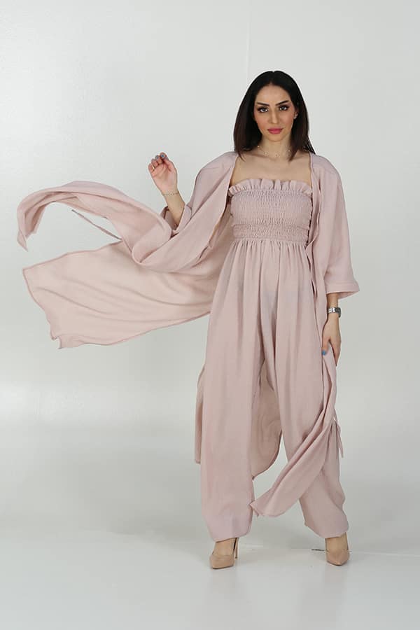 جمبسوت نسائي راقي قطعتين مزموم الخصر فضفاض خامة ناعمة يتوفر باللون البيج واللون التيفاني هو قطعة ملابس مميزة تمنحك إطلالة أنيقة وعصرية المزموم عند الخصر: يتميز هذا جمبسوت بالمزموم عند الخصر مما يعطيه شكلًا مستقيمًا ويبرز القوام بشكل جميل يمكن ضبط المزموم بواسطة حزام أو رباط قابل للتعديل، مما يسمح لك بتعديله وفقًا لمقاسك ورغبتك.