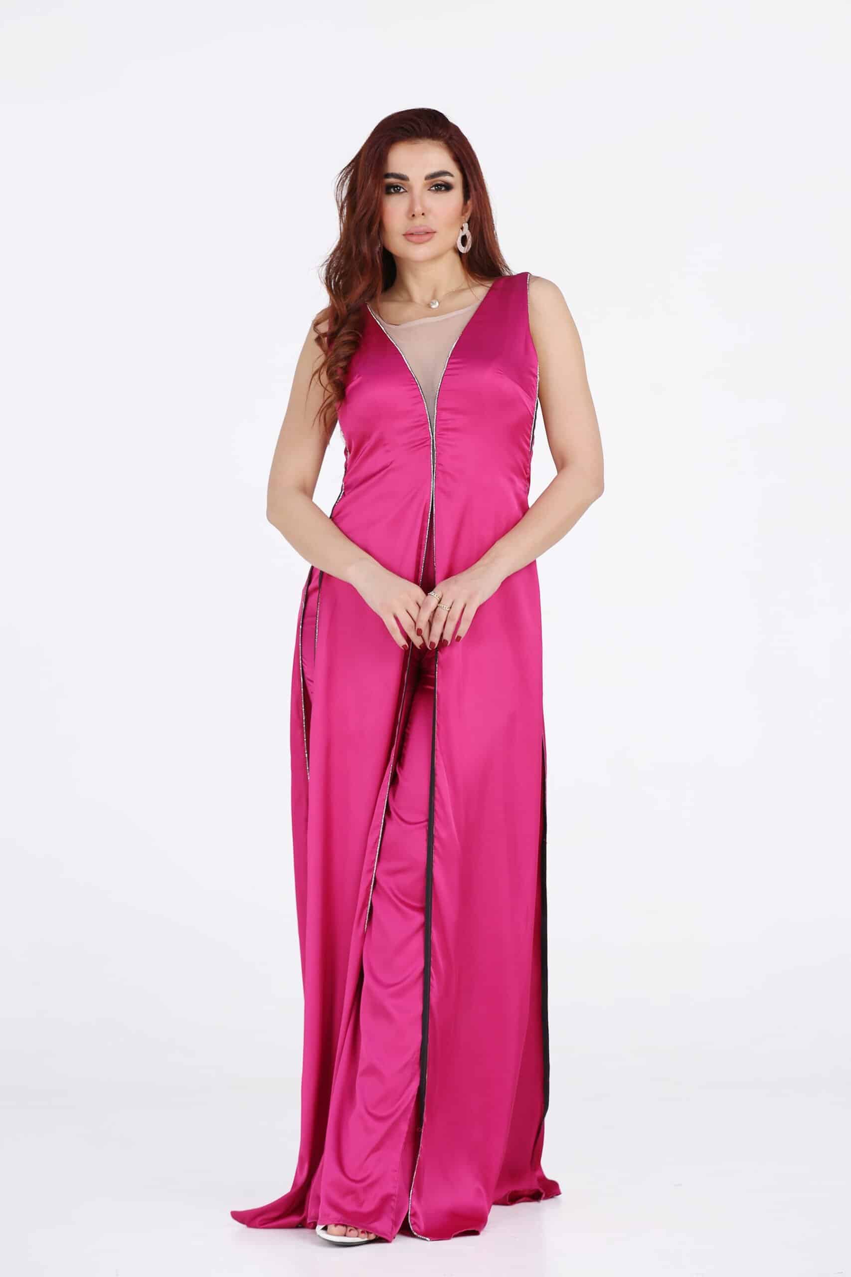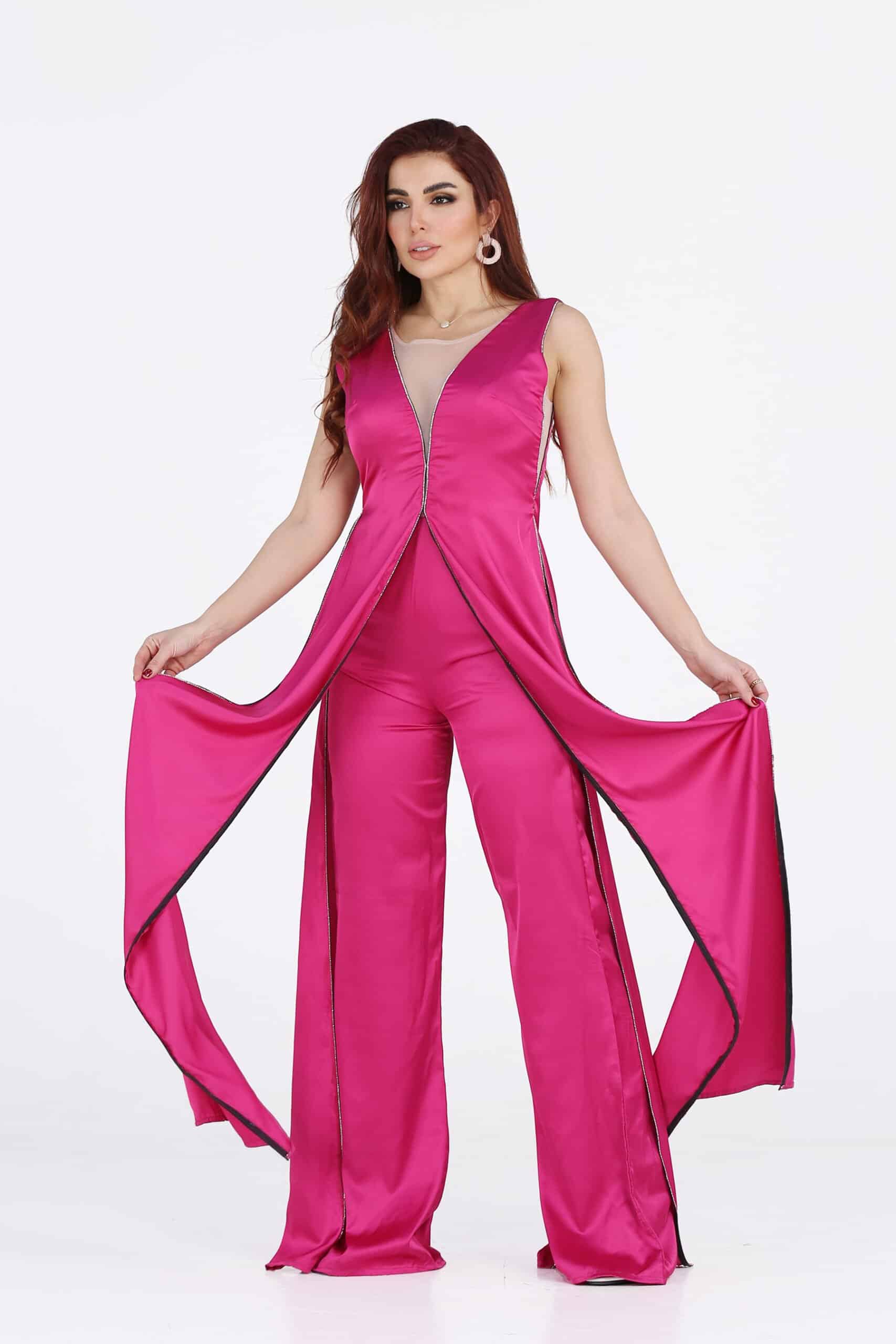 الخامة: جمبسوت نسائي كت انيق بلون الفوشية مصنوع من خامة الحرير الفاخرة. يتميز الحرير بملمسه الناعم ولمعانه الجميل، مما يضفي لمسة من الفخامة والأناقة على الافرول.