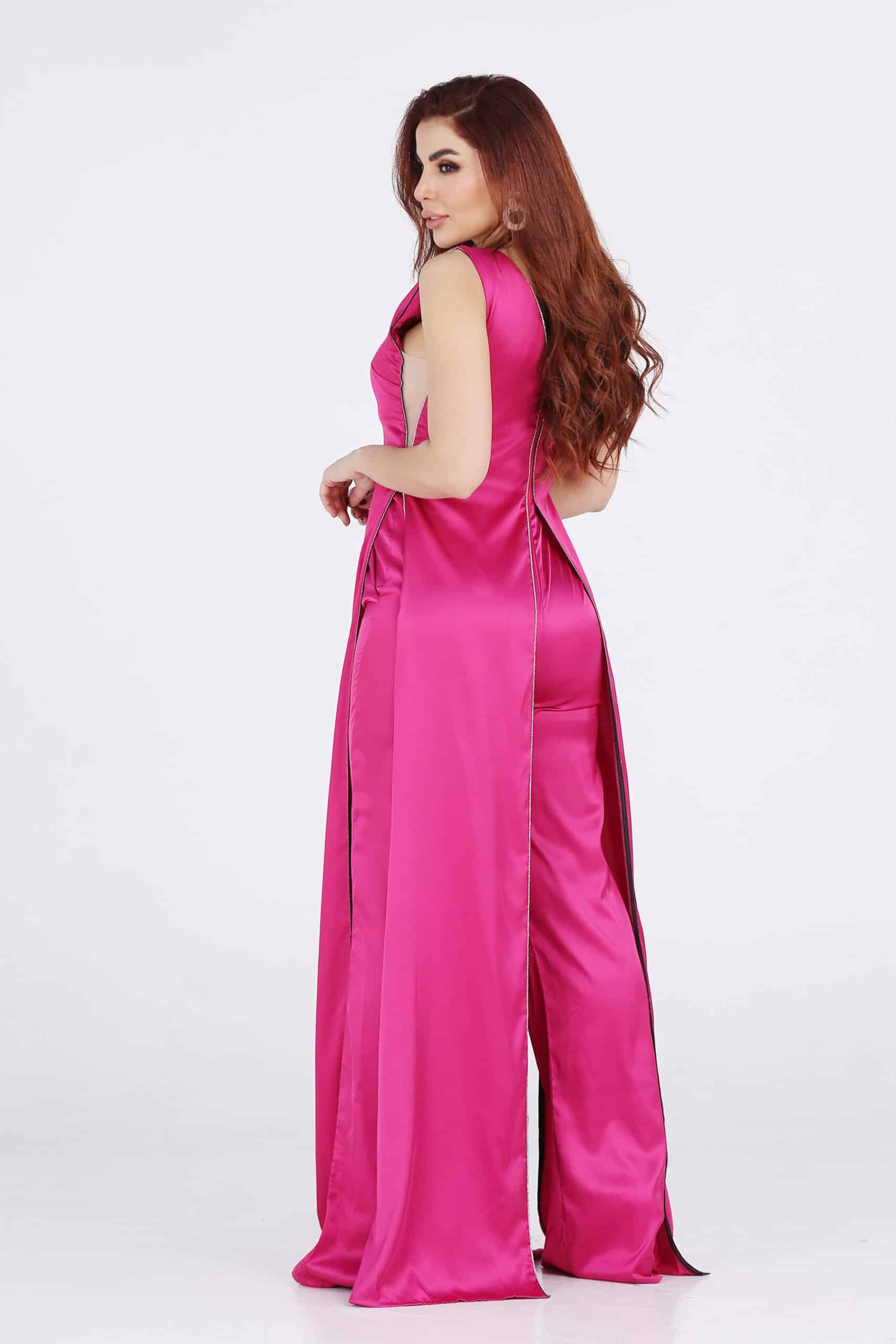 اللون: يأتي جمبسوت بلون الفوشي، وهو لون جميل ومميز يضفي لمسة من الجاذبية والأنوثة. يكون الفوشية لونًا متوسطًا بين الأرجواني والوردي، مما يجعله لونًا مثاليًا للإطلالات الأنيقة.