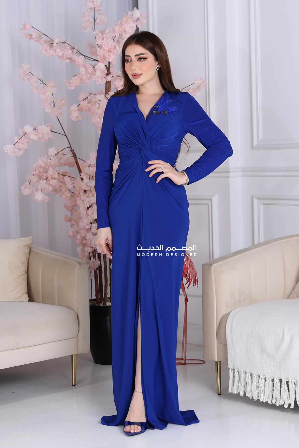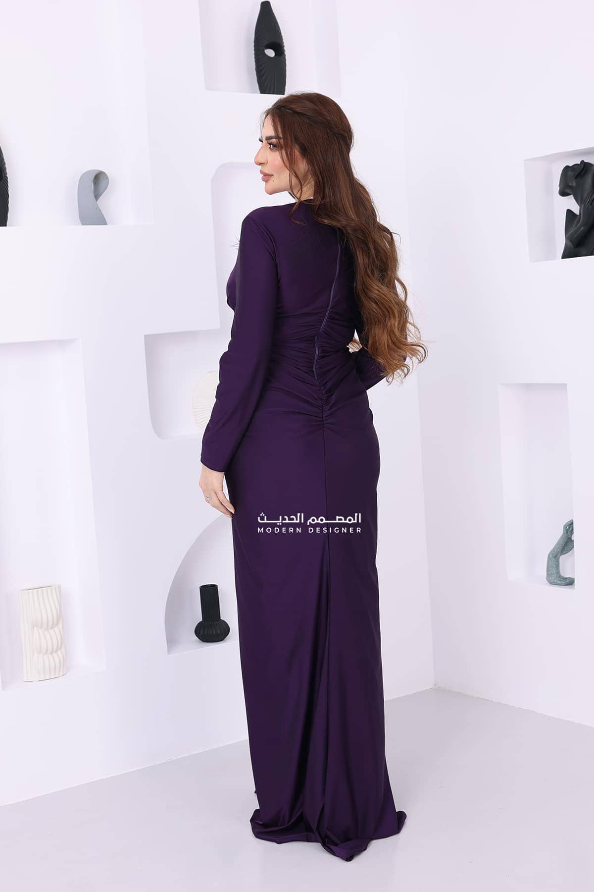 فستان أنيق ناعم للمناسبات بتصميم راقٍ يبرز الأنوثة والجاذبية. يتميز بأكمام طويلة مع تفاصيل ريش على الكتف، وعقدة أنيقة على الخصر تضيف لمسة مميزة. مصنوع من خامة كريب سترتش عالية الجودة لراحة وأناقة مثالية، مما يجعله الخيار الأمثل لإطلالة ساحرة في المناسبات.