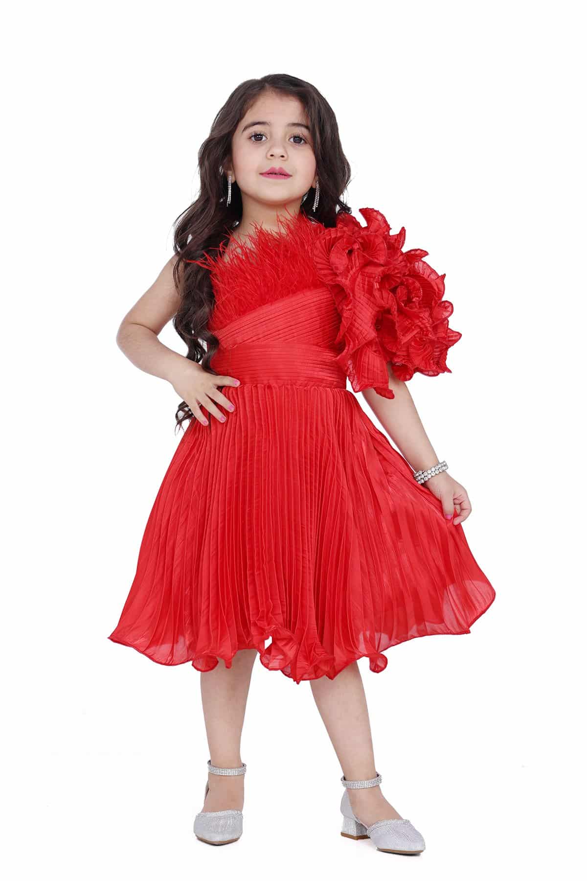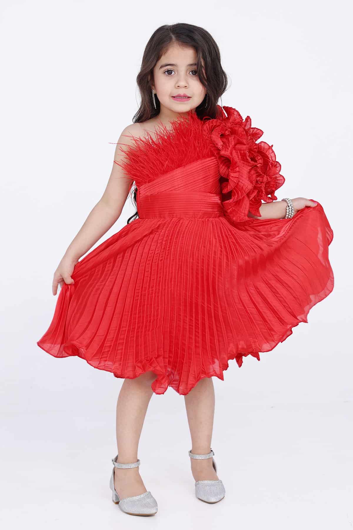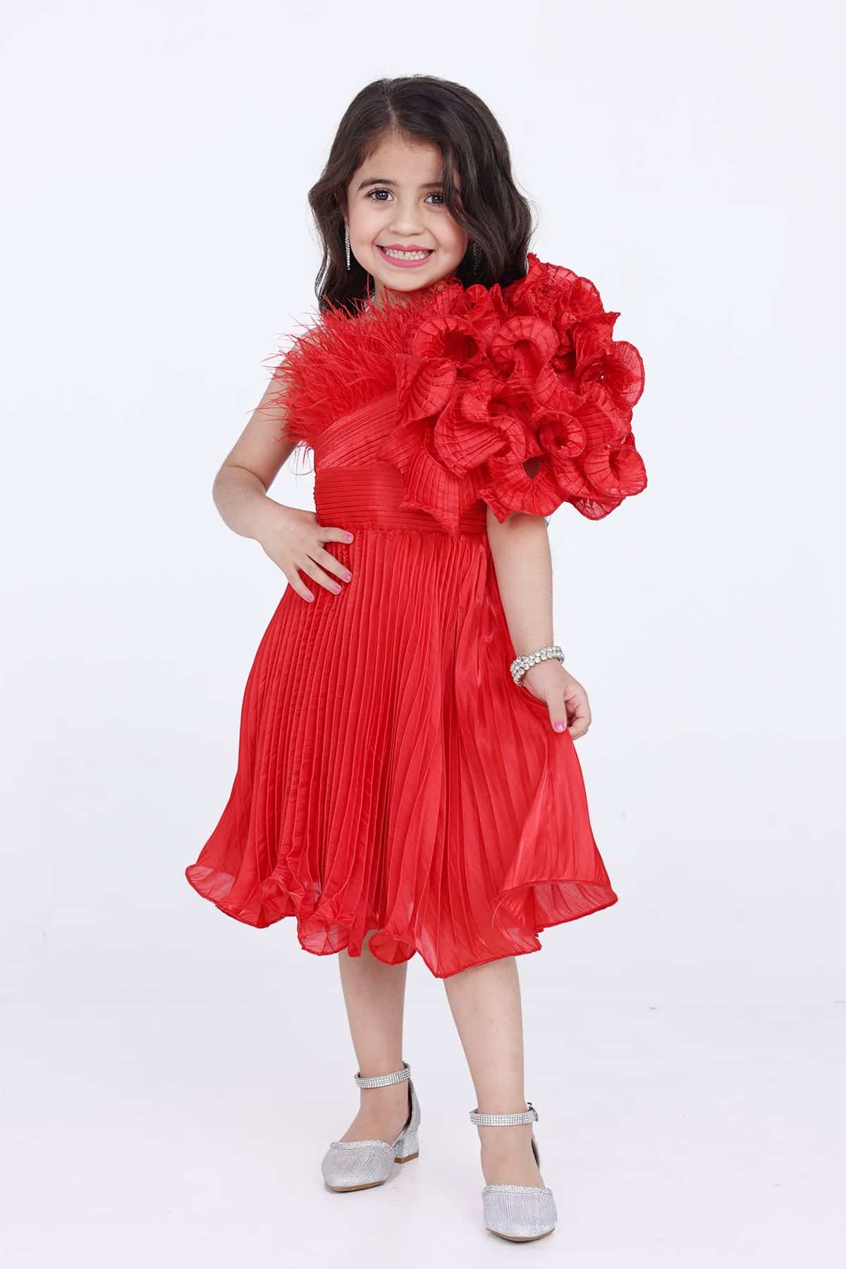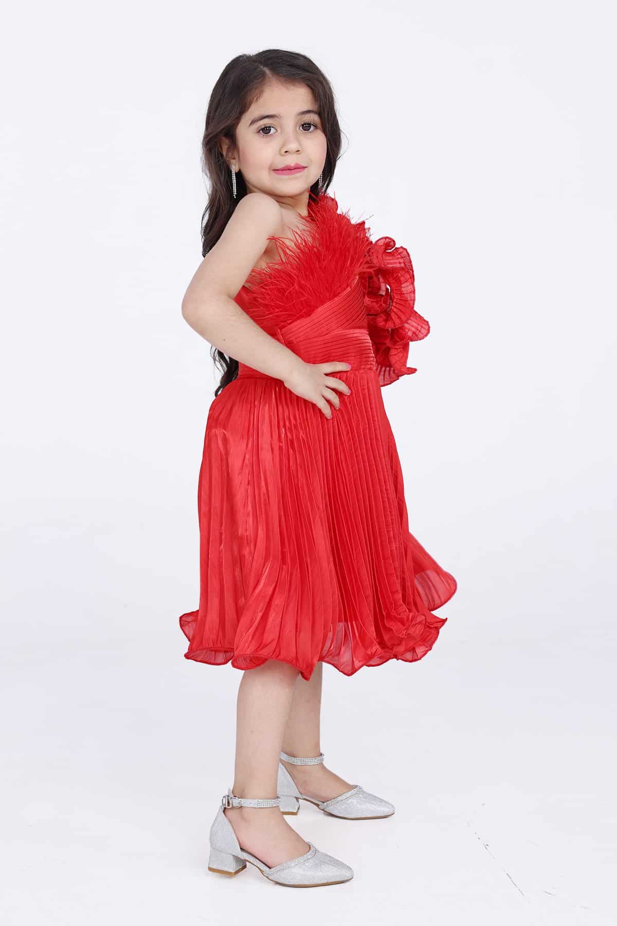 فستان احمر بناتي بريش اعلا الصدر بكسرات من الخصر موحده الى اسفل الفستان تألقي بهذا الفستان الأنيق في مناسباتك المختلفة. فهو يتميز بقصة مريحة كما أنه مصنوع من نسيج ناعم ليضمن راحتك طوال اليوم.