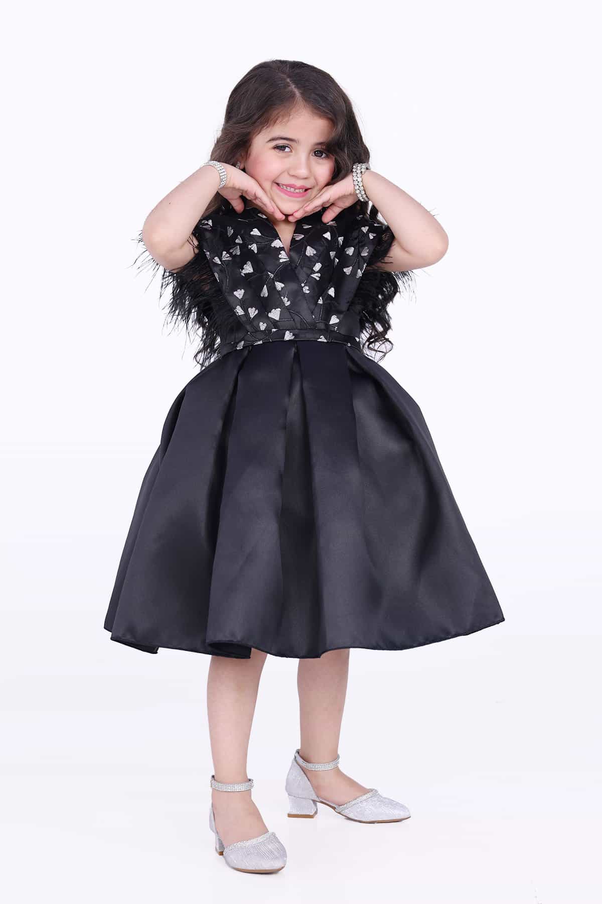 فستان بناتي كلاسيك بريش من خامة الميكادو الفاخرر يتميز فستان البناتي هذا من المصمم الحديث بقصة الطبقات الصدر الملونه على شكل حرف V المزينه بالريش بالاطراف ويأتي بأكتاف مبطّنة ليمنحك طفالتك اطلالة مختلفه على جميع الحاضرين.