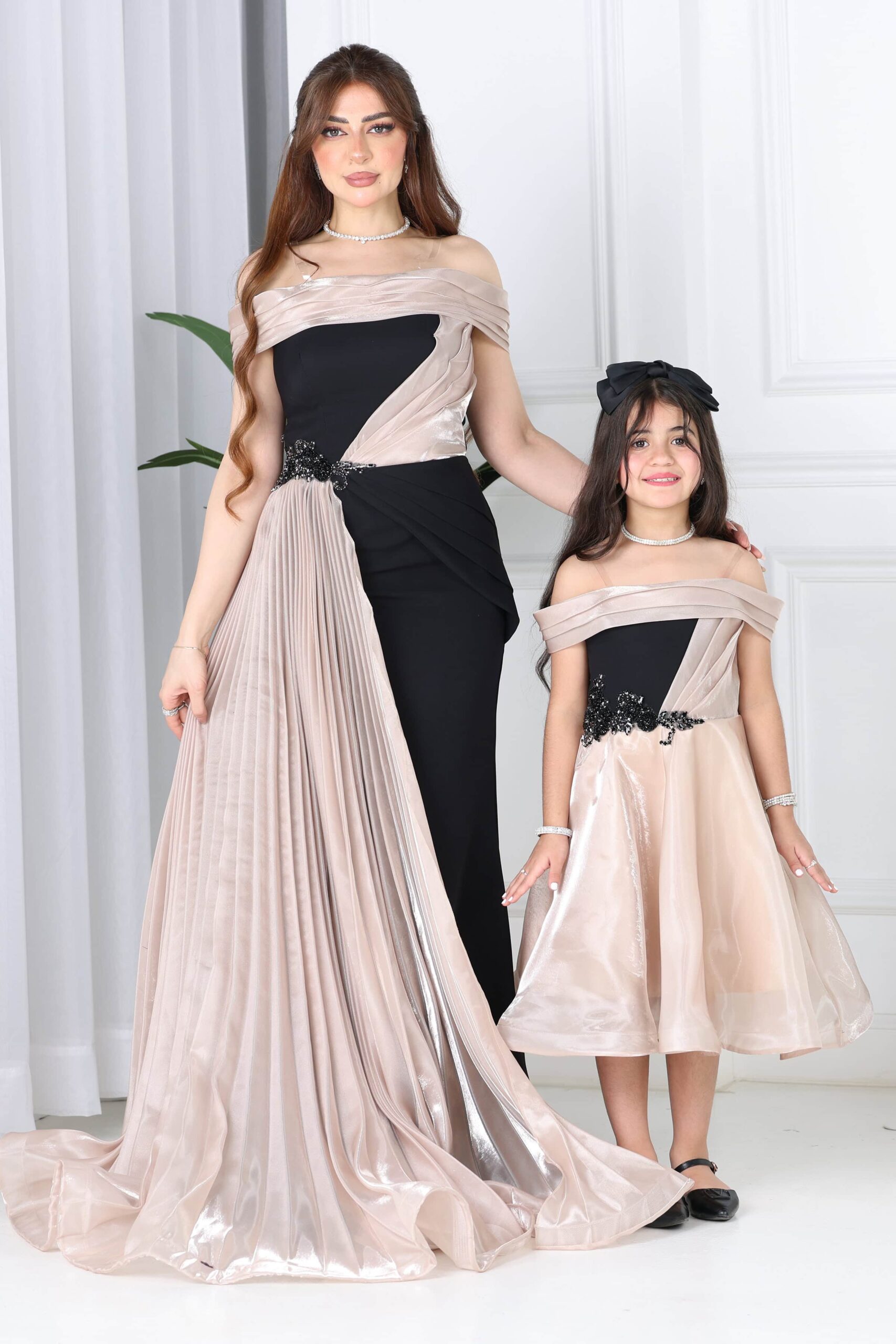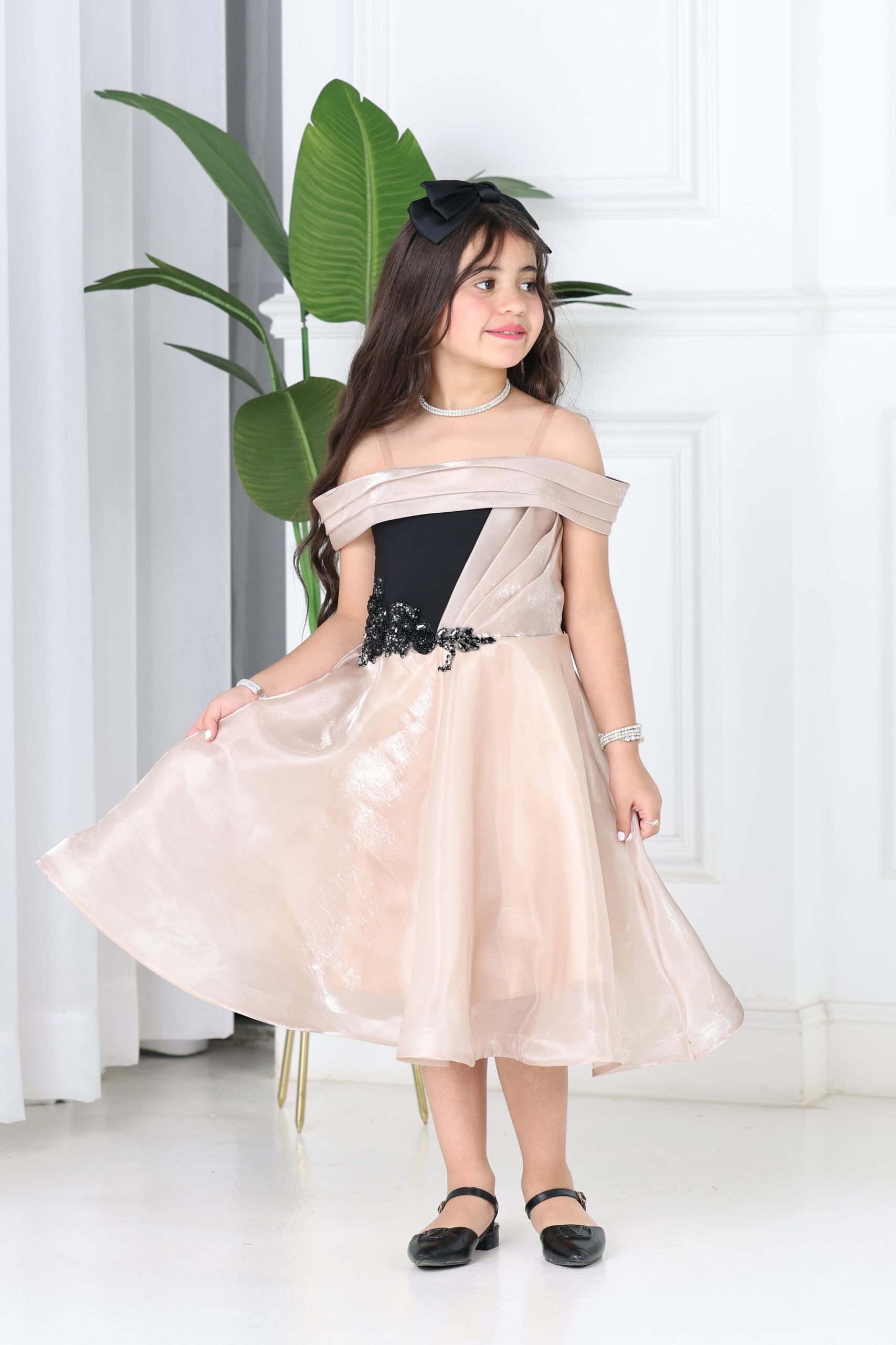 فستان اطفال مناسبات فخم صمم خصيصاً ليخلي طلتك طفلتك مميزة بكل المناسبات. تصميمه العصري يدمج بين الرقة والفخامة في كل تفصيلة، من قصة الكتف المنسدل اللي تضيف لمسة راقية، إلى اللمعة الناعمة اللي تعكس الأناقة بطريقة ساحرة. الجزء العلوي يجمع بين البساطة والتفاصيل الفريدة مع لمسة فنية من التطريز الجانبي اللي يبرز جمال التصميم ويضيف لمسة فاخرة. وتخلي الطفلة تطلع بأحلى إطلالة بكل مناسبة. قصة الفستان الواسعة من الأسفل تعطيه لمسة أميرية راقية وتخليه خيار مثالي لكل بنت تحب الأناقة والتميز.