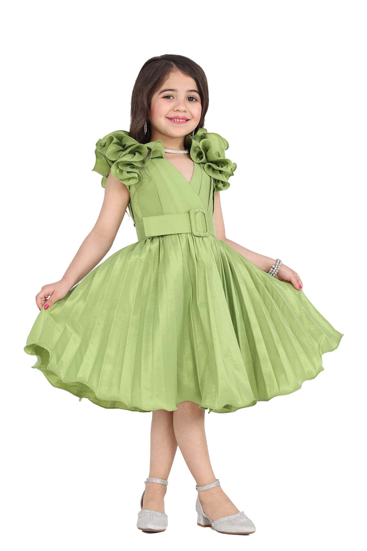 فستان بناتي اخضر بفيونكه انيقة على الاكتاف دعي اميرتك الصغيرة تكتسي بالجمال والرقي من خلال الحصول على أجمل فستان لدى المصمم الحديث حيث انه مصنوع على أيدي الخبراء والذي يبرز جمال طفلتك بطريقة ساحرة أخاذة للقلوب يمكنك الحصول عليه من خلال متجرنا .