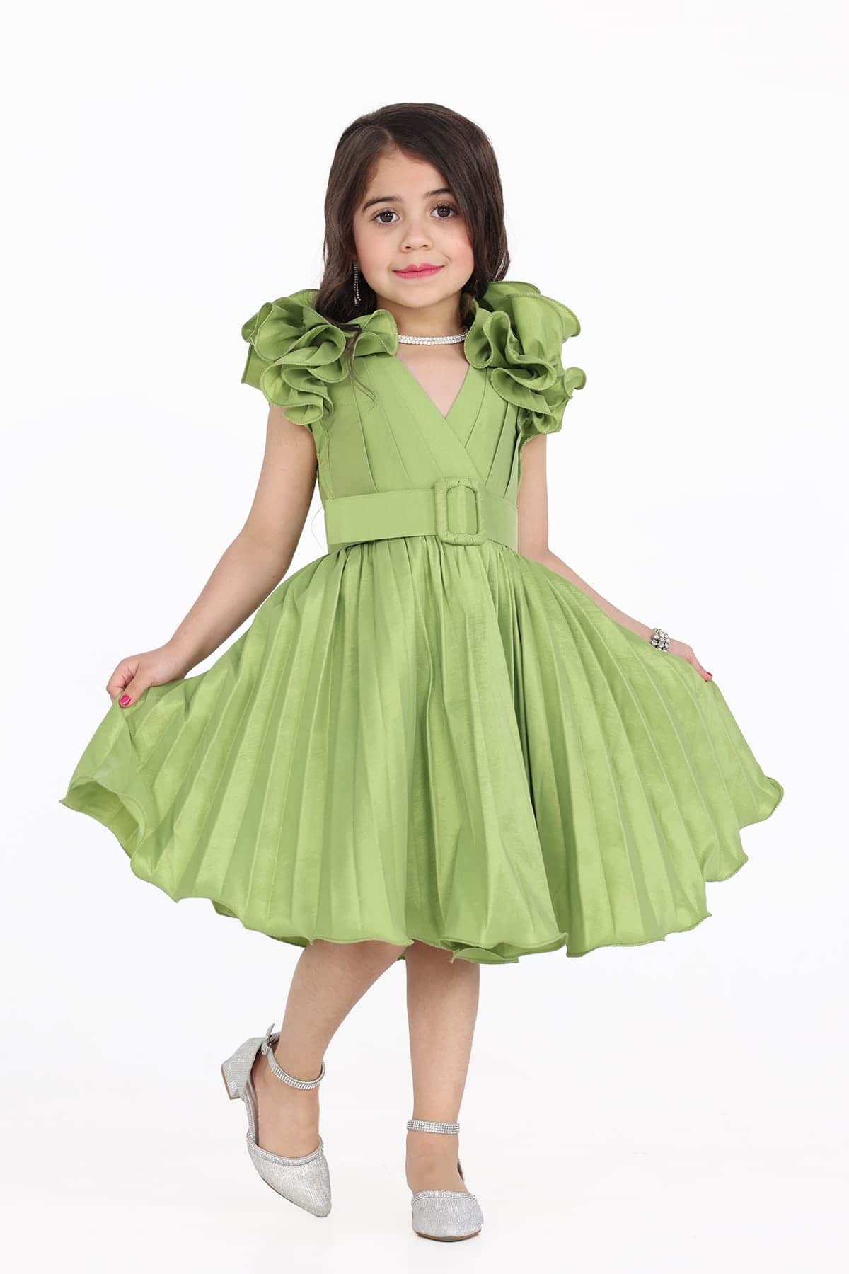 فستان بناتي اخضر بفونكه انيقة على الأكتاف هو خيار رائع لأميرتك الصغيرة لتنعم بالجمال والرقي في المناسبات الخاصة والأعياد. إنه يساعدها على التمتع باللعب والترفيه بأناقة وسحر، ويكون إضافة مميزة إلى خزانة ملابسها. اختيار هذا الفستان الأنيق سيضمن لها الشعور بالثقة والسعادة وتكون نجمة مميزة في كل المناسبات.