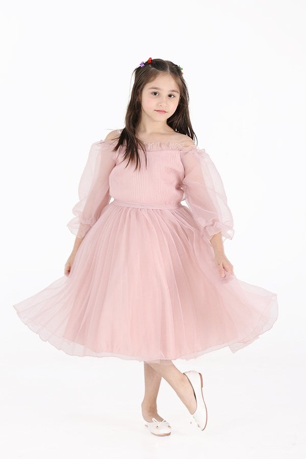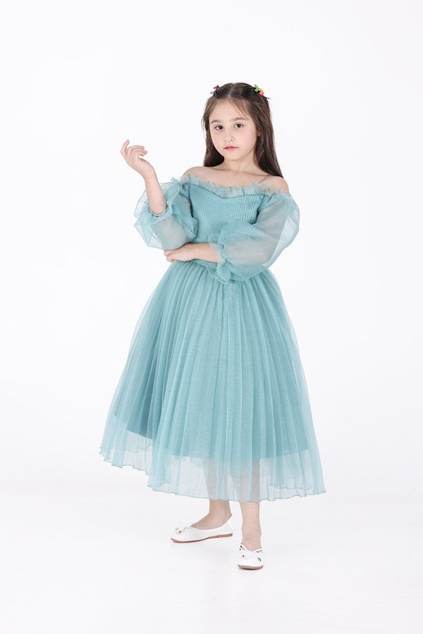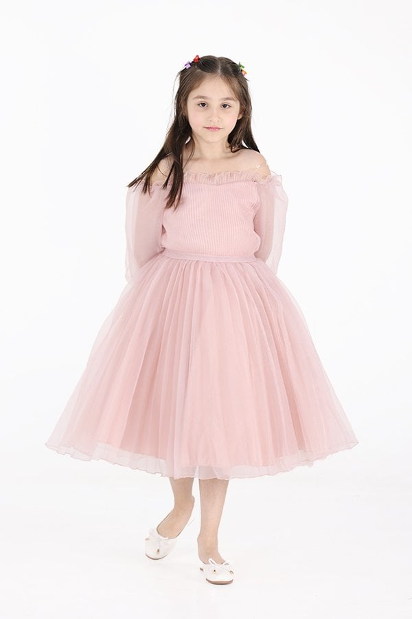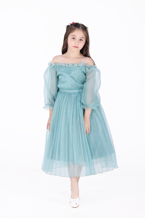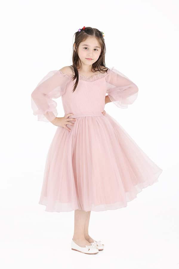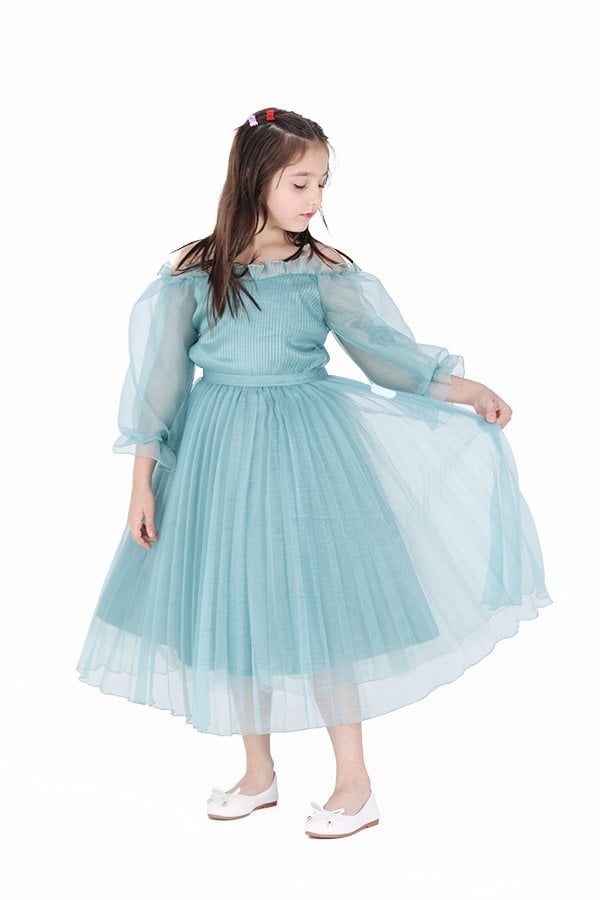 فستان بناتي انيق بأكمام شفافة ناعم وأنيق مصنوع من خامة الجازار البيليسية، ويتميز بمظهره الفاخر والراقي. يتميز هذا الفستان بتصميمه الناعم والأنيق، وهو مثالي للمناسبات الخاصة والسهرات. صُنع الفستان من خامة الجازار البيليسية، وهي خامة ذات لمعان رقيق وجميل، تضفي على الفستان مظهرًا فاخرًا وأنيقًا.