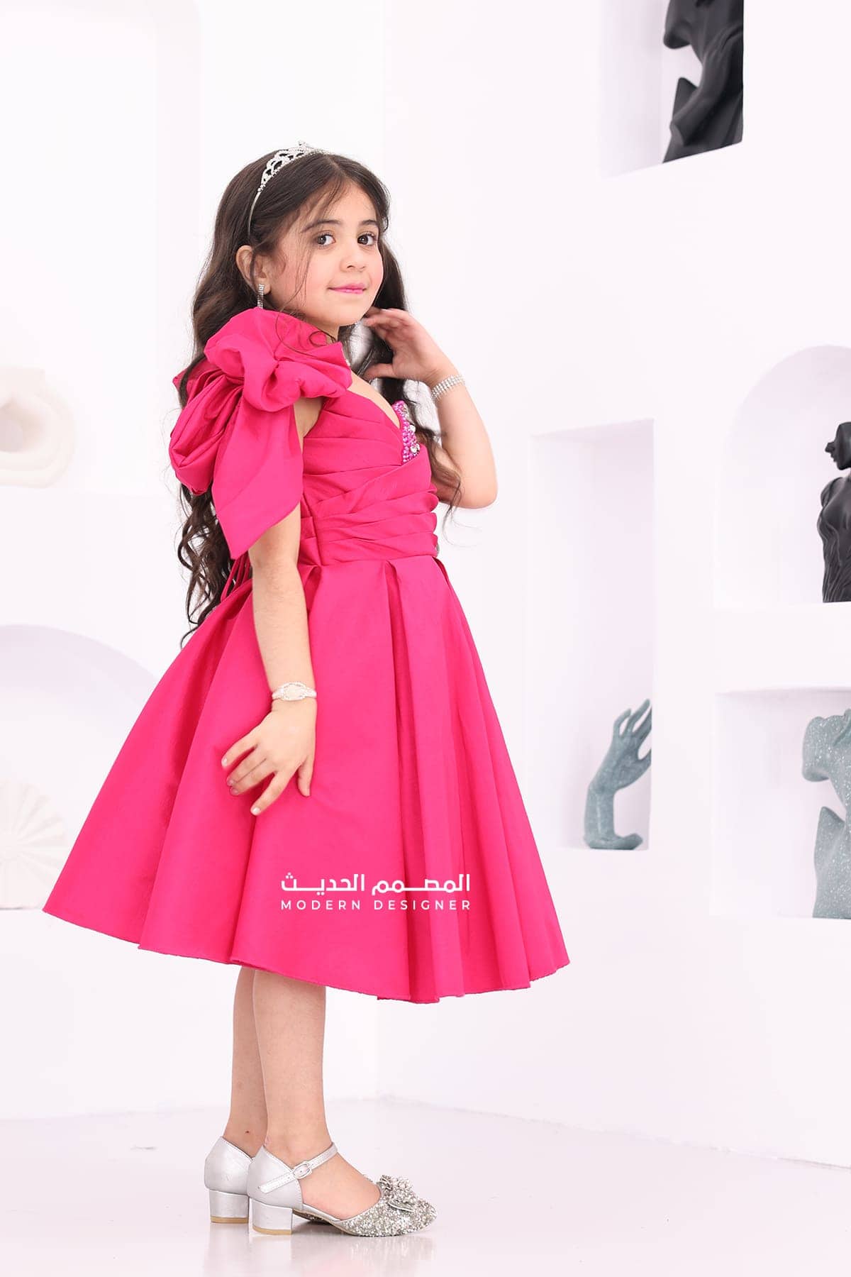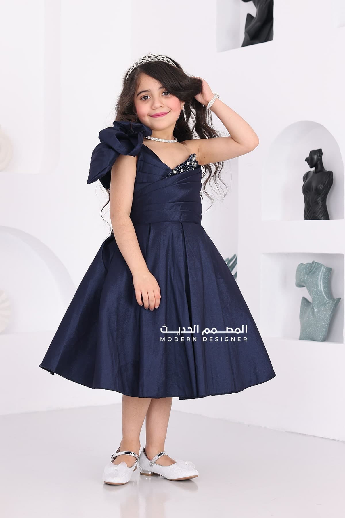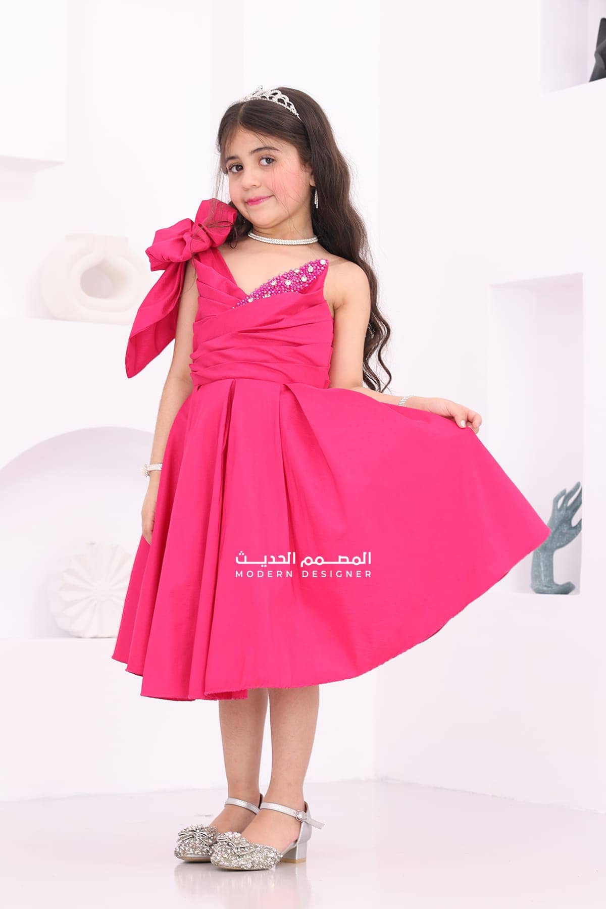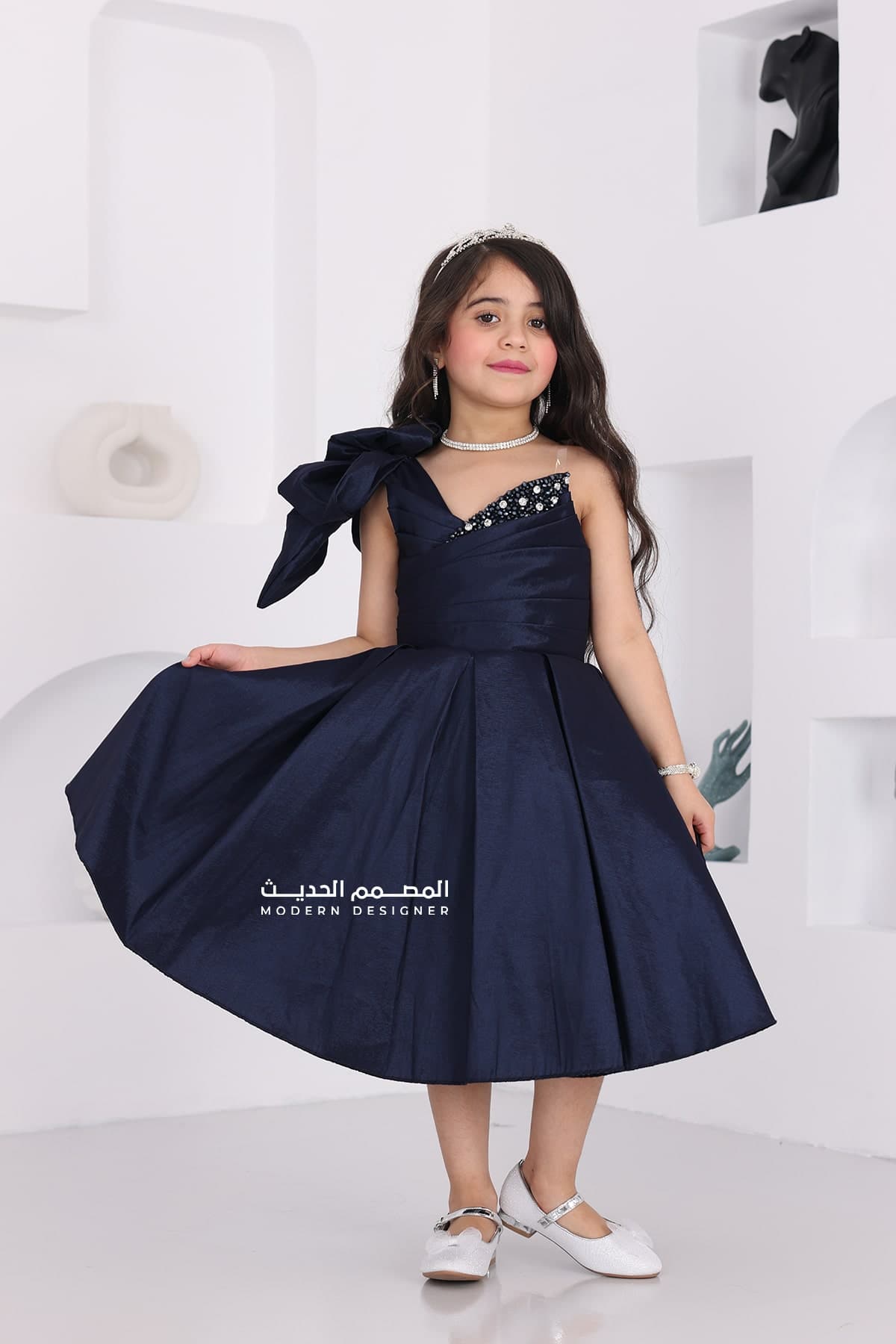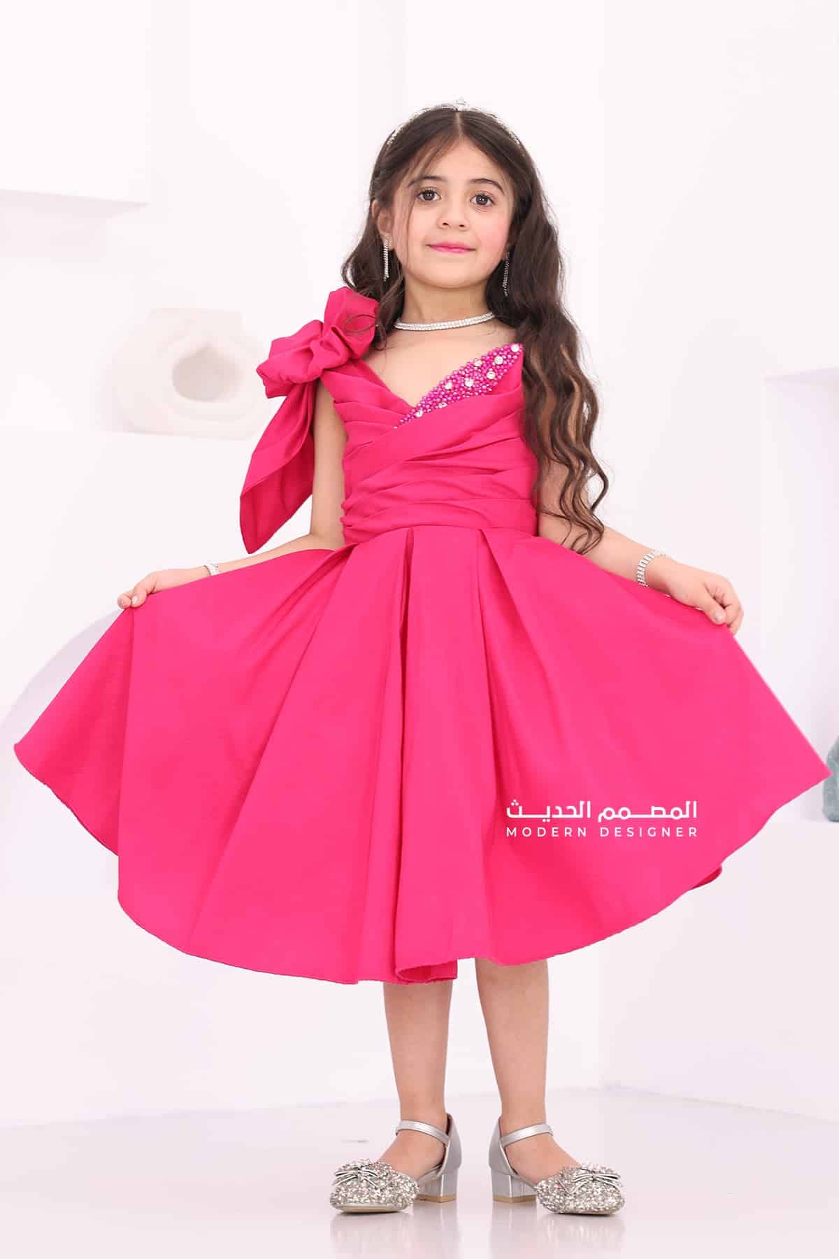 فستان بناتي انيق بفيونكة بالكتف يتوفر الفستان بلونين كحلي فوشي بتطريز انيق على الصدر بقصة الصدر V من الأسفل لف يعد هذا الفستان خيارًا رائعًا للمناسبات الخاصة لتبرزي من جمال طفلتك، حيث يمنحها إطلالة أنيقة ومميزة.