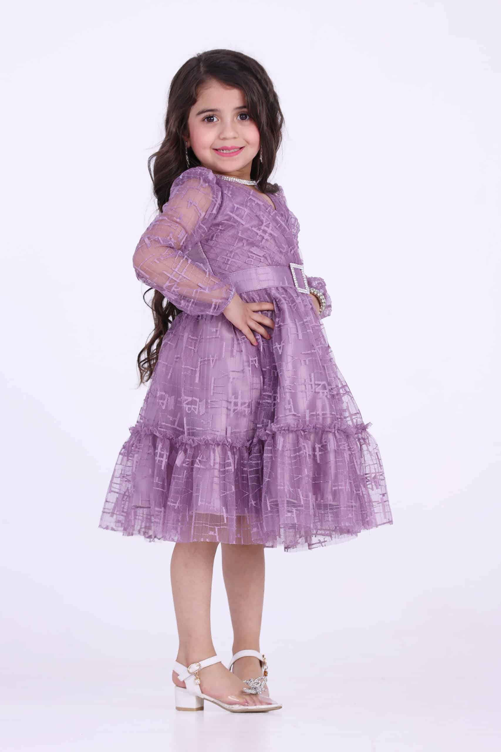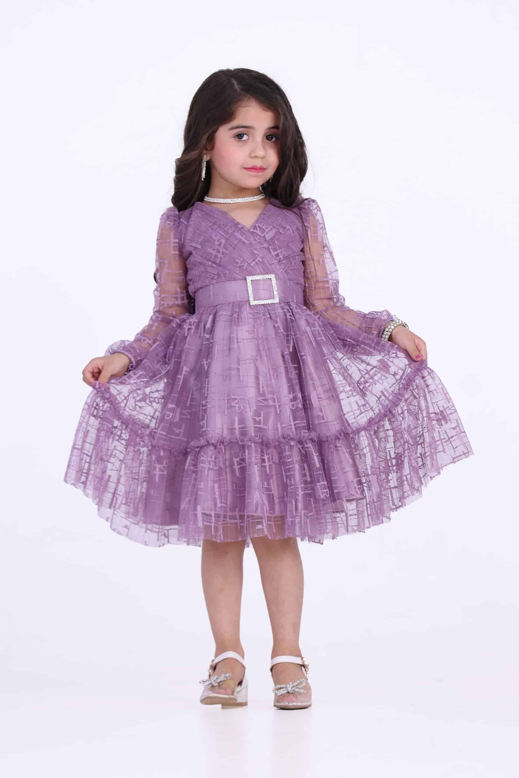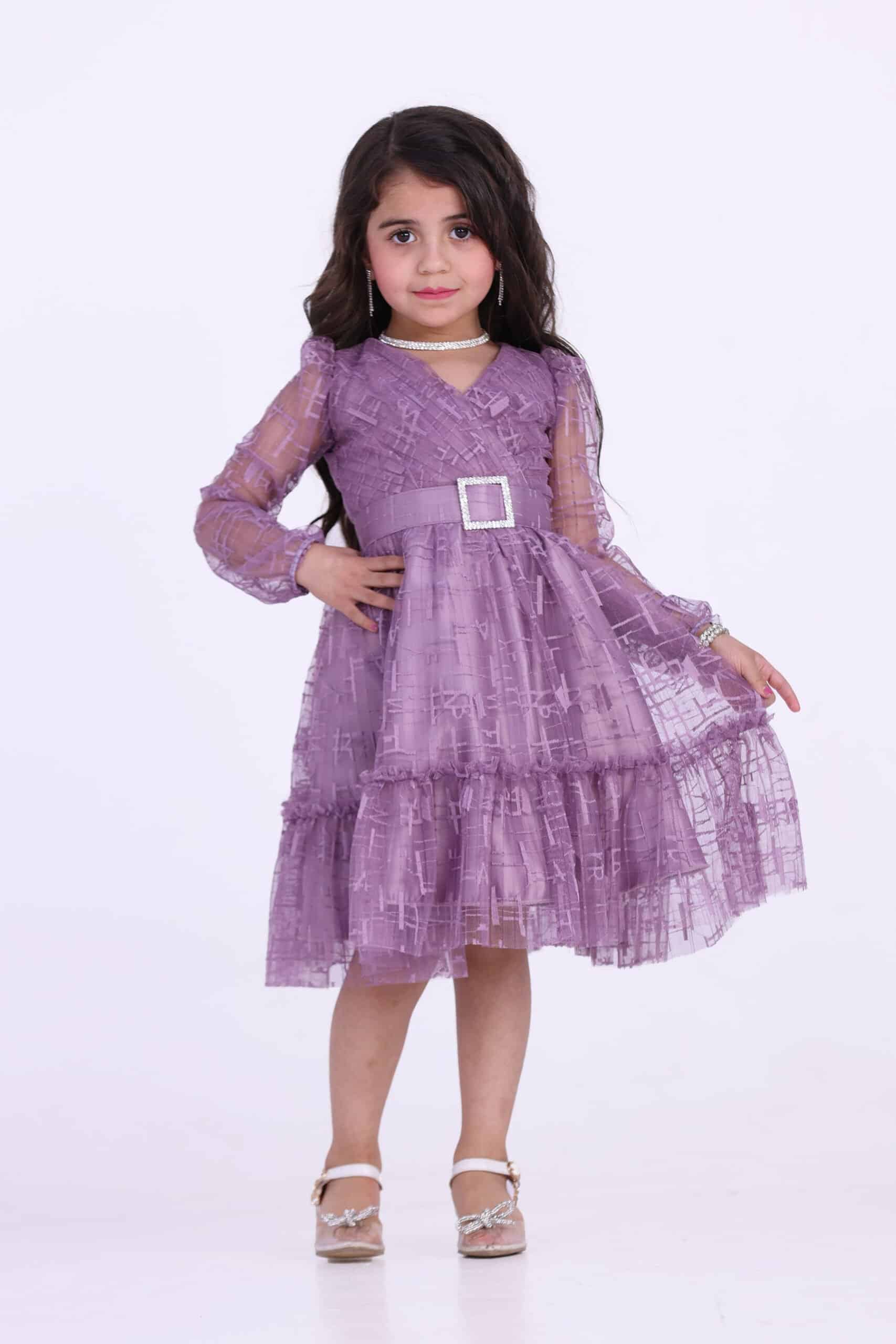 فستان بناتي بأكمام شفافة وبحزام انيق لضبط القياس على الجسم فهذا الشكل بالتحديد قادر ليجعلك اميرتك الصغيرة مختلفة عن الحاضرين وملفتة للانتباه .