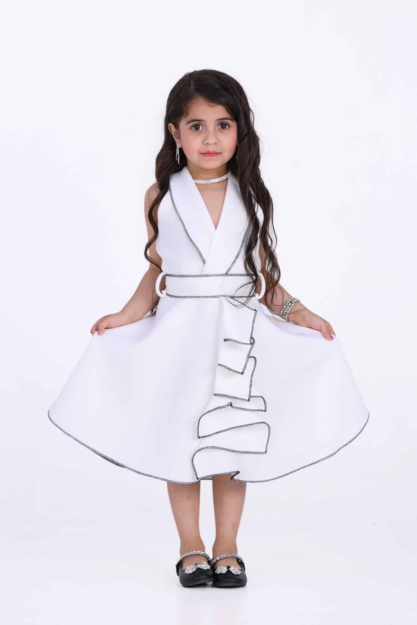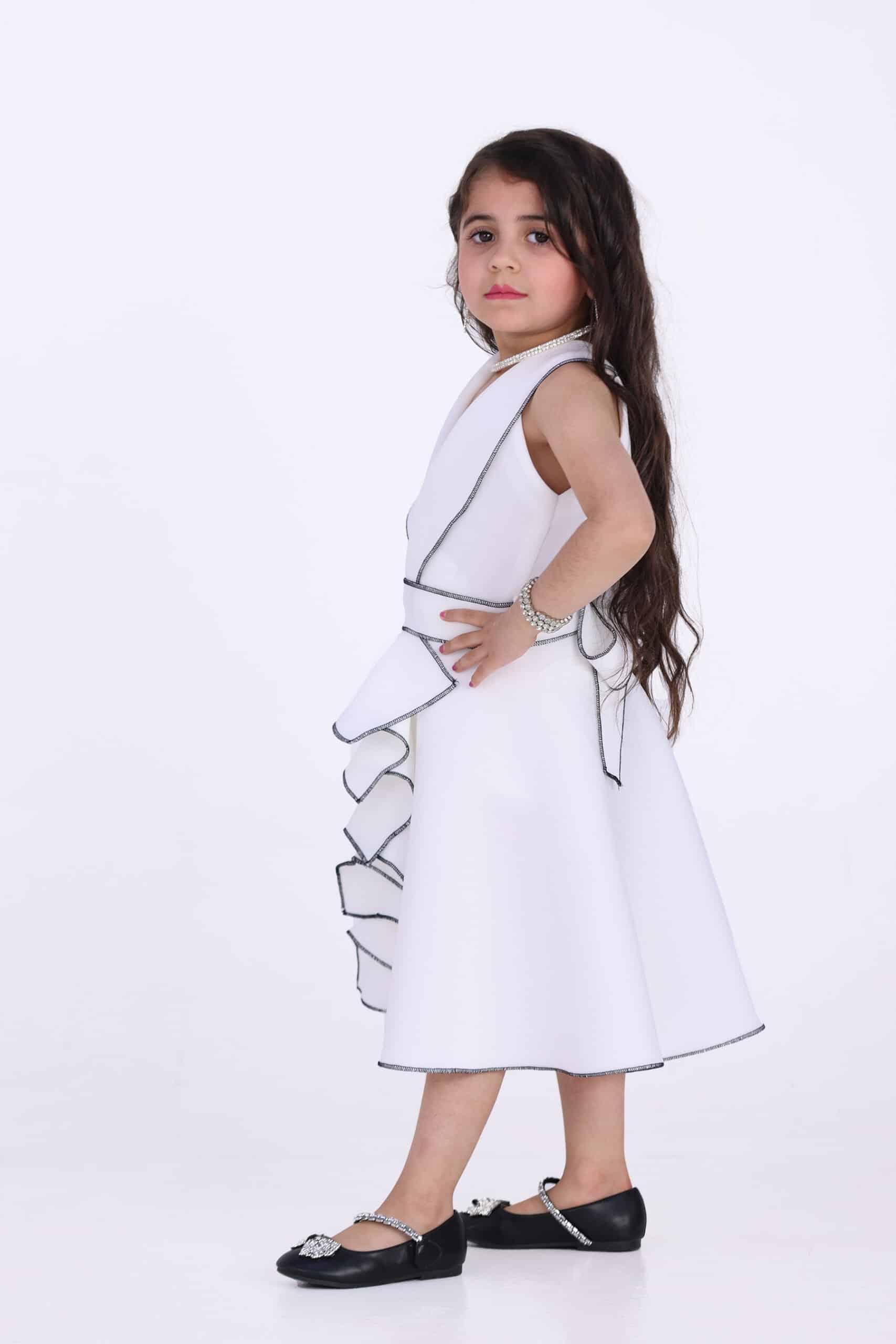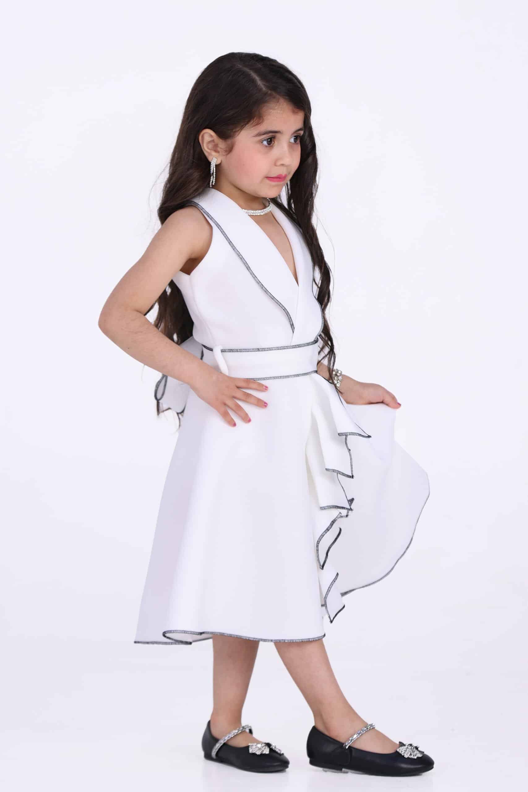 دللي اميرتك الصغيرة بفستان بناتي بقصة انيقة وبكسرات امامية انيقة بحباكه اطرف الكسرات من افضل التصاميم الحصرية بكسرات أمامية مزين بحزام من نفس القماش لإطلالة رائعة