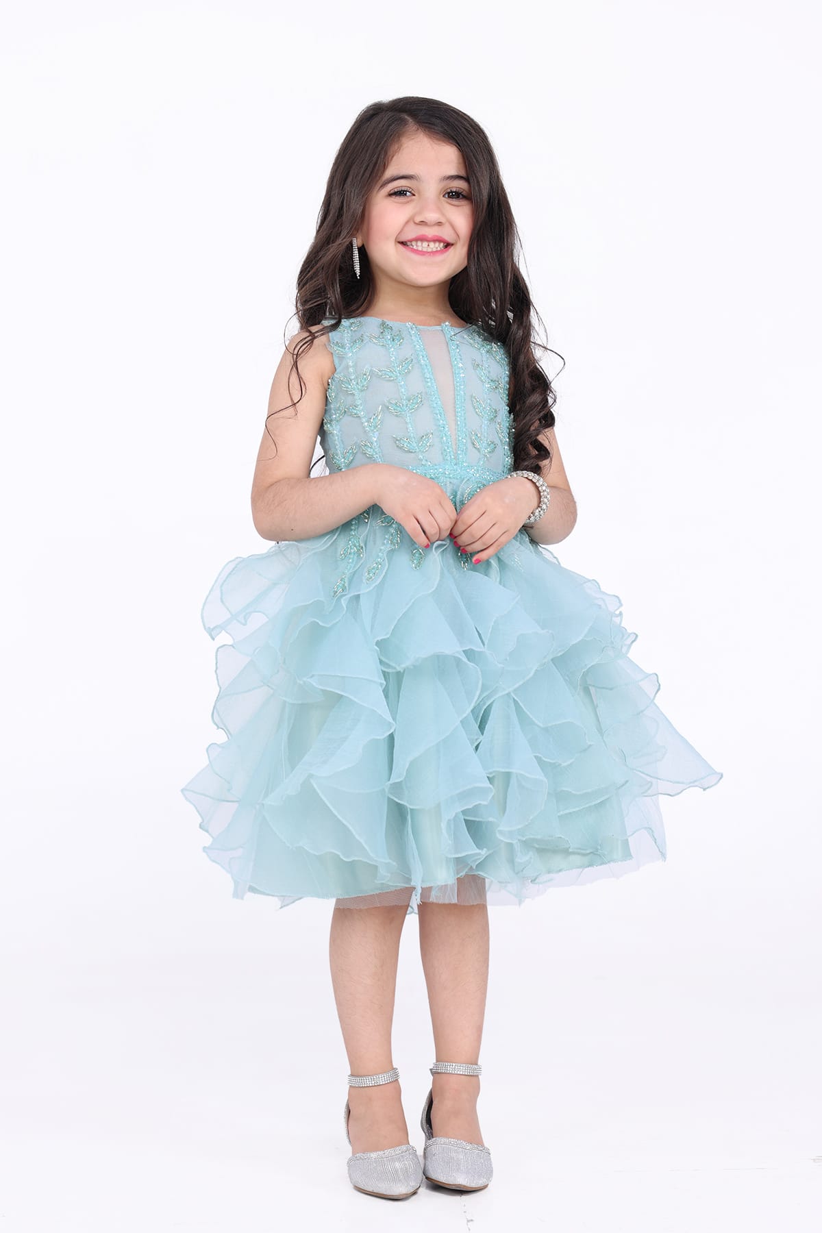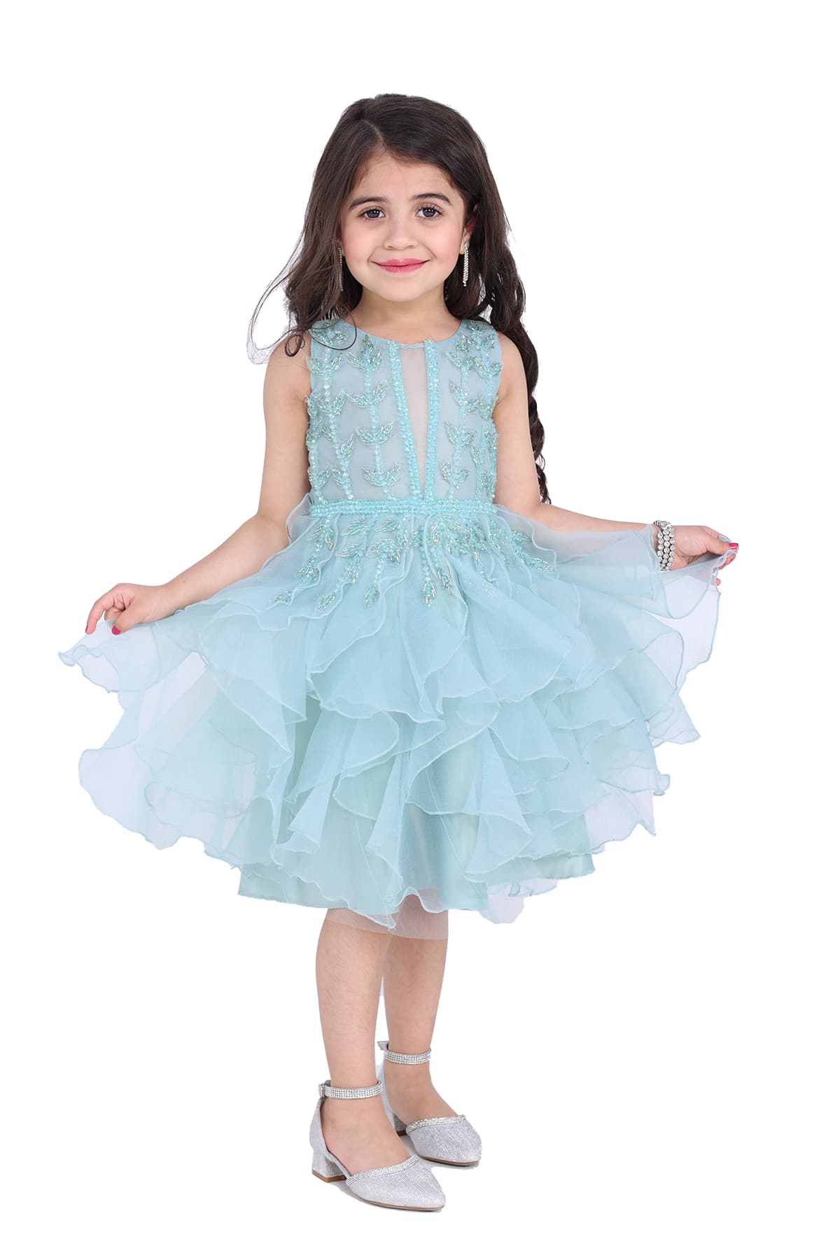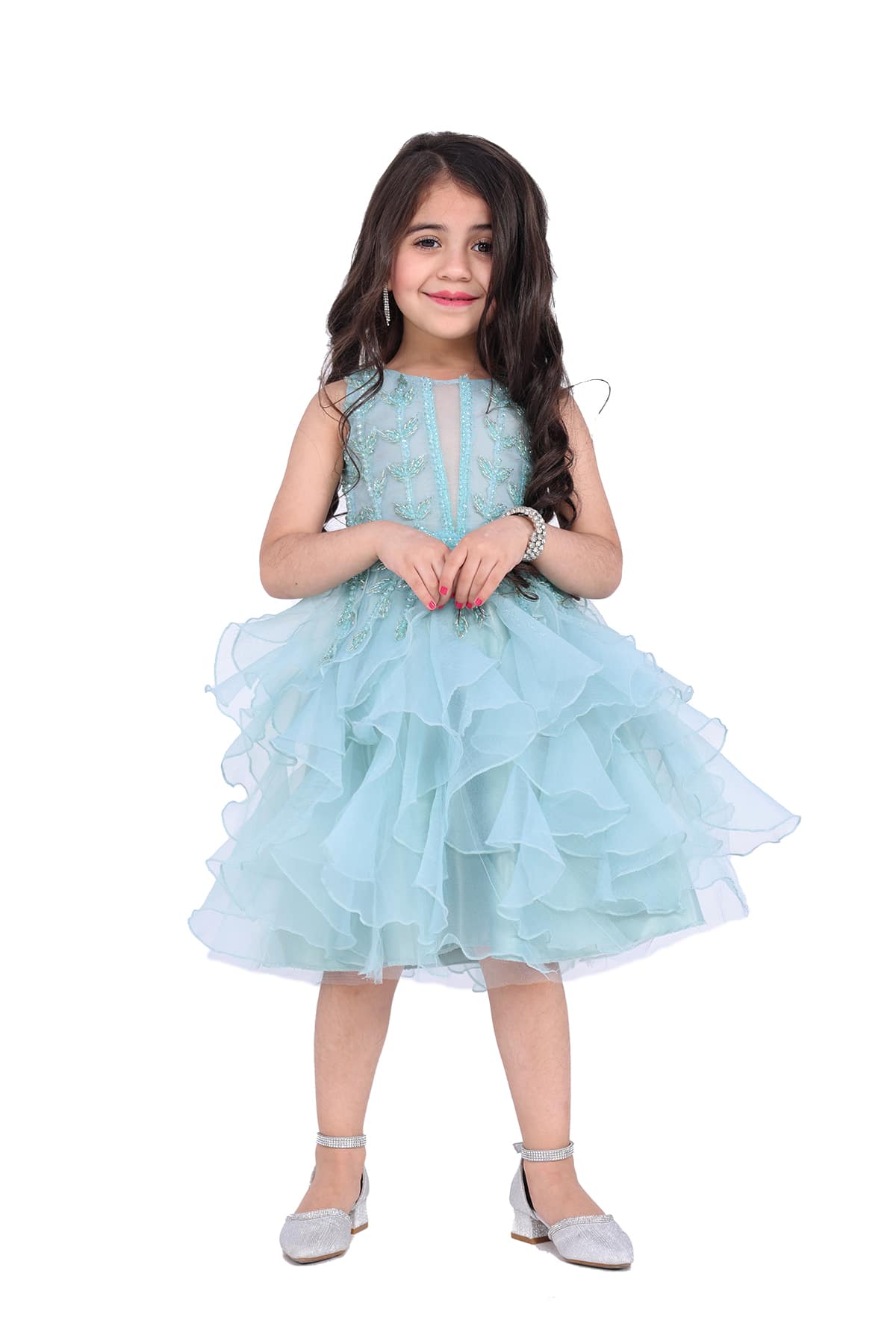 فستان بناتي السماوي بشرائح الانيقة من خامة الجازار والتطريز على شكل تشجير يعد من الفساتين الرائعة التي تناسب العديد من المناسبات الخاصة بالأطفال، من بين هذه المناسبات: