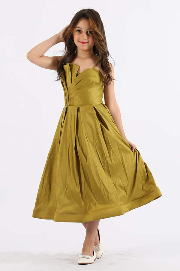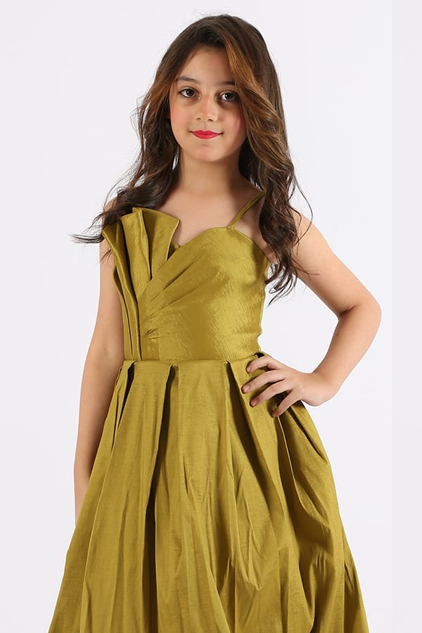 فستان بناتي سهرة بدون أكمام من خامة التفتا شانتون هو خيار مثالي لإطلالة أنيقة وفخمة في المناسبات الخاصة. يتميز هذا الفستان بتصميمه الرائع الذي يجمع بين الأنوثة والرفاهية، حيث يضفي لمسة من الجمال الفريد على الطفلة. الفستان مزخرف بكسرات أنيقة في منطقة الصدر، مما يضيف له طابعًا متفردًا ويبرز جمال تفاصيله. هذه الكسرات تخلق تأثيرًا بصريًا جذابًا يعكس الذوق الرفيع وتعزز من الفخامة التي يقدمها الفستان.