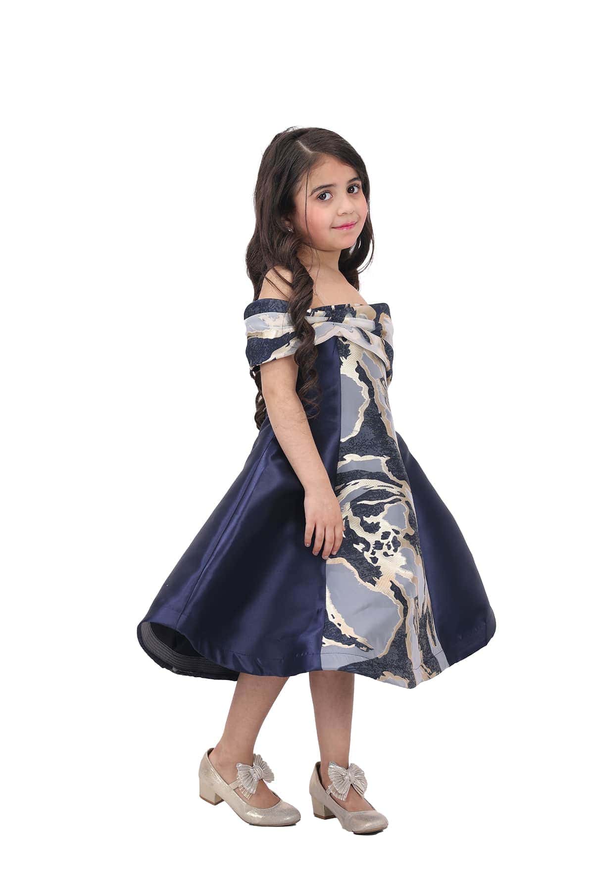 فستان بناتي فخم بإكمام اوف شولدر كحلي وبيج فخم من خامة الميكادو يتميز الفستان بالوان إضافية على الاكمام ومن الامام لتبدو من جمال الفستان يتوفر الفستان بلونين الكحلي والبيج يتميز بتصميم أنيق وجذاب. يتوفر بلونين رائعين للاختيار من بينهما،. ستتألقين بإطلالة فخمة وجميلة في المناسبات السهرة.