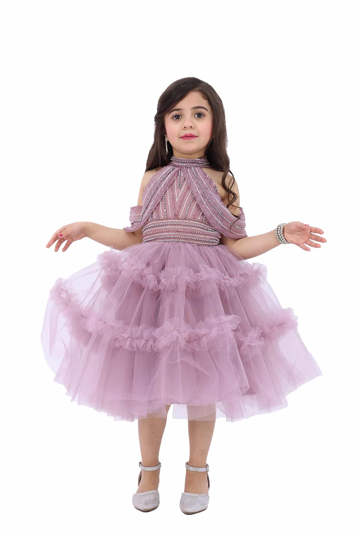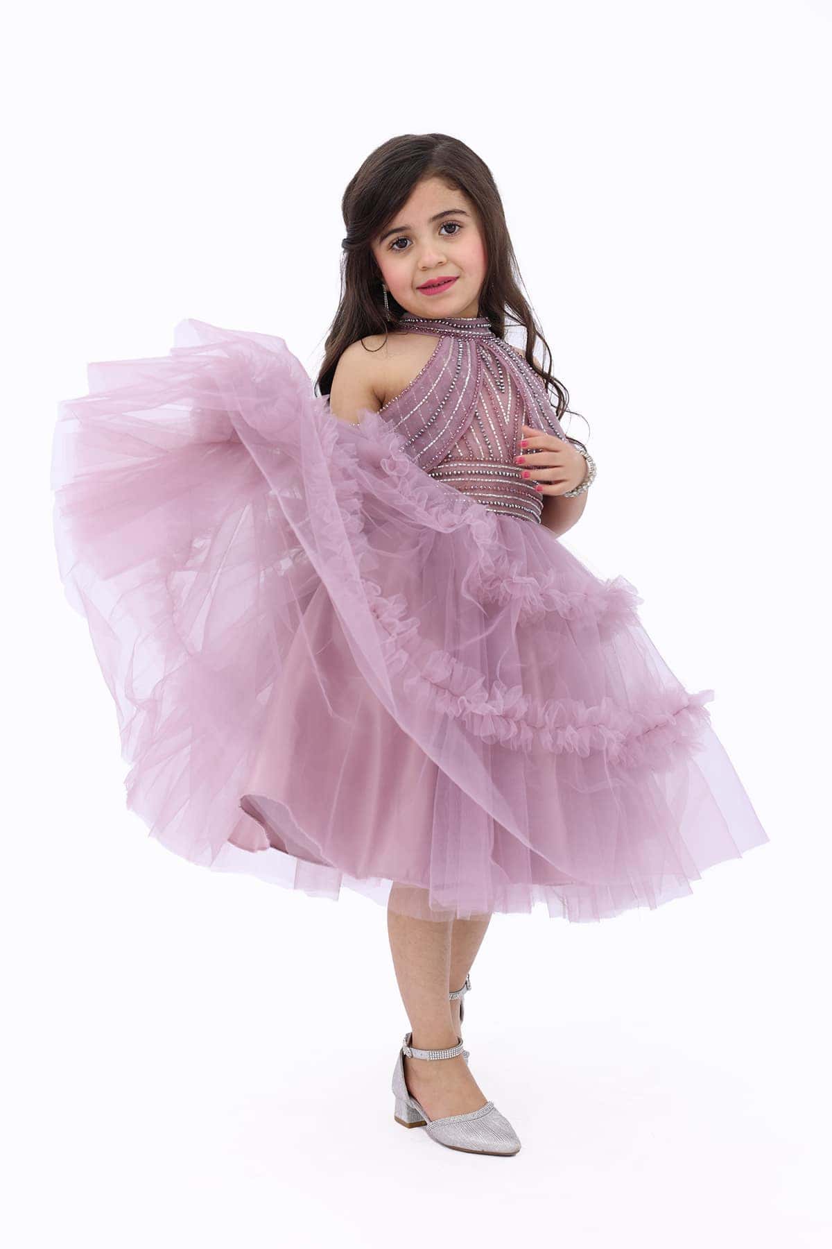 فستان بناتي لحمي بتطريز أنيق على الصدر والخصر صُمم هذا الفستان من خامة التُل الناعم ليأخذ شكل الجسم ويعطي رونق خاص لابنتك الجميلة حيث تبدو مختلفة عن جميع من حولها .سيمنح ابنتك إطلالة ساحرة ومميزة. ستشعر بالسعادة والثقة عند ارتداءها، وستتلقى إعجاب من الآخرين.