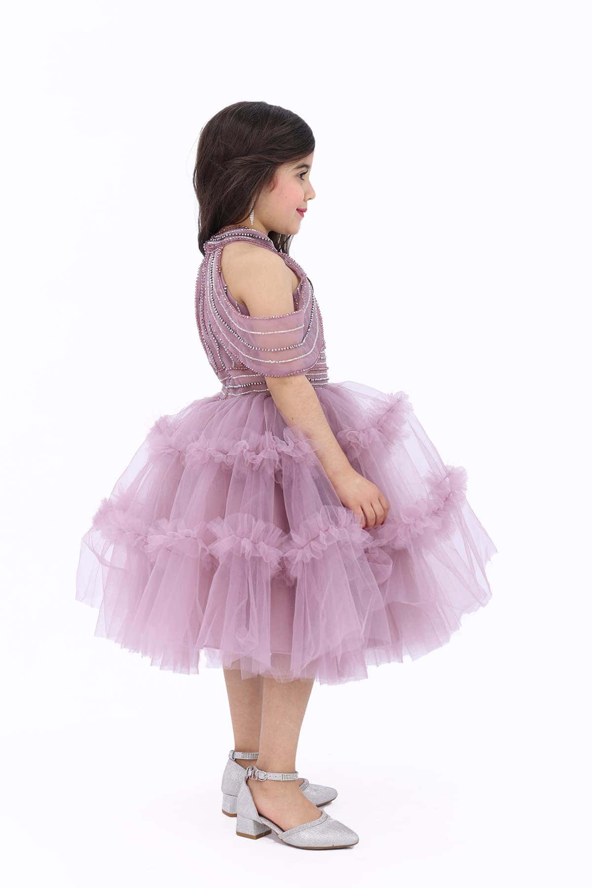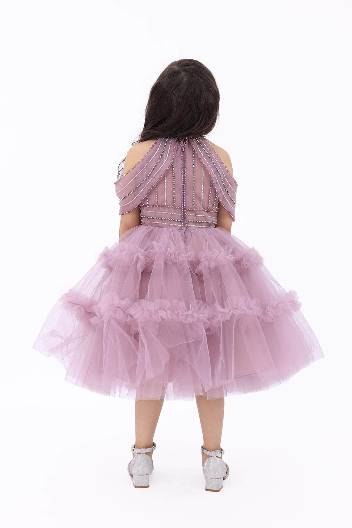 3- الخامة الناعمة: تم تصميم هذا فستان بناتي لحمي من خامة التُل الناعم، وهو ما يجعله يتناسب بشكل جيد مع شكل الجسم ويعطي للفتاة مظهرًا مختلفًا وجميلًا.