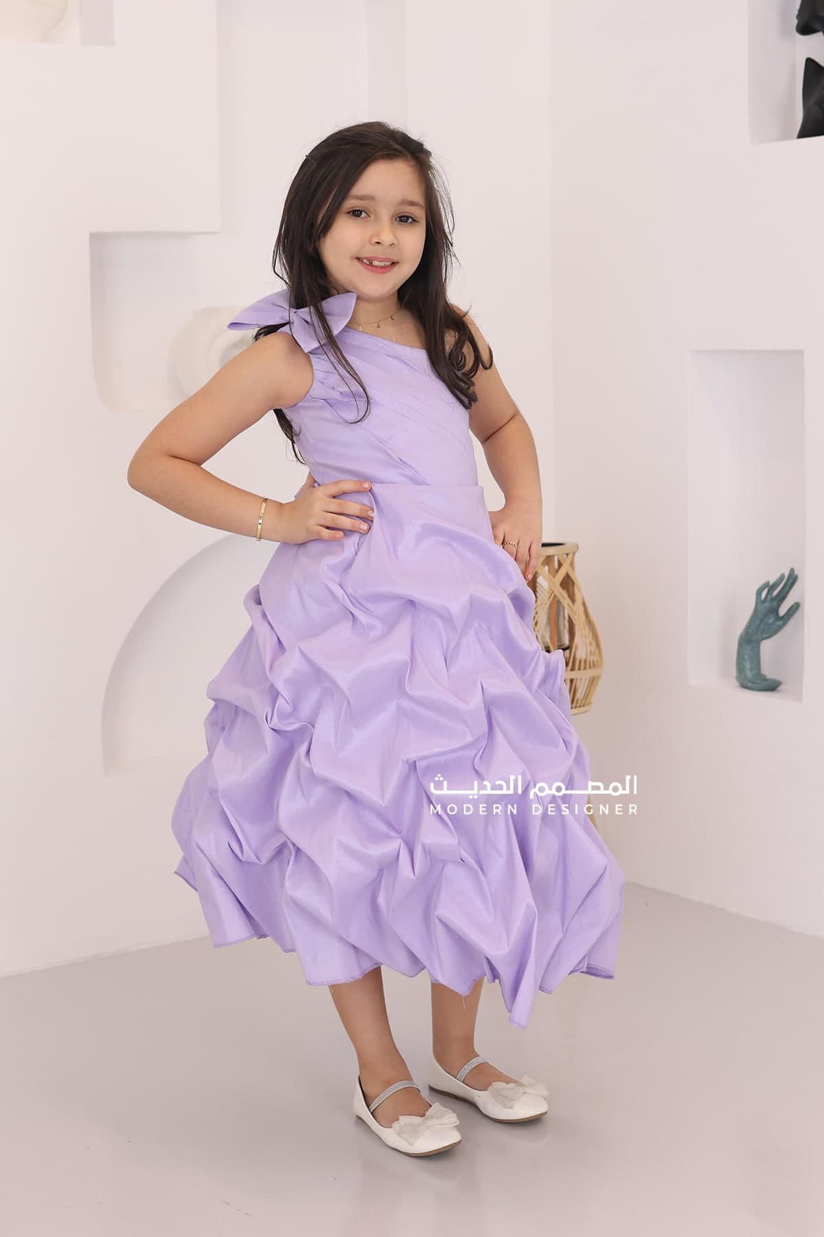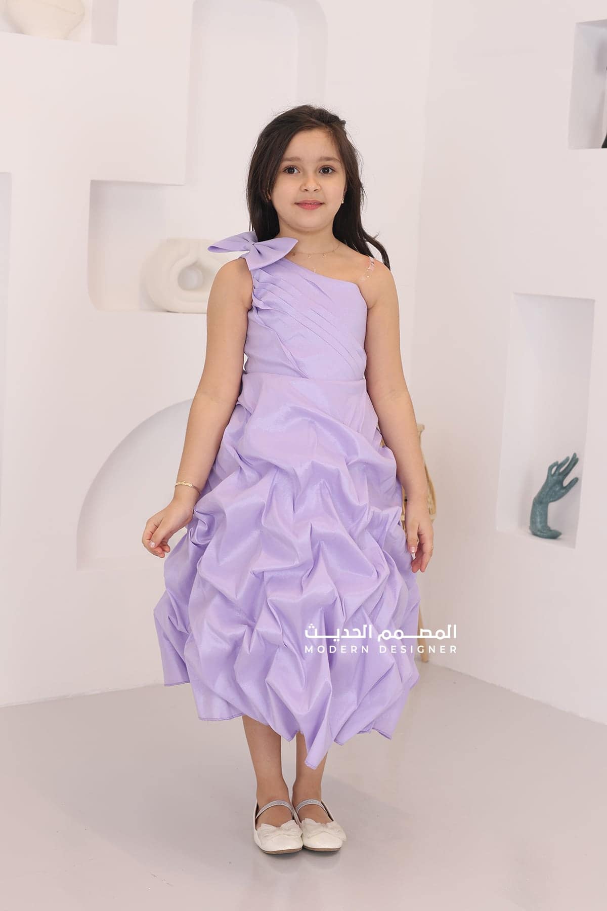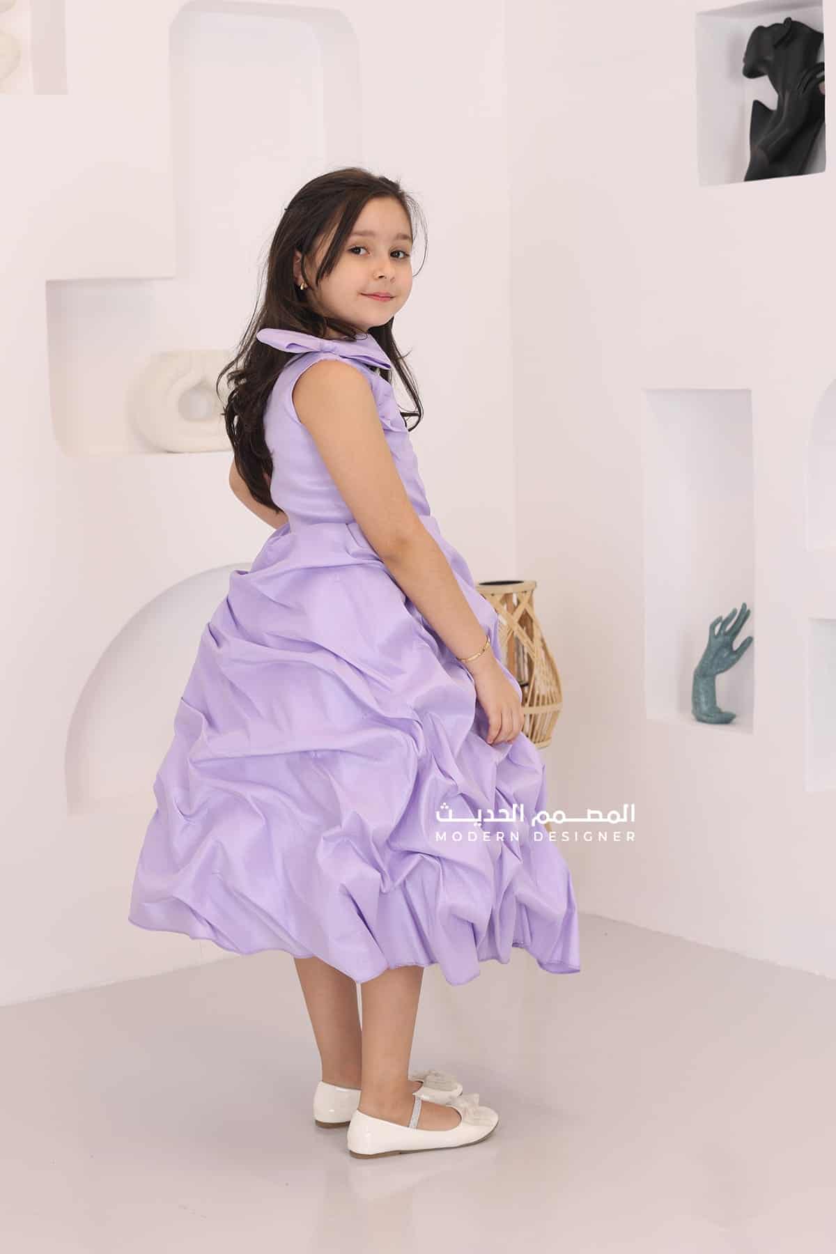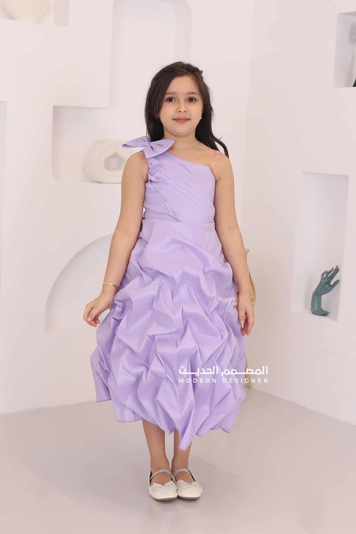 فستان بناتي موف بكتف فيونكة من خامة الشانتون بكسرات انيقة في الأسفل ويتميز الفستان بتصميمه الحديث والرائعة حيث يأتي بتصميم فيونكة عل كتف واحد فستان أنيق ورائع يتميز بتفاصيل حديثة وجودة عالية. سوف يمنحك الفستان إطلالة فريدة وأنيقة ويجعلك تتألقين في المناسبات المختلفة.