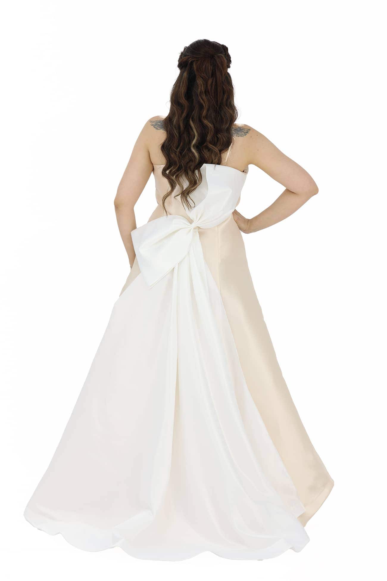 الفيونكة : إضافة الفيونكة والذيل الطويل إلى الفستان يضفي لمسة من الأناقة والرومانسية. تعطي الفيونكة تفصيلًا أنثويًا وجميلًا للفستان، في حين يضفي الذيل الطويل لمسة من الأناقة والأناقة الكلاسيكية.