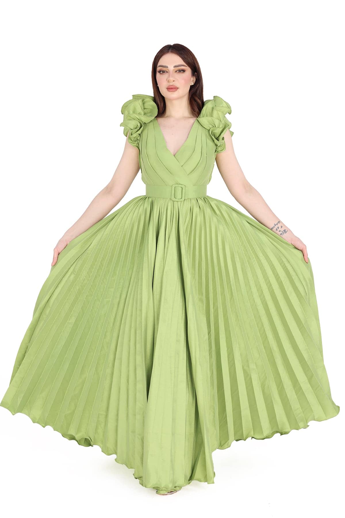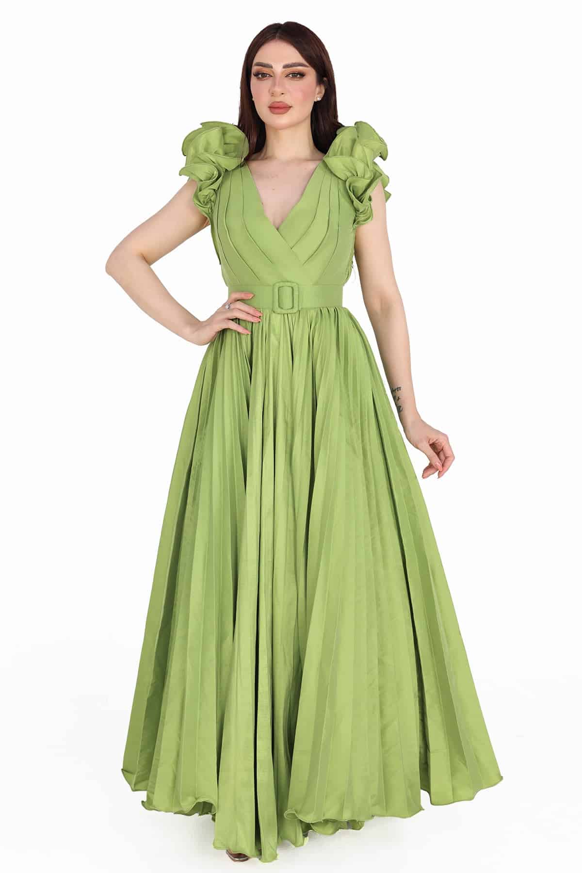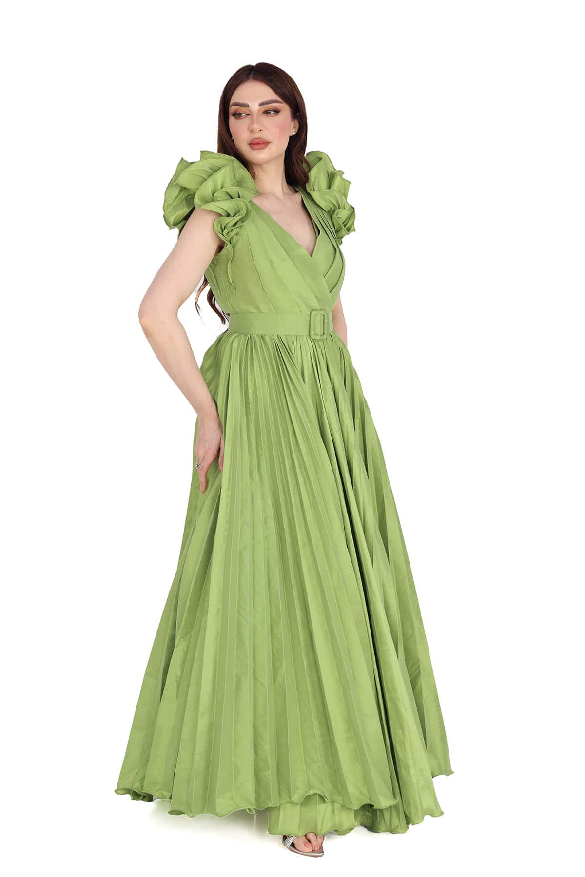فستان سهرة أخضر طويل بتصميم روماني صمم هذا الفستان بفيونكة على اعلا الاكتاف بطبقات أنيقة علي الصدر بحرف v يجمع هذا الفستان بين التصميم الأنيق المستوحى من القصص الخيالية واللمسات الكلاسيكية. بتصميم روماني يجمع بين الأناقة الكلاسيكية والتفاصيل الأنثوية الجميلة. سوف يلفت الأنظار بجماله وأناقته، ويترك انطباعًا لا يُنسى على الجميع.
