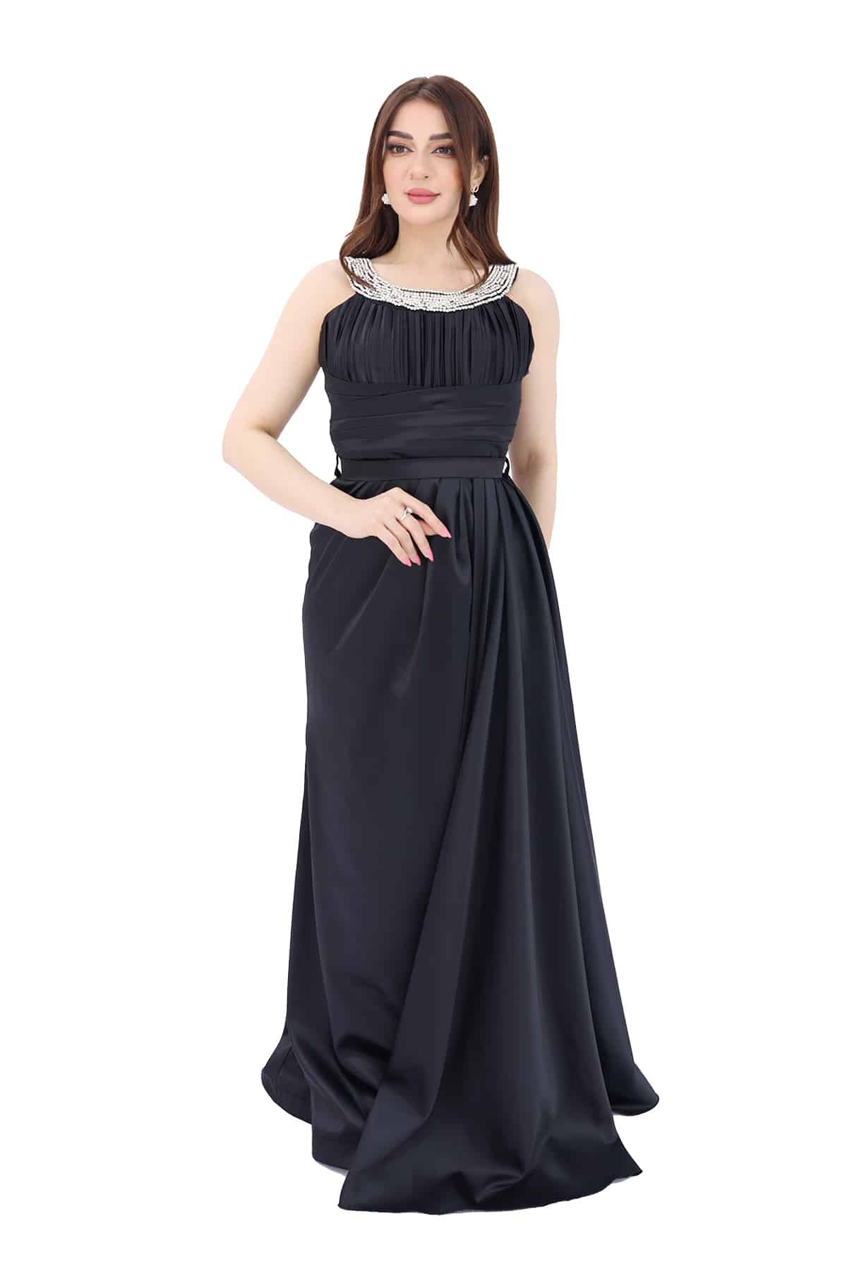فستان سهرة اسود طويل طويل بكسرات أنيقة بزينة الصدر وبياقة كرستال أنيقة مصنوع من خامة التفتة الفاخرة لمزيد من الأناقة بتصميم حديث وتطريز راقي يعكس صورة جذابة بقصة فريدة تظهر رشاقتك بأسلوب جديد.يتميز الفستان بلونه الأسود الأنيق والجذاب الذي يناسب مختلف الأذواق والمناسبات الرسمية يتميز التصميم بالكسرات الأنيقة التي تعطي الفستان حركة جميلة وجذابة، بالإضافة إلى زينة الصدر الراقية والياقة الكرستالية التي تضفي لمسة من الأناقة والجمال على الفستان. يتميز الفستان بطوله الطويل الذي يعطي المرأة مظهرًا راقيًا وجذابًا، ويناسب المناسبات الرسمية المختلفة.