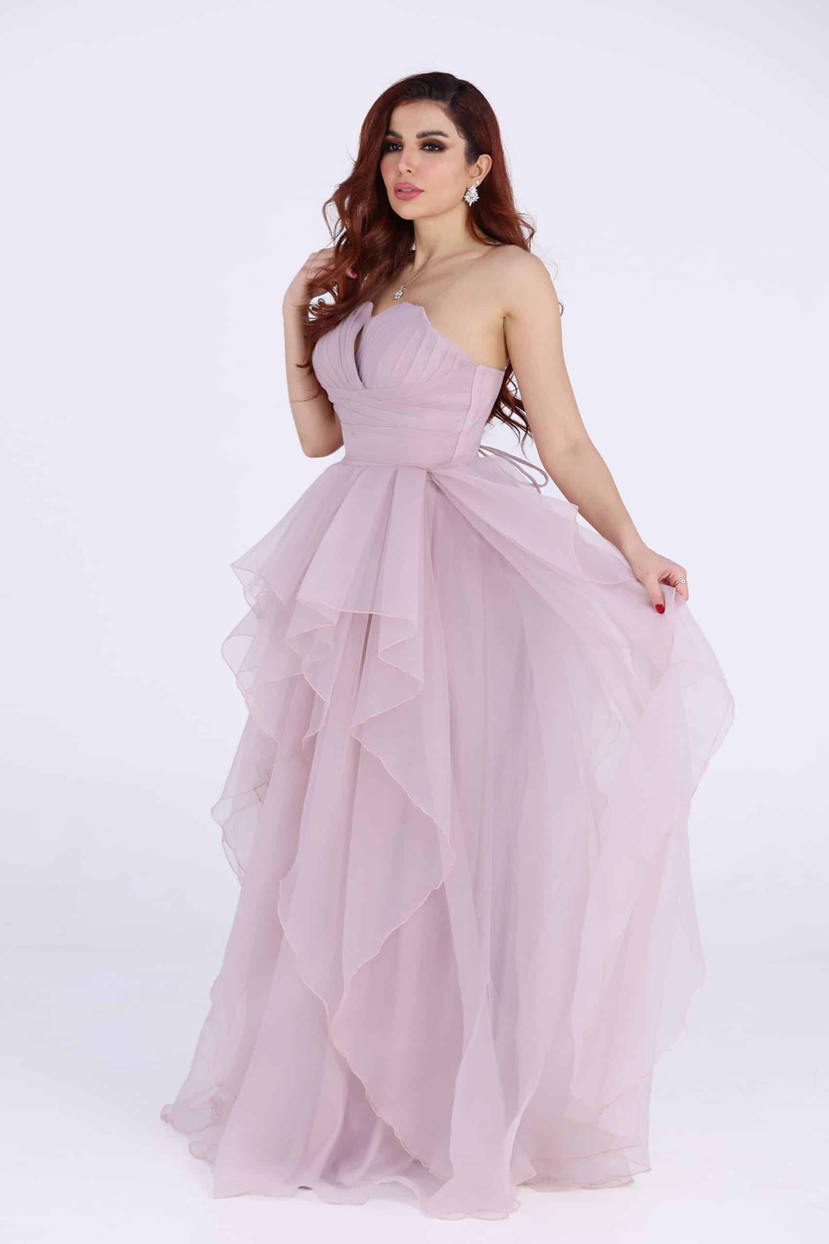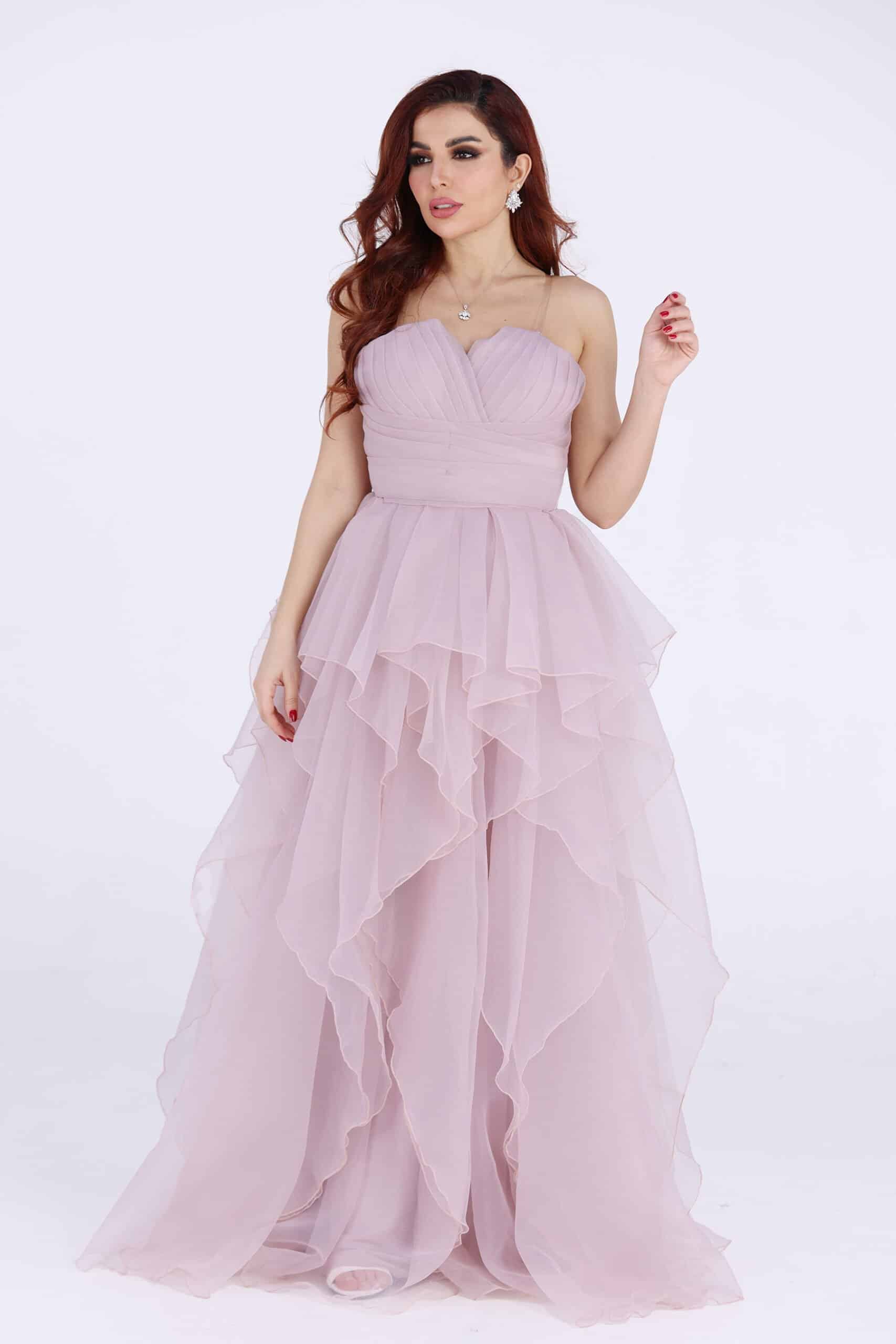 فستان سهرة أنيق بشكل شرائح متميز في اللبس والاناقة بلونه اللحمي فستان زفاف جميل يقدم لك هذا الفستان من المصمم الحديث للزفاف الذي طالما حلمت به ،ان تكوني ملكة البنات في كل المناسبات انه الفستان الذي يمنحك شعوراً بمنتهى الرقة والأناقة يتميز الفستان بتصميم شرائح فريد ومميز يعطي لمسة جمالية وأناقة. يمكن أن تكون الشرائح رفيعة ومتقاطعة أو متوسطة العرض، مما يعزز جمالية التصميم ويضفي لمسة مثيرة وجذابة يمنحك الفستان شعورًا بالرقة والأناقة الرفيعة. يتدفق الفستان بأناقة على الجسم ويبرز جمال قوامك، مما يجعلك تشعرين بالثقة والسحر
