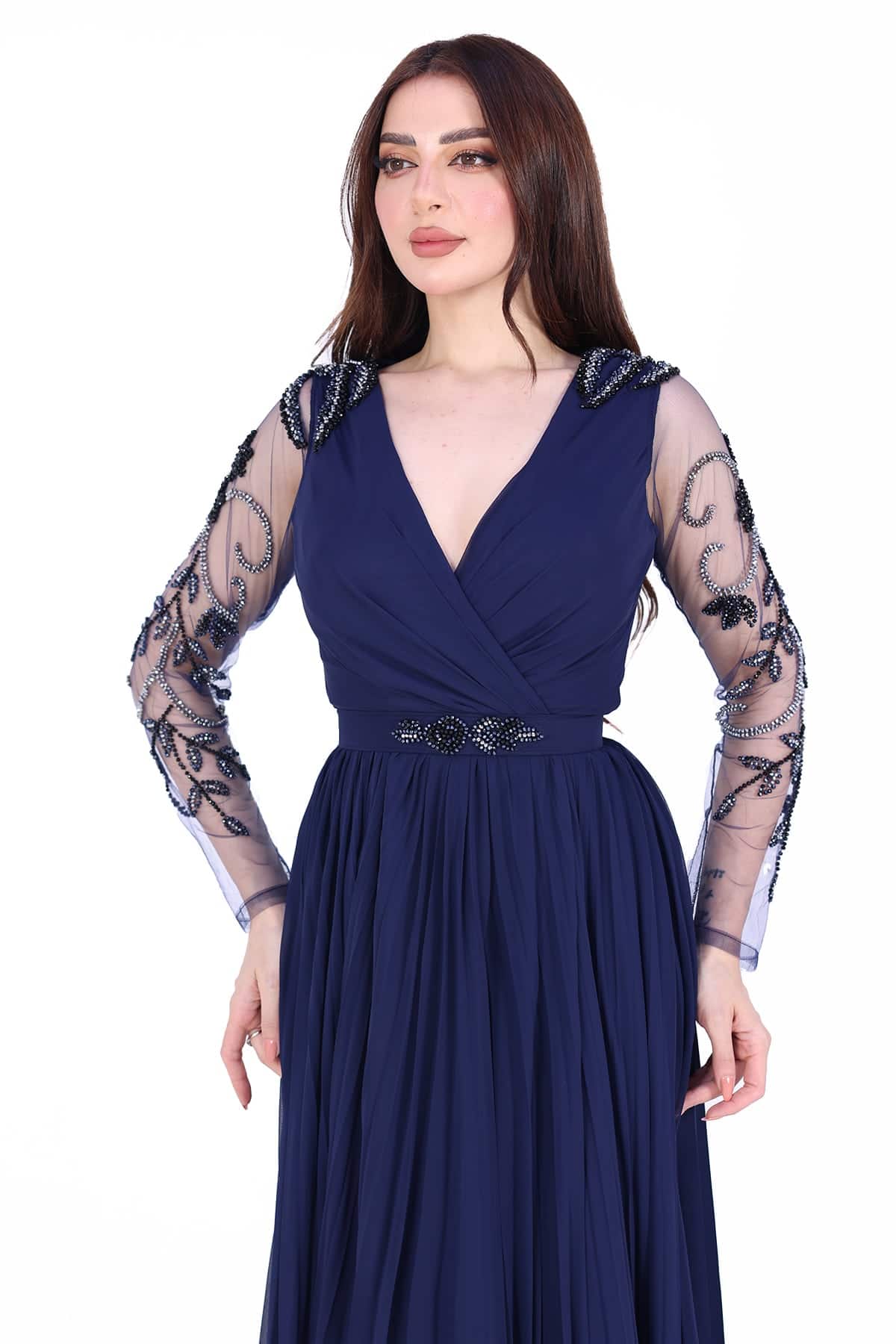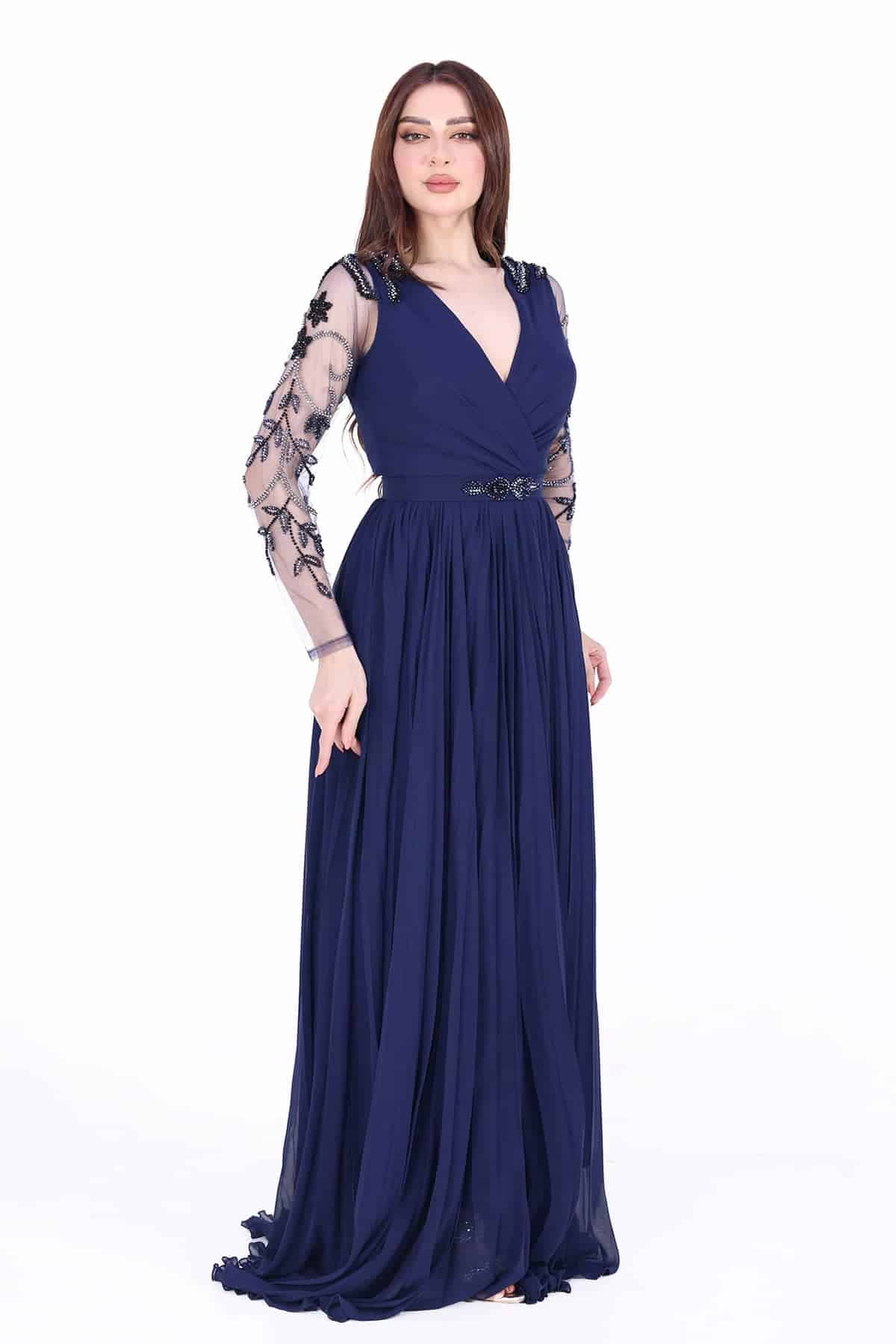 فستان سهرة بأكمام شفافة صدر لف من خامة الشيفون بالونه الكحلي الانيق يتميز هذا التصميم بتطريز انيق في الاكتاف والاكمام احصلي الأن على أروع التصاميم من متجرنا , نقدم لك تشكيلة واسعة متنوعة من الفساتين والأطقم تناسب جميع الفئات مصممة على أيدي خبراء الأزياء , تصاميم عالية الكفاءة والجودة , خياطة دقيقة خالية من العيوب , تميزي الأن وكوني متألقة يتميز التصميم بتطريز أنيق في منطقة الأكتاف والأكمام. يضفي التطريز لمسة من الرقي والتميز على الفستان، ويضيف تفصيلًا جماليًا وجذابًا للتصميم يتم تصنيع الفستان بجودة عالية وبخياطة دقيقة خالية من العيوب. يتم تنفيذ التصميم بعناية فائقة ومهارة عالية من قبل خبراء الأزياء، مما يضمن الحصول على تصميم متقن وذو جودة عالية.