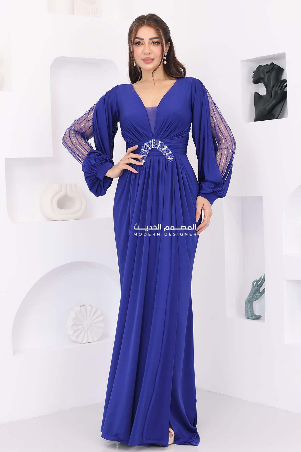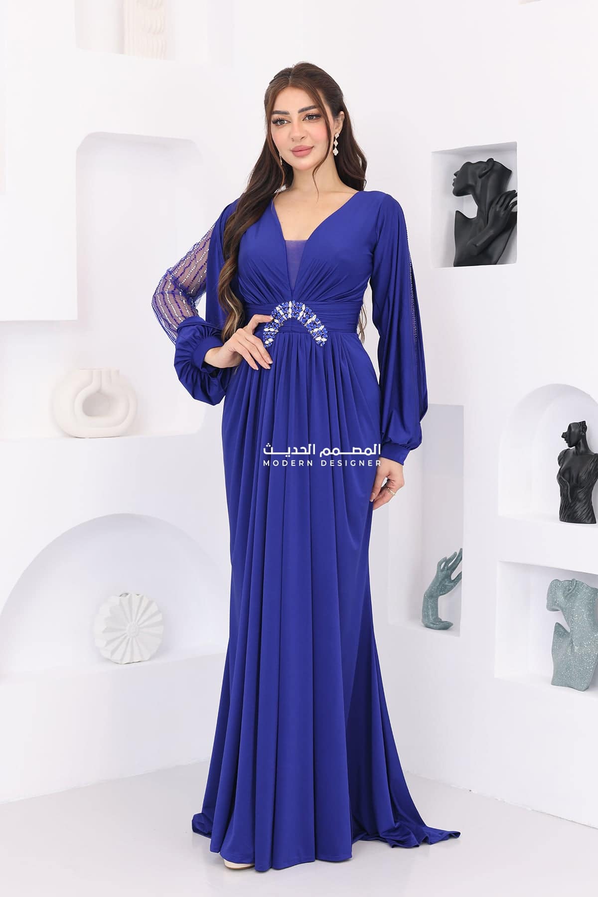 فستان سهرة بأكمام طويله مطرزة يتميز الفستان بتطريزه الأنيق على الخصر والاكمام الذي يضفي لمسة من الفخامة والأناقة لكي يكون من أفضل الفساتين في براند المصمم الحديث حيث صنع الفستان تحت أيادي مصممين عالميين لكي يناسب ذوقك الفريد ويعكس شخصيتك