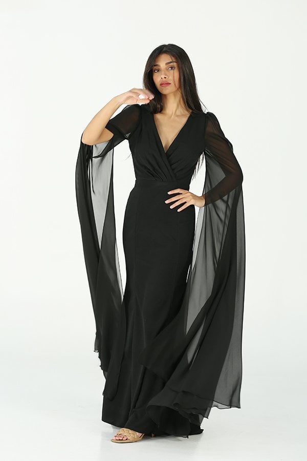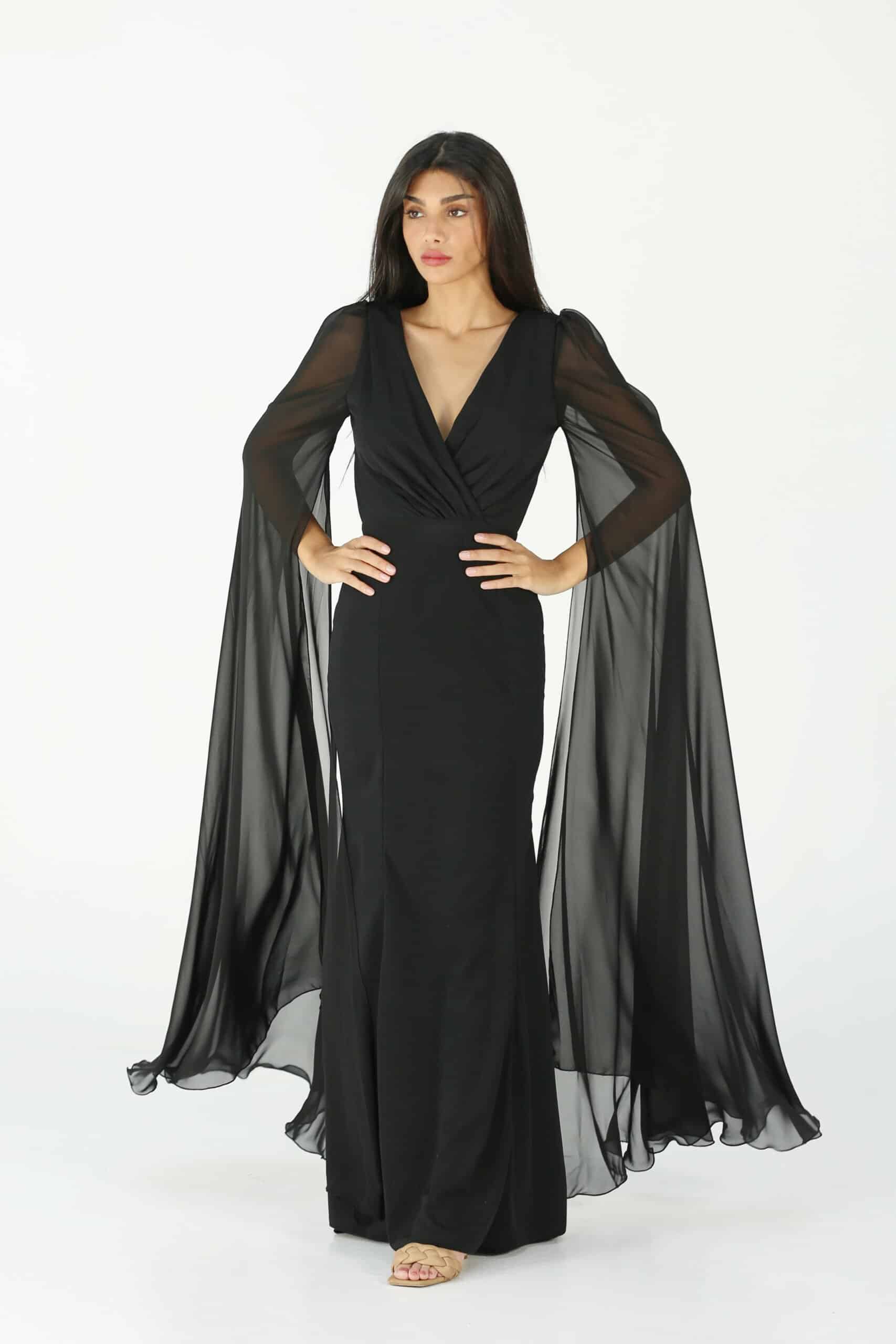 فستان سهرة باكمام منديل أنيق ومميز يجمع بين الفخامة والأنوثة في تصميم رائع. يتميز الفستان بلونين رائعين، العودي والأسود، ويُصنع من خامة الكريب الفاخرة التي تضفي عليه لمسة من الراحة والفخامة. أما الأكمام الطويلة، المصنوعة من خامة الشيفون، فهي تأخذ شكل المناديل الواسعة التي تضيف حركة وجمالًا، مما يجعل الفستان يتمتع بمظهر أنثوي وجذاب في كل خطوة.هذا الفستان مثالي للمناسبات الرسمية والحفلات، حيث يمنحكِ إطلالة ساحرة وراقية تتناغم مع كل التفاصيل. تصميمه البسيط ولكن الأنيق يجعل منه خيارًا مثاليًا لكل مناسبة تتطلب إطلالة مميزة ومبهرة.اختاري هذا الفستان لتتألقي بأناقة لا مثيل لها، ولتظهري بأفضل إطلالة في كل حدث خاص أو سهرة فاخرة.