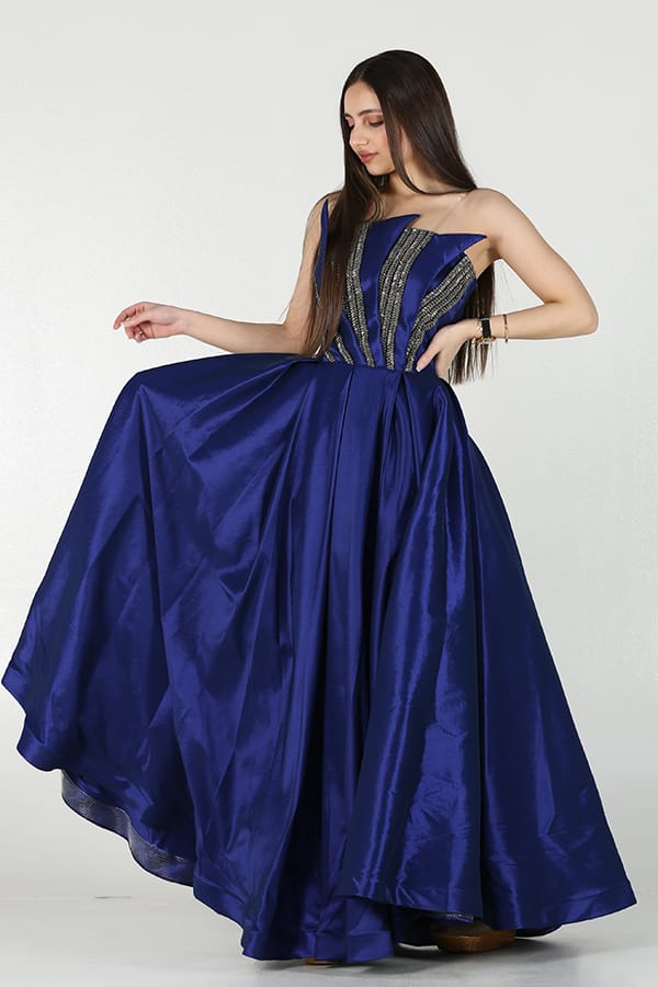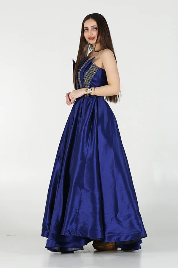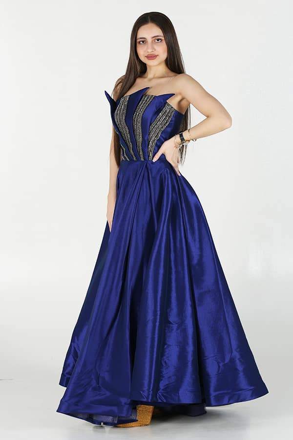 فستان سهرة بكسرات انيقة مطعم بشرائط من الكريستال الفضي هو خيار فاخر ومثالي للمناسبات الرسمية والحفلات الراقية. يتميز هذا الفستان بتصميمه الفريد الذي يجمع بين الأناقة والتفاصيل الرفيعة، حيث يبرز الجزء العلوي منه بتفاصيل كسرات أنيقة تضفي على الفستان حركة وانسيابية، مما يضفي عليه لمسة من الرقي والجمال. الشرائط الكريستال الفضية التي تزين الصدر تضيف لمسة من اللمعان والفخامة، مما يجعل الفستان يلتقط الضوء ويبرز جمال التصميم بشكل رائع. هذه التفاصيل الفاخرة تضمن لكِ إطلالة مميزة وجذابة، تجعلين نفسك محط أنظار الجميع في أي مناسبة.