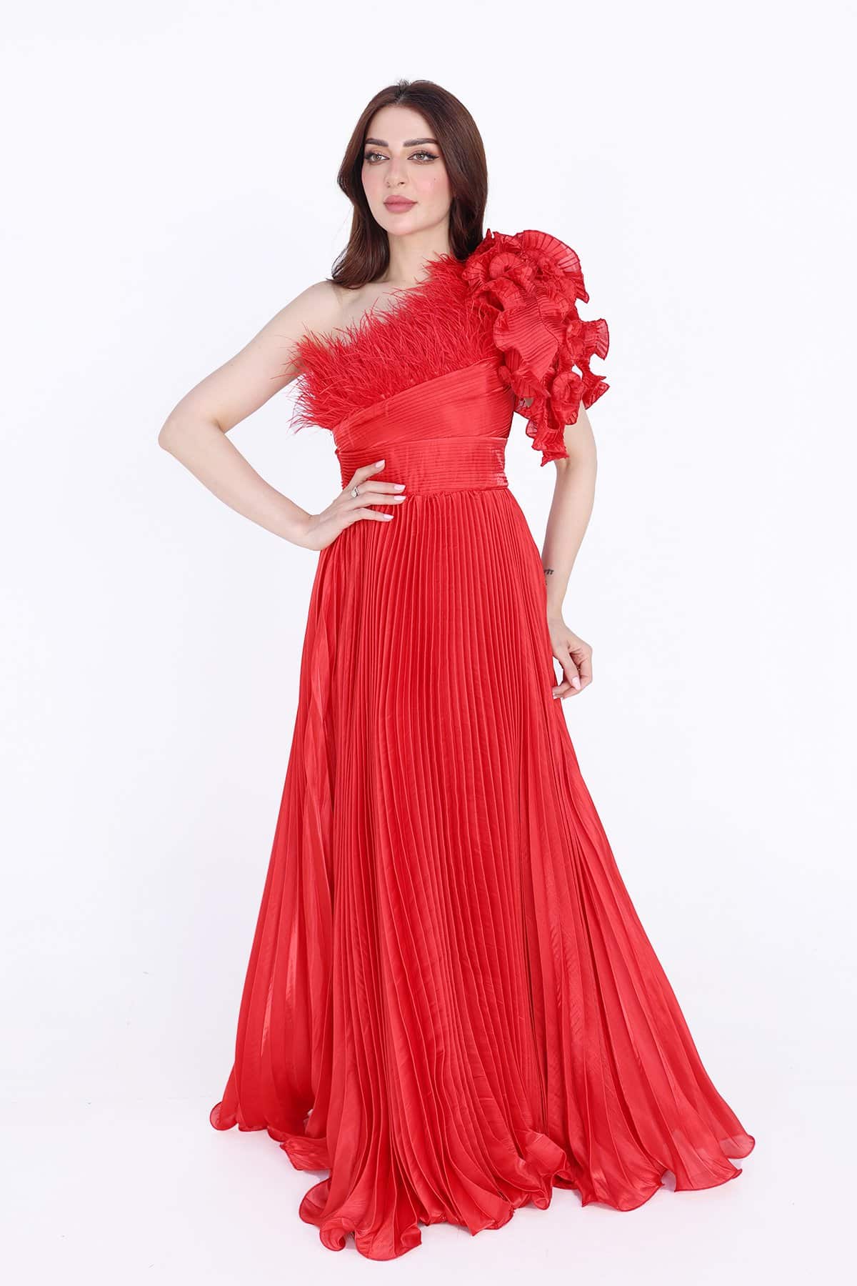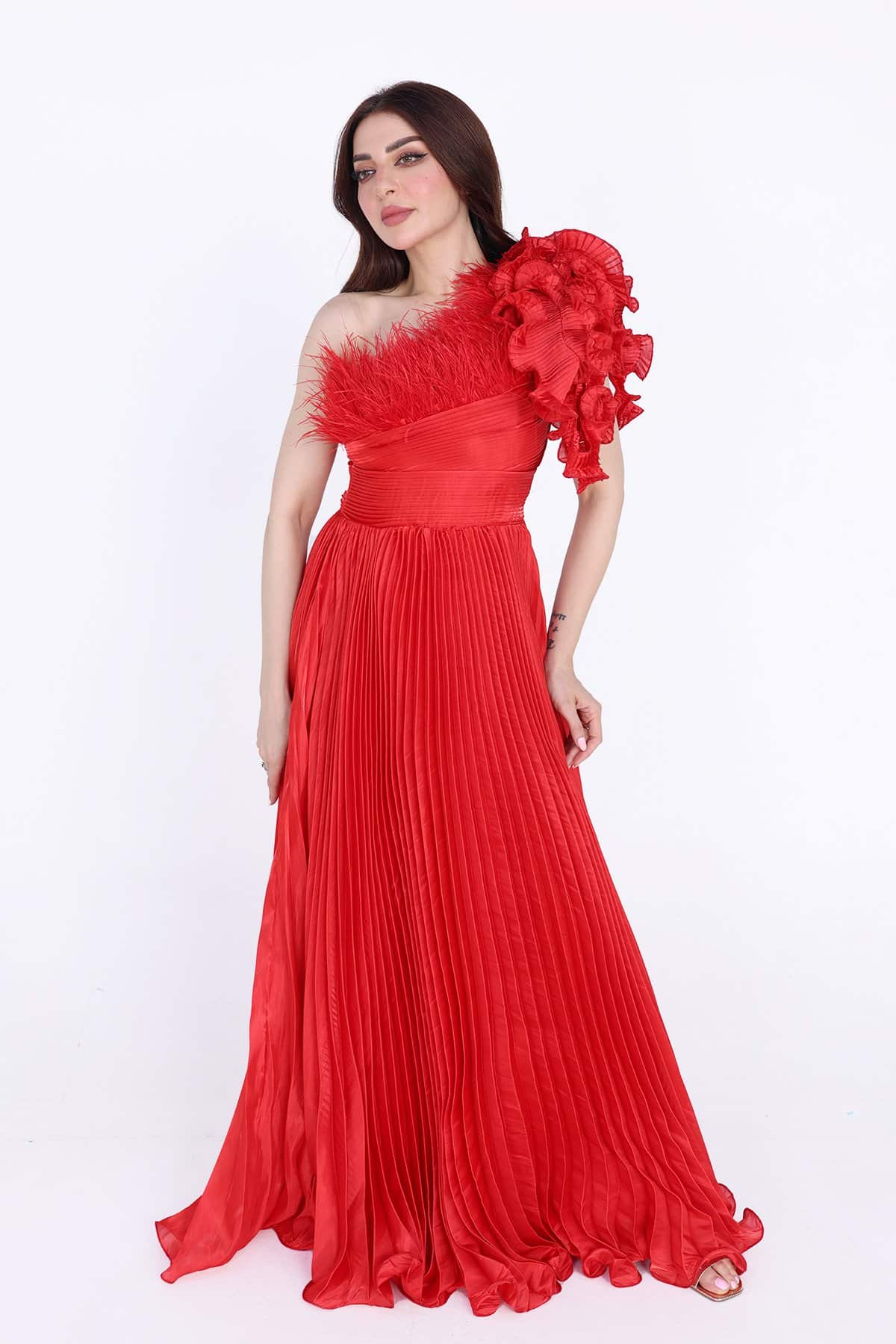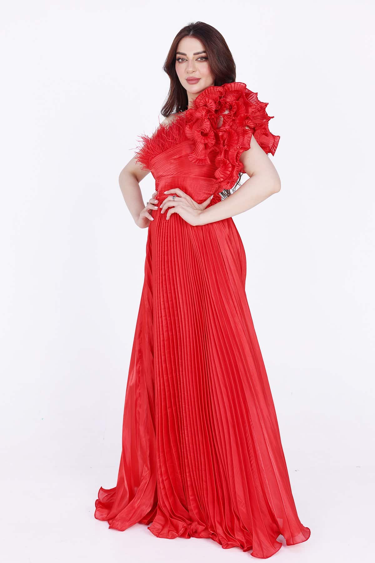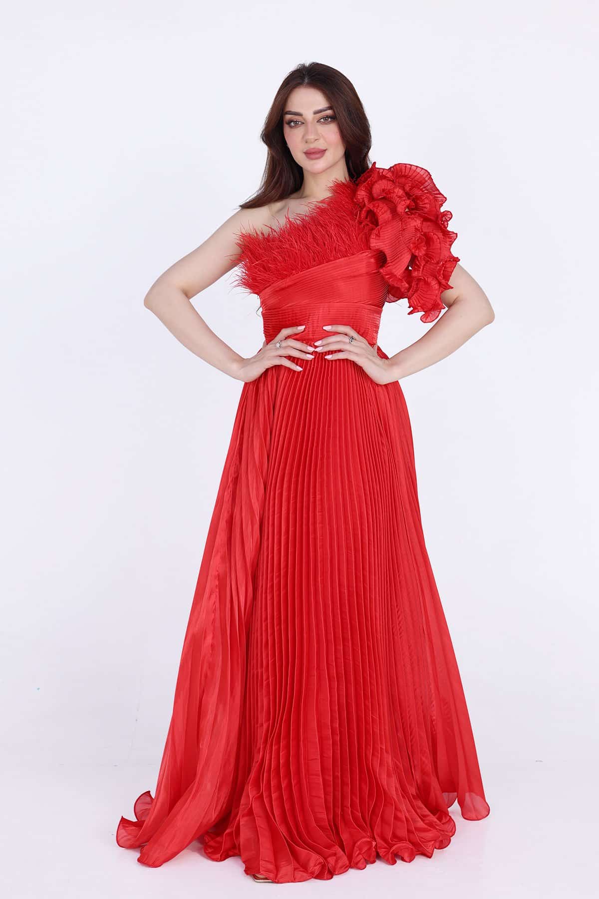 فستان سهرة بليسية بريش اعلا الصدر بكسرات من الخصر موحده الى اسفل الفستان تألقي بهذا الفستان الأنيق في مناسباتك المختلفة. فهو يتميز بقصة مريحة كما أنه مصنوع من نسيج ناعم ليضمن راحتك طوال اليوم. قطعة أنيقة ومريحة تتميز بتصميمها الجذاب والمثير. استمتعي بارتداء هذا الفستان في المناسبات المختلفة، سواء كانت حفلات السهرة أو الحفلات الرسمية، حيث ستبدين رائعة وتشعرين بالثقة والراحة طوال الوقت.