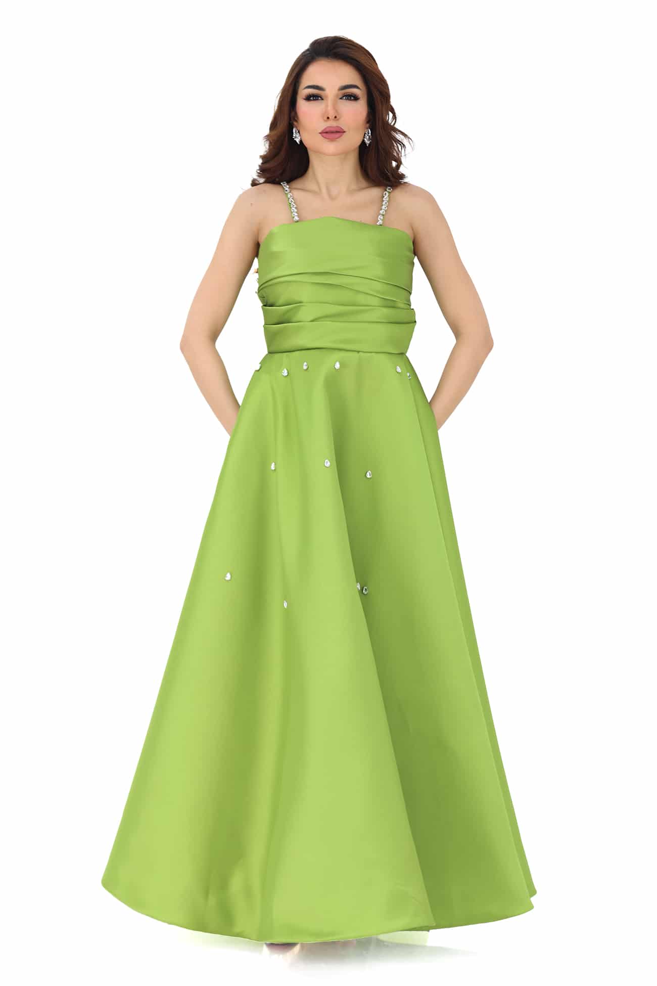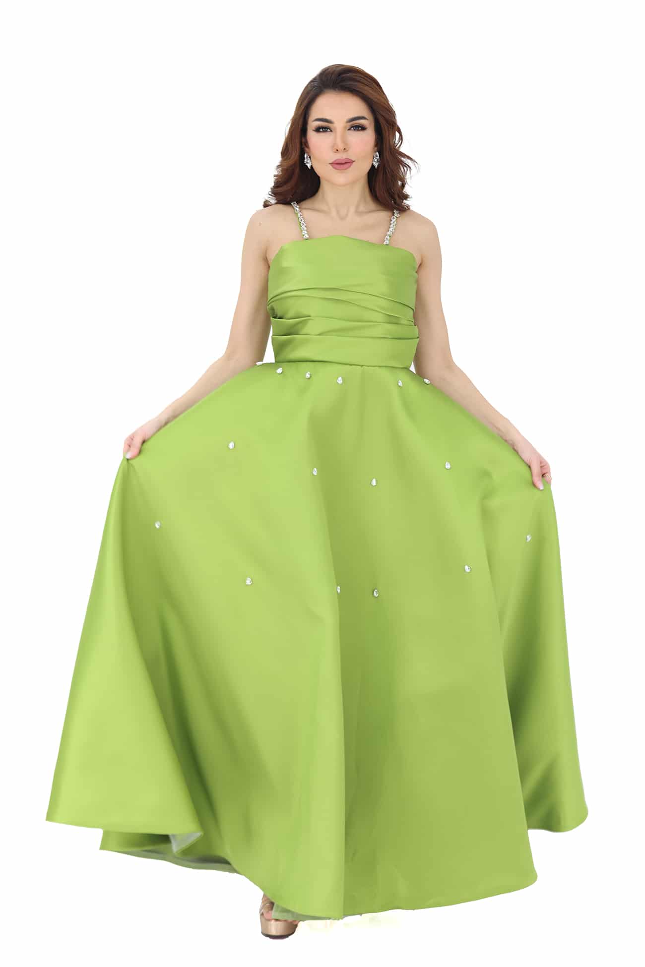 التعامل بحذر: عند ارتداء وخلع الفستان، تجنبي السحب الشديد والتعامل الخشن الذي قد يؤدي إلى تلف الكريستالات والإكسسوارات.
