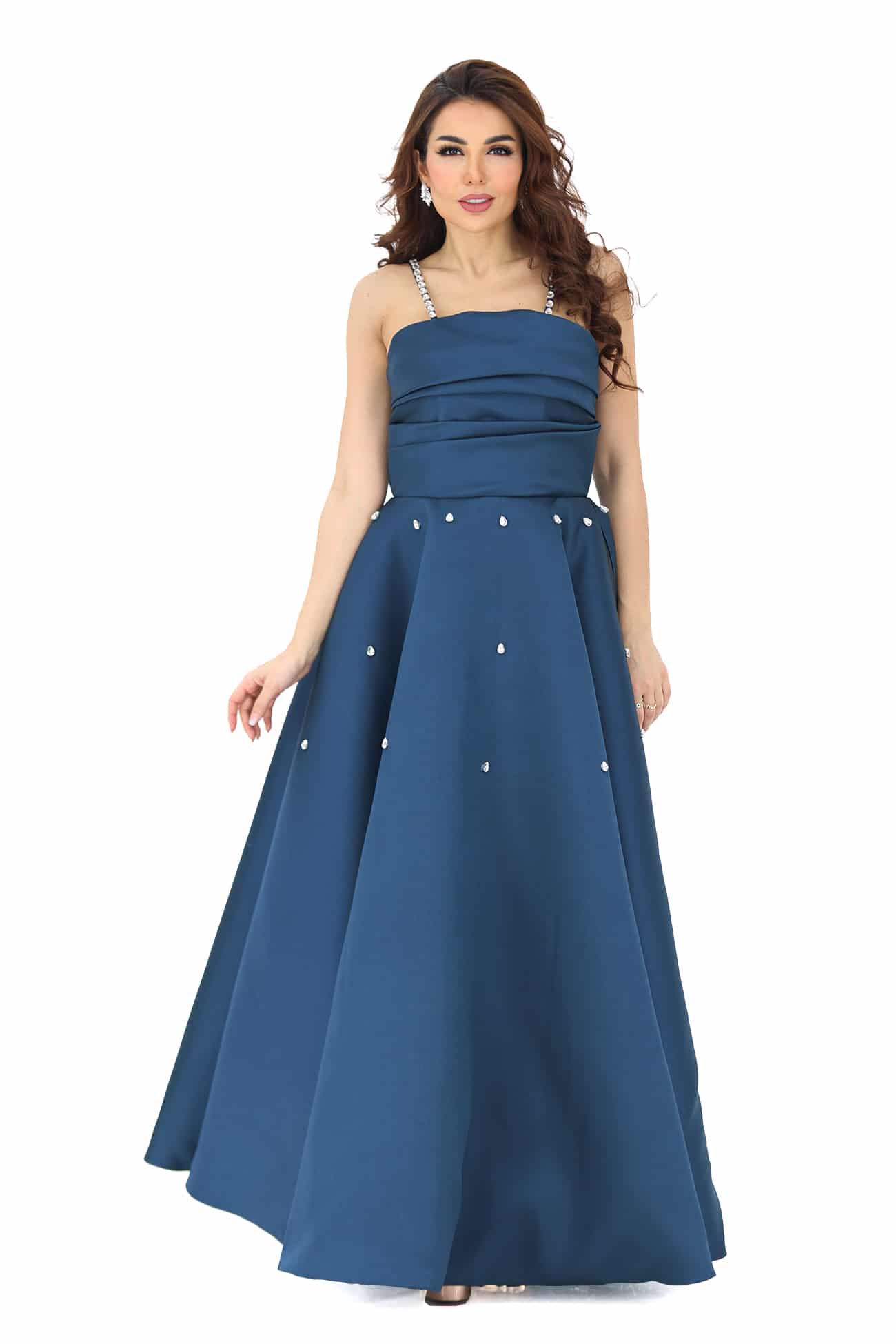 فستان سهرة تب فاخر من خامة الميكادو باللون البترولي والتفاحي الانيق مزين بكرستال انيق على الفستان سيجعلك تتألقين وتبدين ساحرة في أي مناسبة خاصة. ستشعرين بالثقة والأناقة عند ارتدائه، وستلفتين الأنظار بتصميمه الأنيق والمتميز. قم بتنسيقه مع حذاء ذو كعب عالي ومجوهرات بسيطة لإبراز جمال الفستان وتكملة الإطلالة الرائعة.