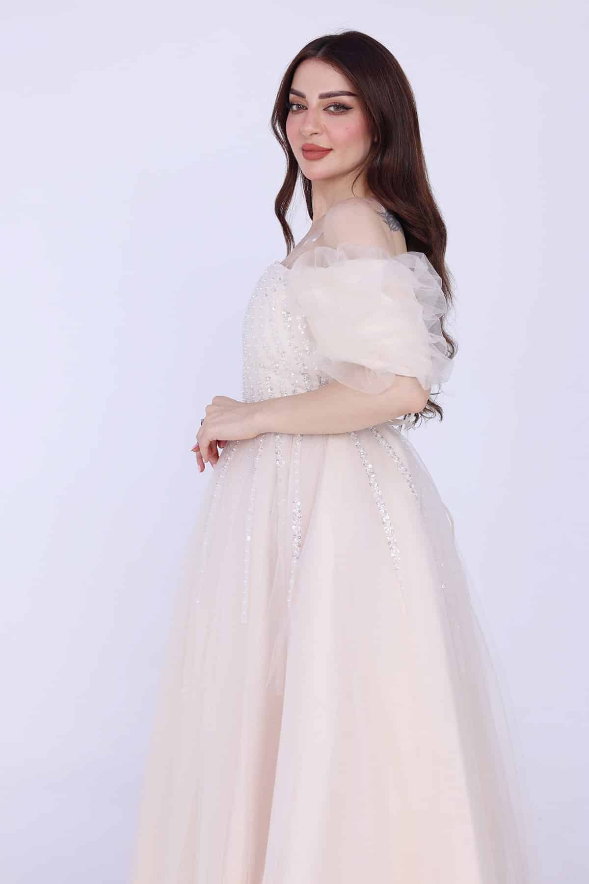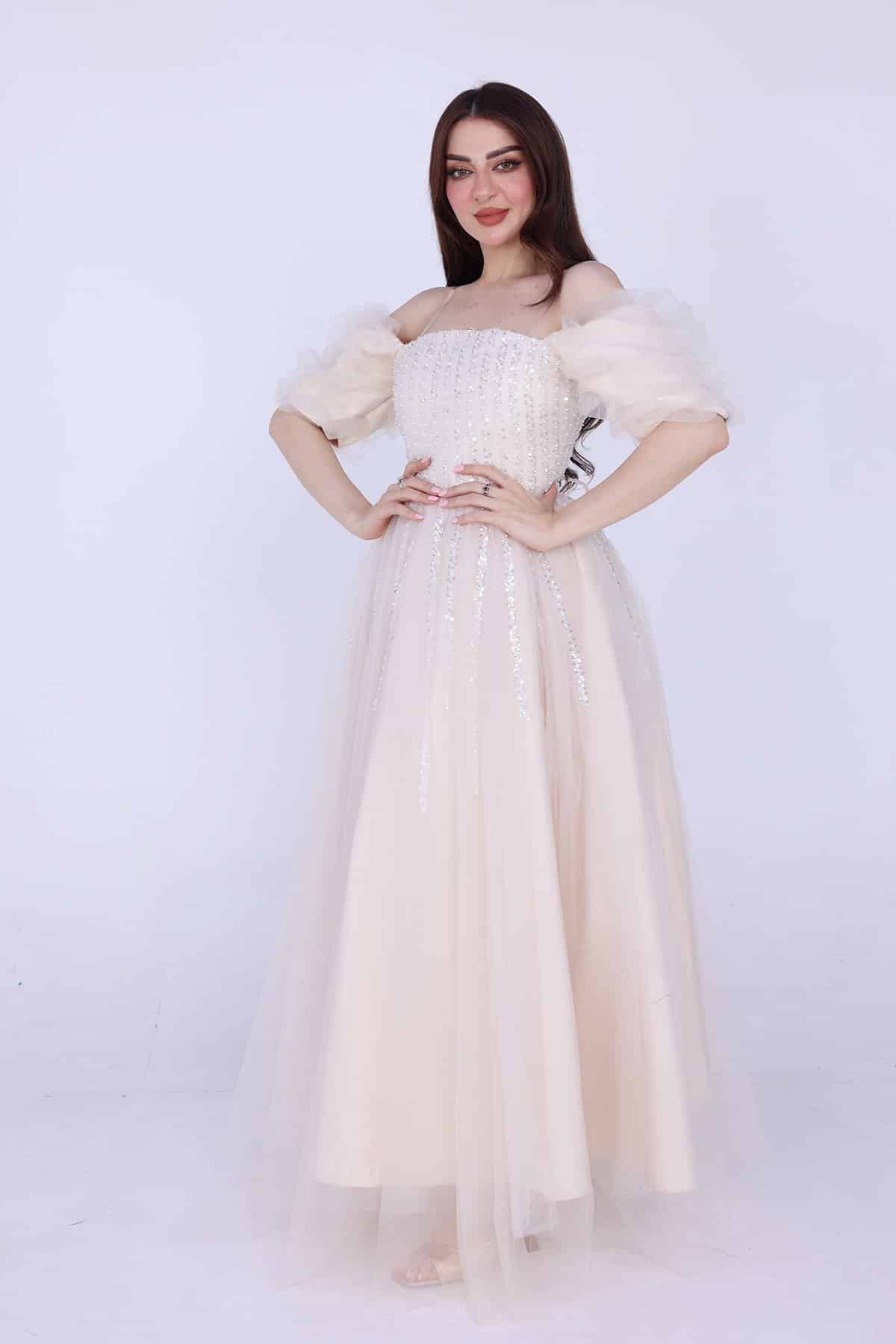فستان السهرة بتصميم كم بوف وتطريز أنيق يعتبر منتجًا رائعًا يضفي لمسة من الأناقة والفخامة على إطلالتك في المناسبات الخاصة. إليك المزيد من التفاصيل حول هذا الفستان: