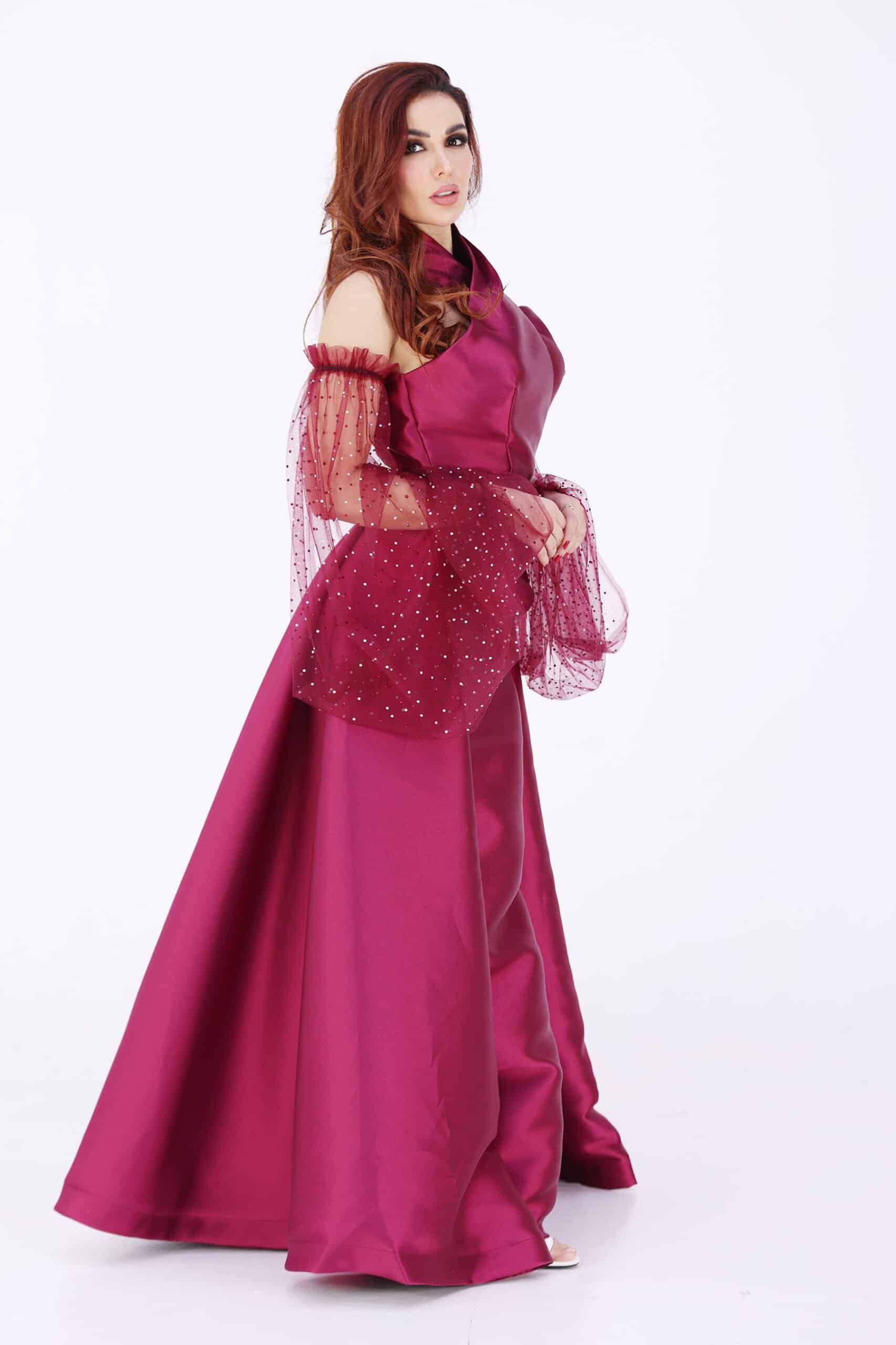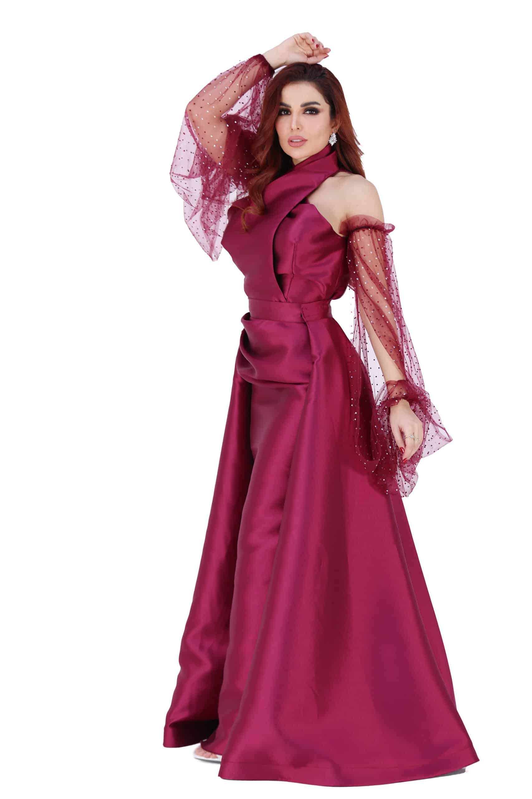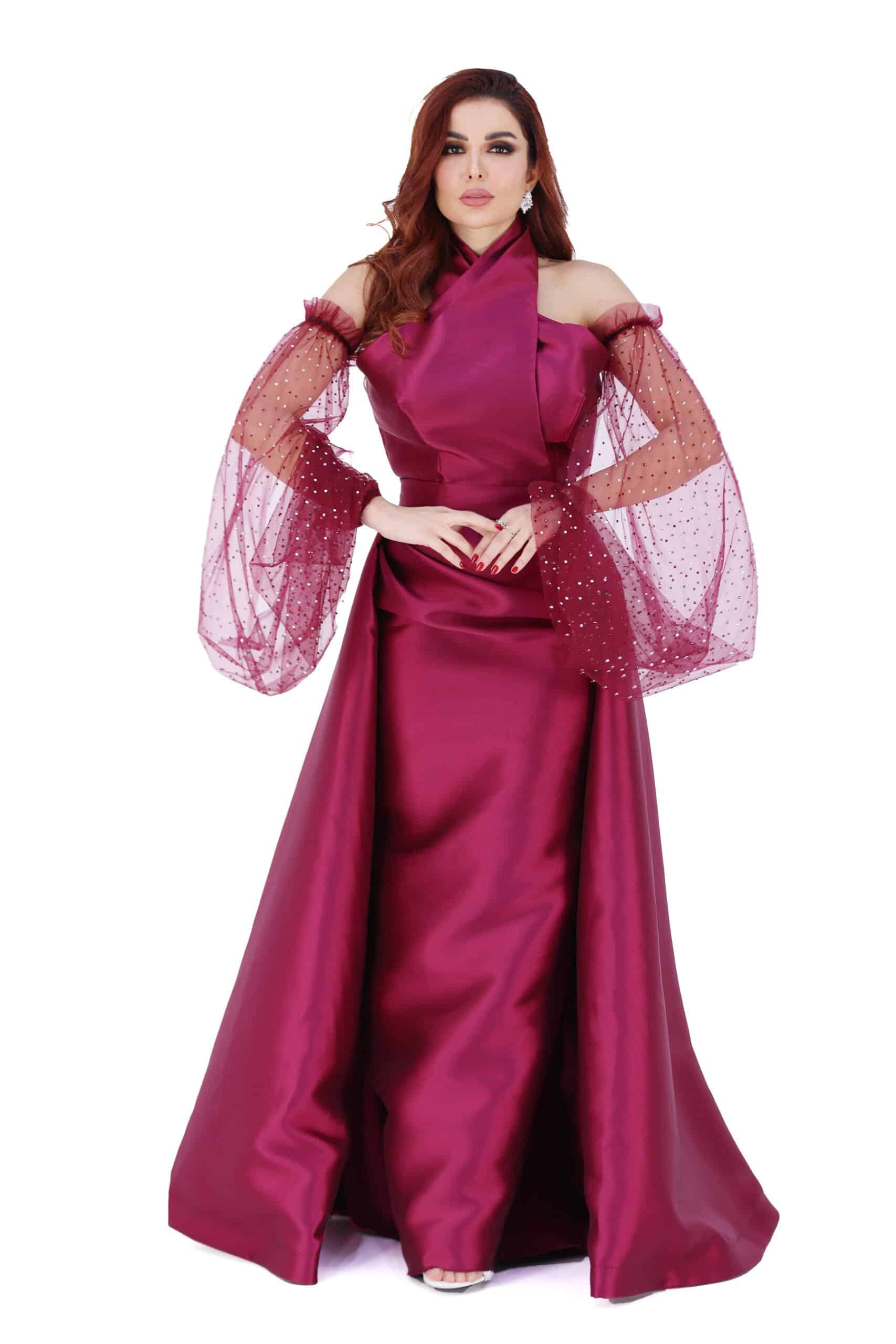 فستان سهرة رقبة بأكمام شفافة من اجواد خامة الميكادوا باللون العودي متميز بأكتاف مكشوفة واكمام شفافة يتميز انه يلتبس بأكمام وبدون اكمام مزمومه من اسفل الكم لتكوني متميزة بين الحضور في كل الافراح والمناسبات عليك ارتداء هذا الفستان انة من احدث الموديلات للمصمم الحديث على ايادي خبراء وتصاميم عصرية اناقة وجمال.يتميز الفستان بتصميم راقٍ يتضمن رقبة منخفضة وأكتافًا مكشوفة وأكمامًا شفافة. يعطي هذا التصميم للفستان لمسة أنثوية وجاذبية مميزة، يجمع هذا التصميم بين البساطة والأناقة، ويتميز بالمشجرة والأكمام الطويلة التي تضفي لمسة من الجمال والأنوثة.