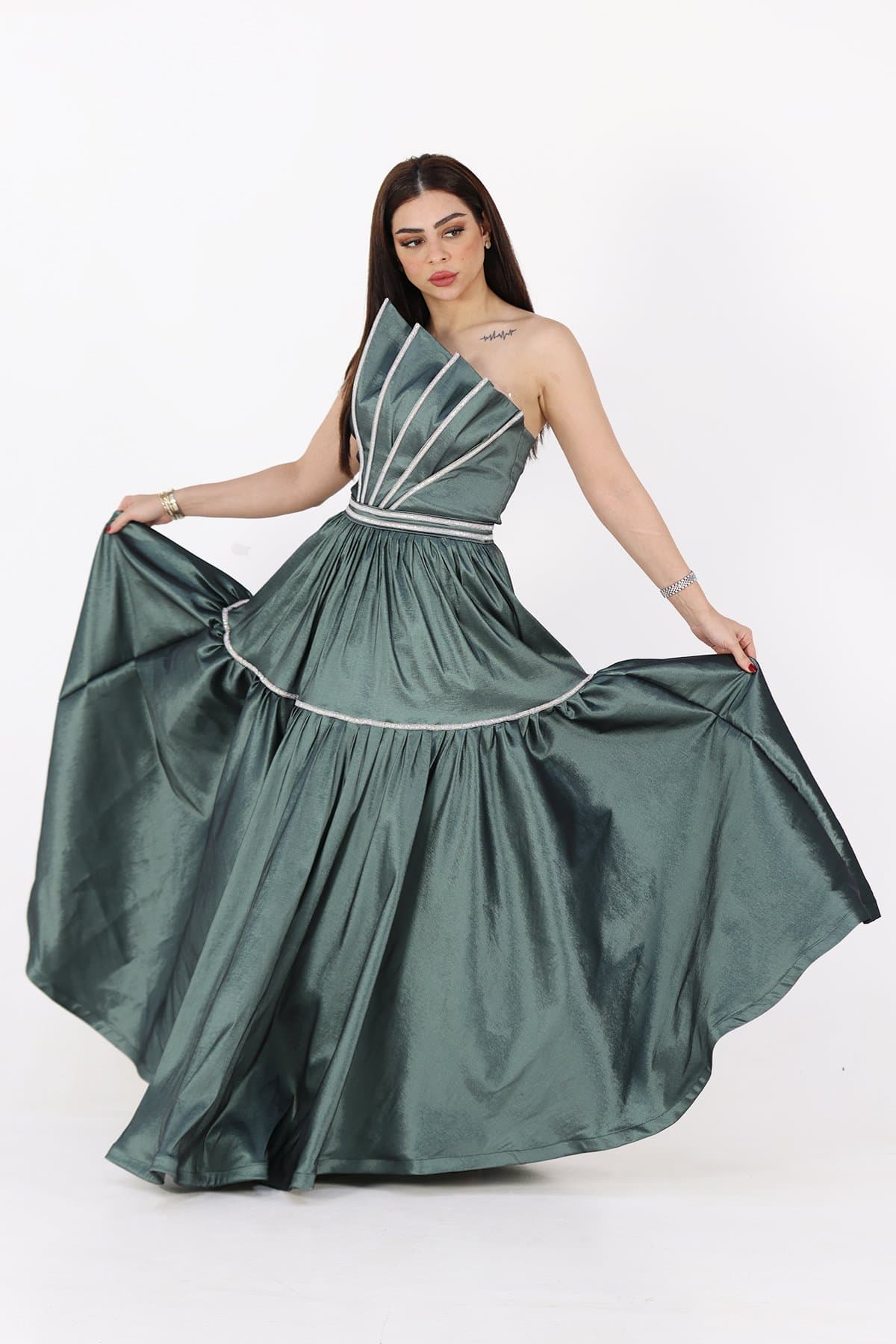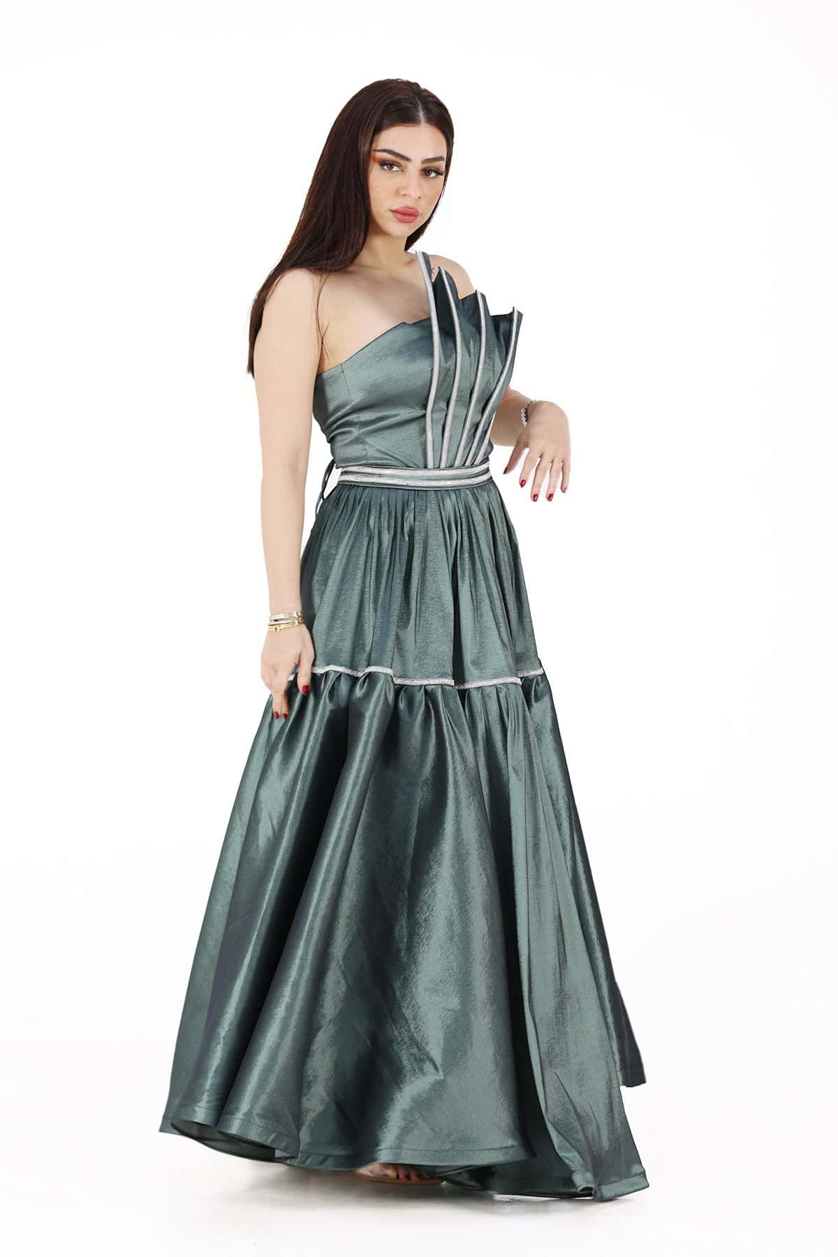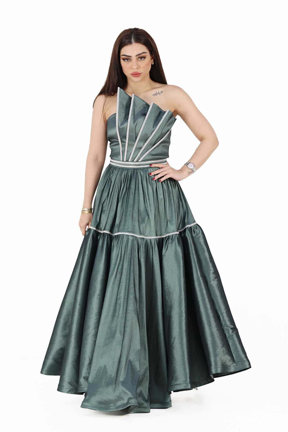 فستان سهرة زيتي توب مطعم بكرستال على الصدر بكسرات من خامة الشانتون باللون الزيتي ومزموم الخصر بكِرستال الراقي استمتعي بجمالك ورقتك من تصميم المصمم الحديث كما يتميز الفستان بالخياطة المزدوجة عالية الكفاءة والدقة التي تمنحك ظهور مختلف عن جميع من حولك يتميز الفستان بتصميمه الطويل والأنيق، حيث يتضمن توب مطعم بكرستال على الصدر وكسرات على الصدر لإضفاء لمسة من التفرد والأناقة يتم تصميم الفستان من قبل مصمم حديث موهوب ومتميز. يتميز التصميم بالابتكار والجمال، ويعكس رؤية المصمم في إبراز أناقة ورقة المرأة.