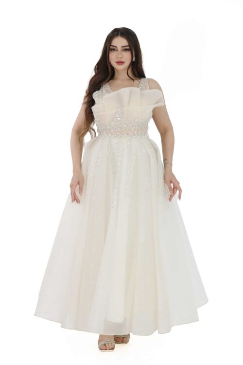 التخزين السليم: قومي بتخزين الفستان في مكان جاف ومنعزل عن الرطوبة للحفاظ على جمال الكريستالات والإكسسوارات.