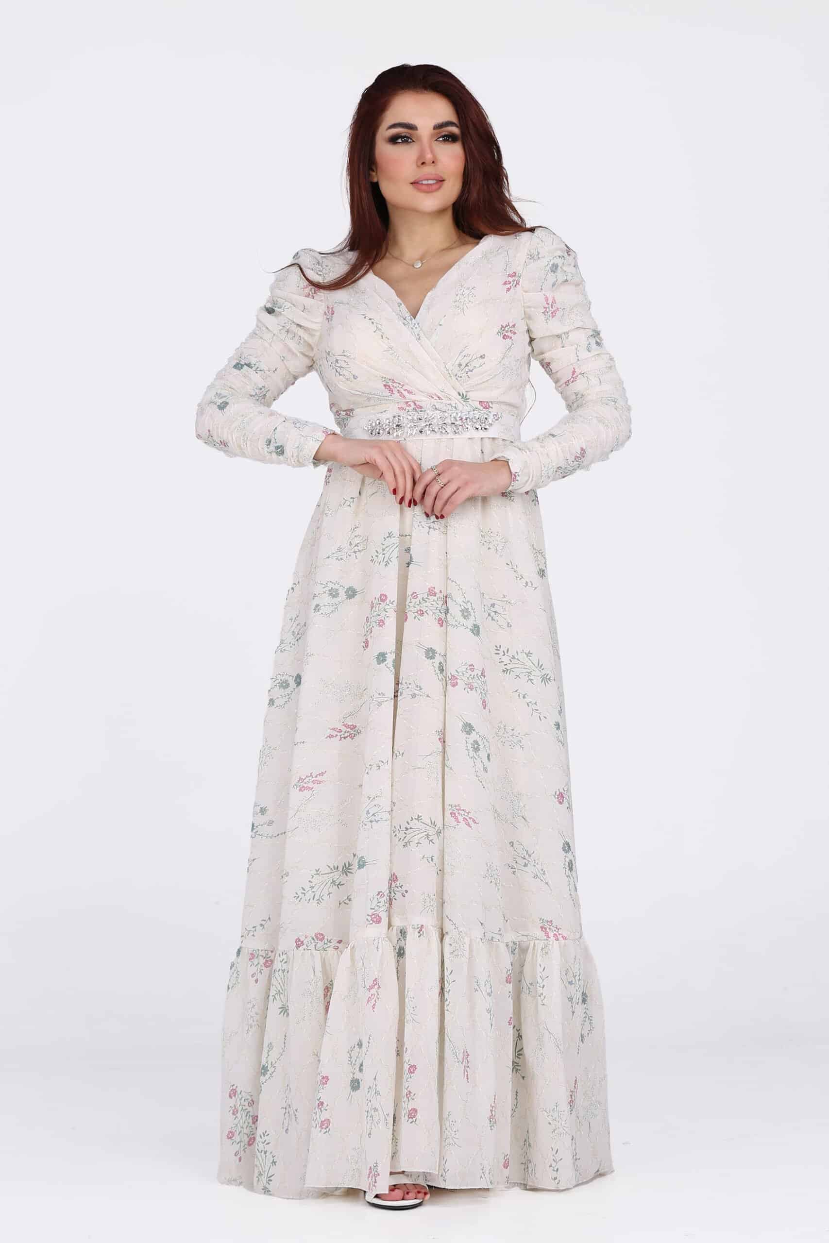فستان سهرة طويل مشجر بأكمام طويله وحزام بالخصر تمتعي بإطلالة راقية مفعمة بالأنوثة خليك جميلة في كل المناسبات مع هذا الفستان المصنوع من اجود خامة الشيفون ومن اجود أنواع الاقمشة بتصميم جديد يليق بأناقتك وطلاتك يتميز الفستان بتصميم مشجر رائع يغطي الجسم بشكل كامل. الأكمام الطويلة تضفي لمسة من الأناقة والتحفظ على الفستان، في حين يتميز التصميم المشجر بأنه يبرز جمال القوام يتميز الفستان بتصميم جديد ومميز يلائم اناقتك وطلاتك. يجمع هذا التصميم بين البساطة والأناقة، ويتميز بالمشجرة والأكمام الطويلة التي تضفي لمسة من الجمال والأنوثة.