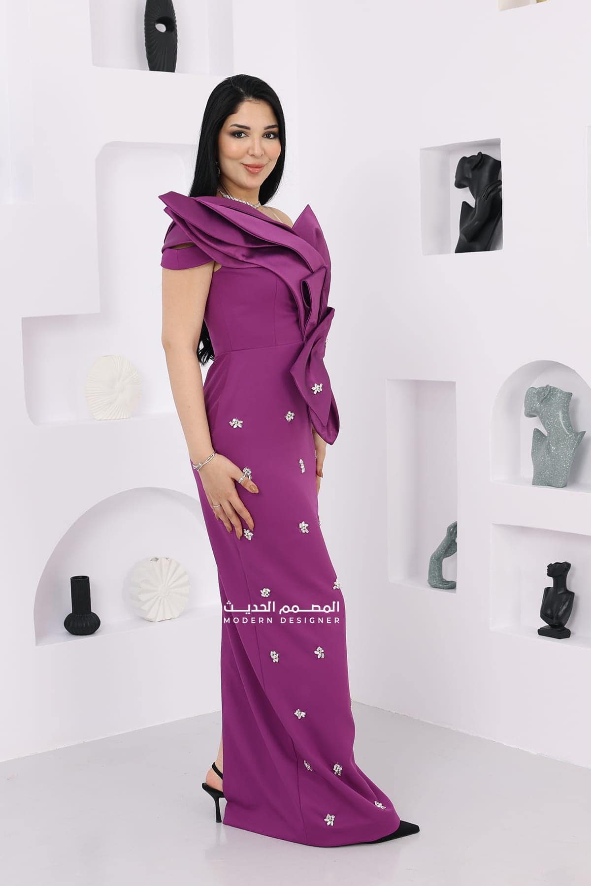 التخزين السليم: قومي بتخزين الفستان في مكان جاف ومنعزل عن الرطوبة للحفاظ على جمال الكريستالات والإكسسوارات.