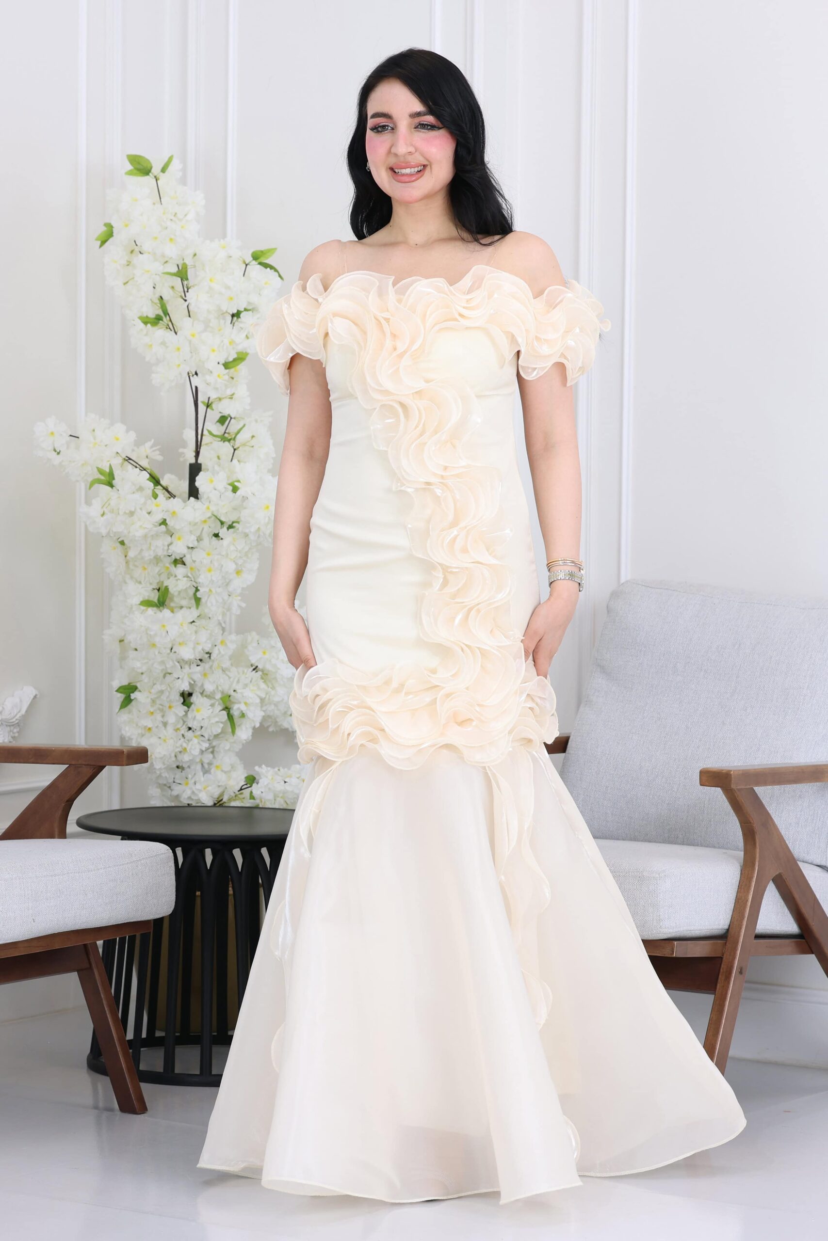 فستان سهرة عصري فخم يسرق الأنظار فهذا الفستان هو خيارك الأول! تصميم أوف شولدر أنثوي يبرز جمال الأكتاف مع كرمشة ناعمة وأنيقة تمتد من الأعلى حتى أسفل الفستان بطريقة ساحرة تلفت الانتباه وتزيدك فخامة. القصة السفلية للفستان بشكل راقٍ وانسيابي، تعطيك لمسة ملكية تلفت كل العيون عليك في أي مناسبة مصنوع من خامات فخمة مريحة تعطيك شعور بالأناقة والثقة طول الوقت. اللون والتفاصيل بتناسق مدهش يبرز جمالك الطبيعي ويكمل إطلالتك الساحرة. يواكب آخر صيحات الموضة ويضمن لك إطلالة تخلي كل العيون عليك، لا تفوتين هالقطعة الفريدة