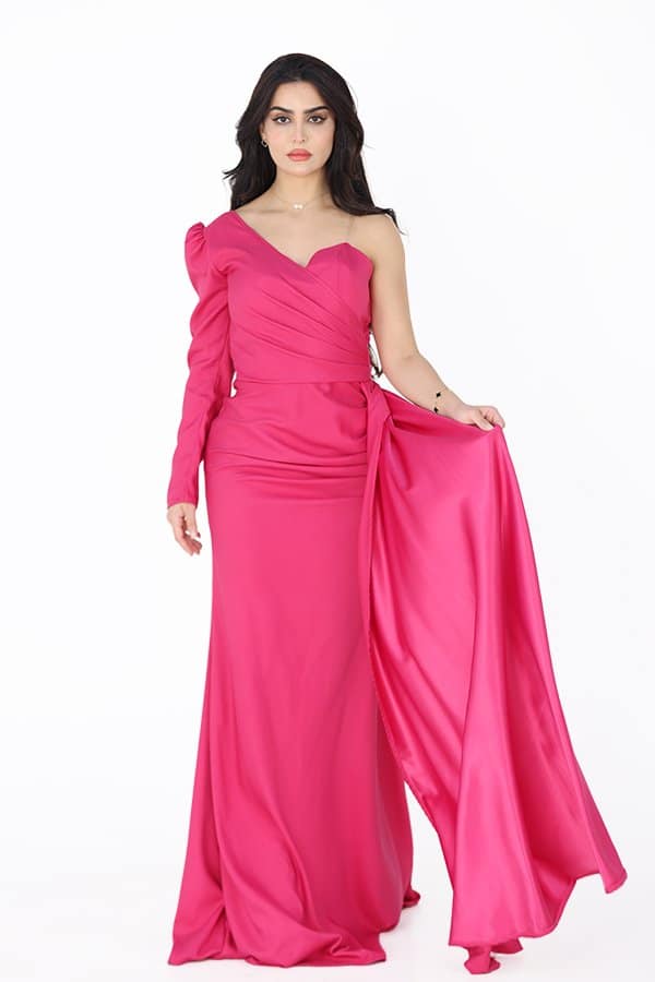 يعتبر فستان الفوشيا هذا خياراً رائعاً للمناسبات الخاصة، حيث يجمع بين البساطة والجاذبية في تصميم واحد. اللون الفوشية الحيوي يمنحكِ إطلالة مشرقة ومليئة بالحيوية، بينما يعزز تصميمه الأنيق من جمال قوامكِ ويضفي لمسات من الفخامة على مظهركِ.