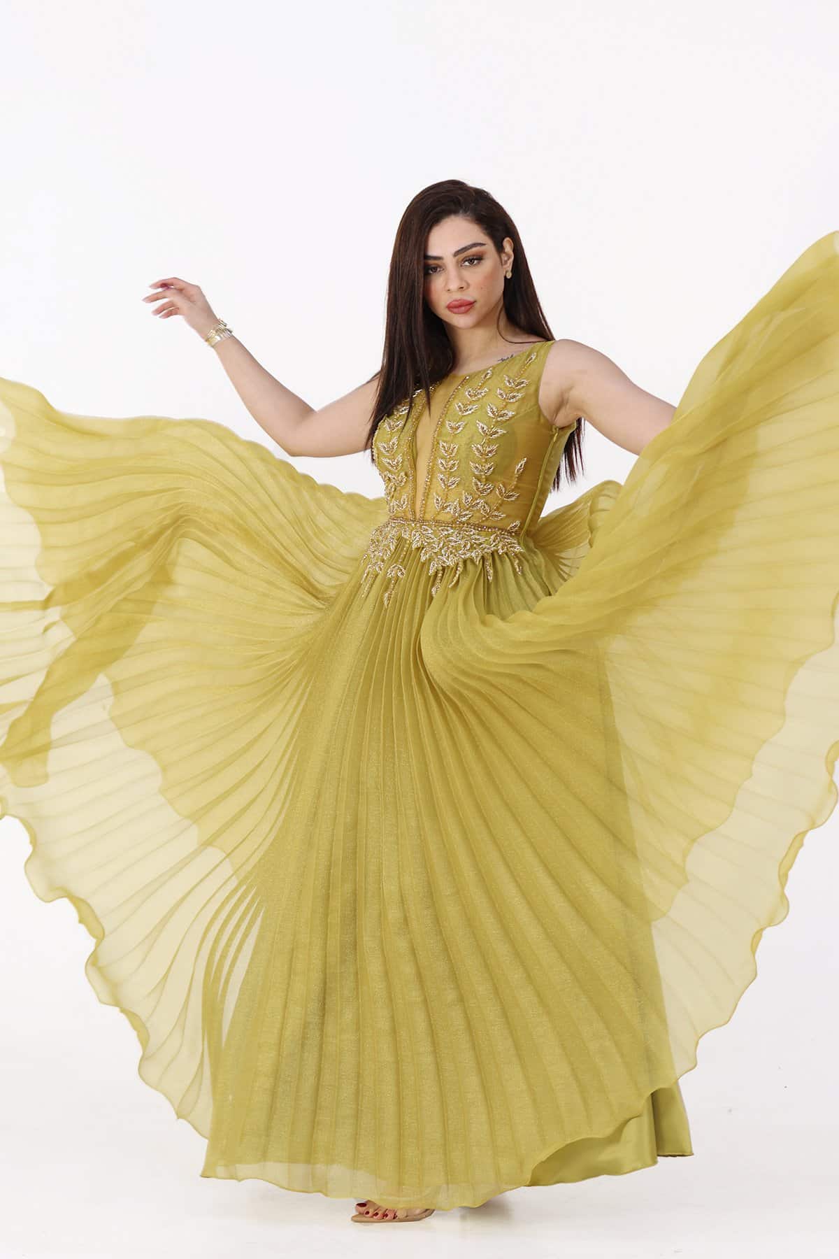 التعامل بحذر: عند ارتداء وخلع الفستان، تجنبي السحب الشديد والتعامل الخشن الذي قد يؤدي إلى تلف الكريستالات والإكسسوارات.